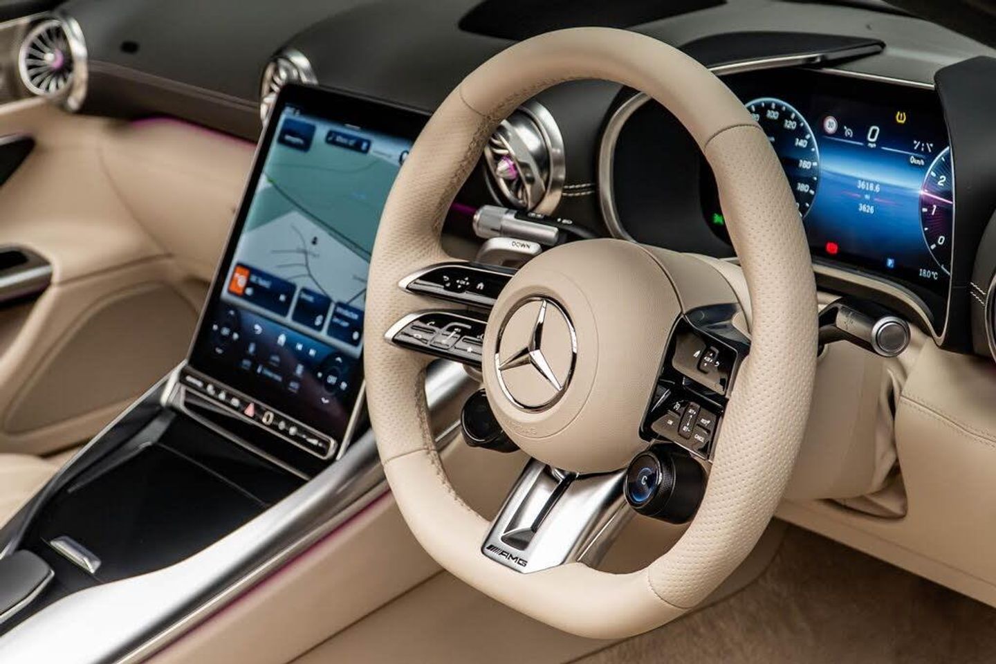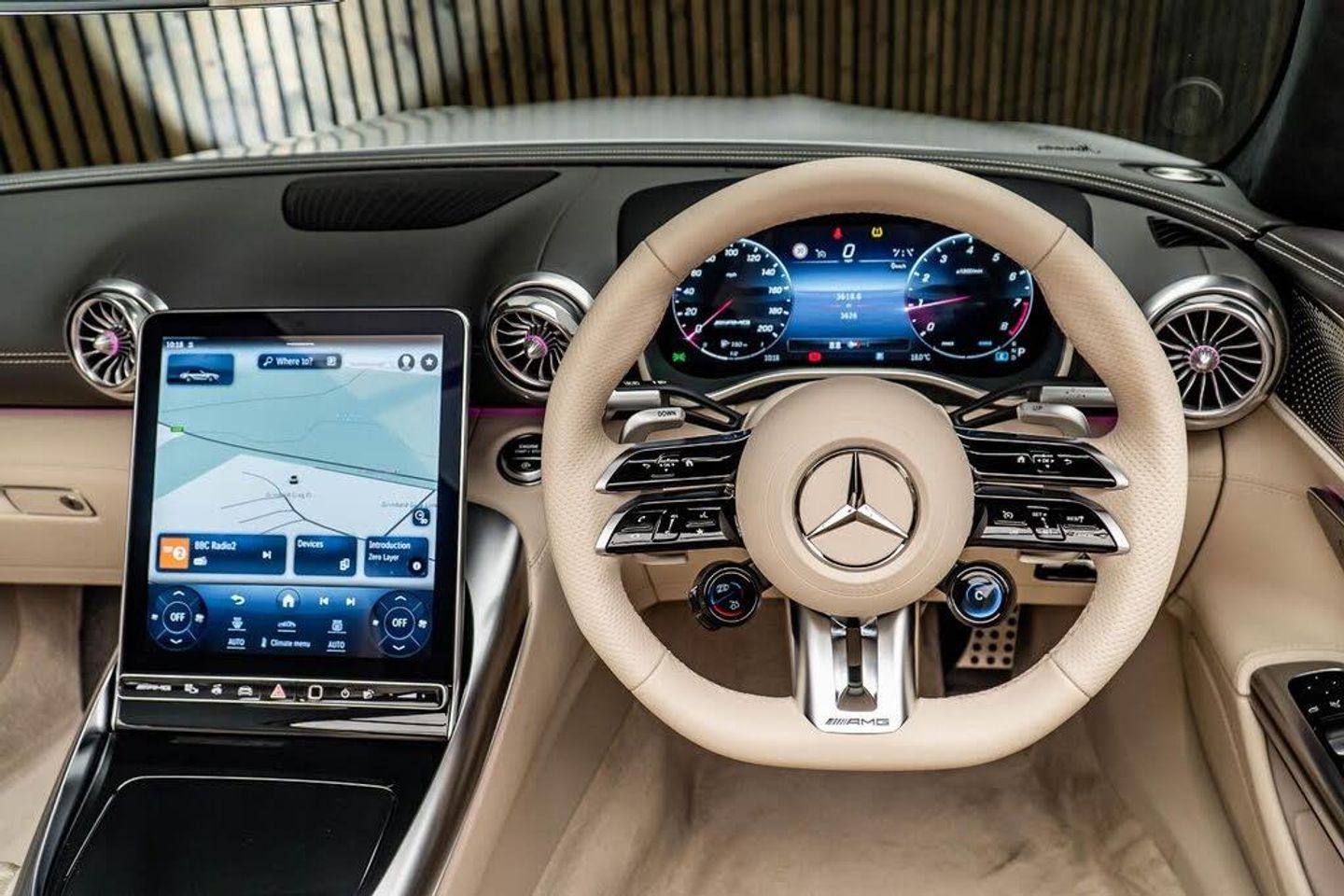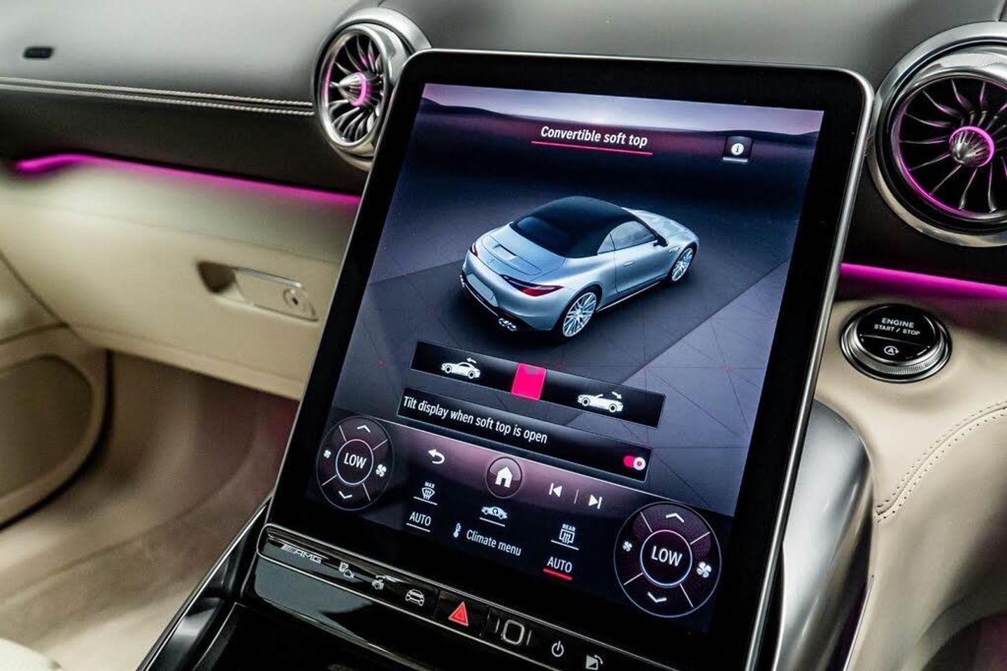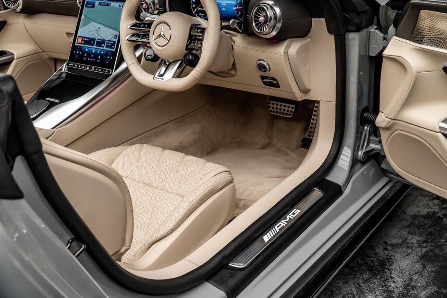 12V Socket in Boot, 20in Alloy Wheels - AMG Multi-Spoke Design Painted Matt Black with a High Sheen Finish, ABS - Anti-Lock Braking System, AMG Aluminium Trim, AMG Exterior Chrome Package, AMG High Performance Compound Brake System, AMG Illuminated Door Sills with AMG Lettering and with Exchangeable Cover, AMG Light Display, AMG Performance Steering Wheel in Nappa Leather, AMG Steering Wheel Buttons, Active Brake Assist with Intersection Start-Off Function, Adaptive Highbeam Assist Plus, Airbag - Driver, Airbags - Passenger, Airscarf, Ambient Lighting, Anti-Theft Alarm System, Automatic Boot Separator, Blind Spot Assist, Boot Lid Remote Closing, Brakes - Silver Painted Brake Calipers, Burmester Surround Sound System, Central Display, Climatised Front Seats, Communications Module (LTE Advanced), Cruise Control, Cup Holder, Digital Radio, Driver Display, Electric Windows - Front, Encapsulation for ATA Alarm Siren, Exhaust System - AMG Real Performance Sound, Fabric Soft Top in Black, Fingerprint Scanner, Freight Packaging without Tie-down Hooks, GUARD 360 Vehicle Protection Plus, Headlamps - Digital Light, Heated Front Seats, Interior Monitoring System, KEYLESS-GO Starting Function, KEYLESS-GO with HANDS FREE ACCESS, Lane Keeping Assist, Load Compartment Package, MANUFAKTUR Roof Liner in Macchiato Beige DINAMICA Microfibre, MBUX Entertainment, MBUX Multimedia System, MBUX Navigation Premium with Hard-Disc Drive, Magic Vision Control, Memory Package, Mercedes Me Remote Services Premium, Mercedes-Benz Emergency Call System, Mirror Package, PRE-SAFE System, Parking Package with Parking Assist PARKTRONIC and 360 Camera, Pedestrian Protection, Power Steering, Pull-Out Sun Visor, Rear Belt Status Indication in the Instrument Display, Seat Belts - Macchiato Beige, Seat Occupancy Sensor - Front Passenger Seat, Smartphone Integration including Apple CarPlay and Android Auto, Sound Customisation, Sports Suspension, Steering Wheel Heating, Summer Tyres, THERMOTRONIC Automatic Climate Control, TIREFIT with Tyre Inflation Compressor, Traffic Sign Assist, Tyre Pressure Monitoring System, USB Package Plus, Wireless Charging System for Mobile Devices in the Front, MANUFAKTUR alpine grey