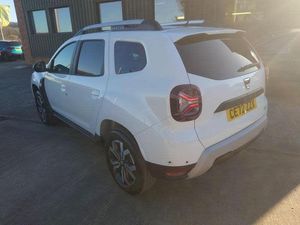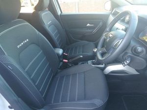 17in Alloy Wheels, 3-Point Rear Seatbelts x3, 3-Speed Front Windscreen Wipers, 7-Function On-Board Computer, 8in Media Nav and Smartphone Replication with Navigation, ASR - Traction Control with ESC - Electronic Stability Control, Acoustic Windshield, Air Vents - Satin Chrome, Airbags - Driver, Airbags - Front Passenger with Deactivation Function, Airbags - Front Side, Anti-lock Braking System - ABS and Emergency Brake Assist - EBA, Automatic Air Conditioning, Backlighted Steering Wheel, Blind Spot Warning, Body-Coloured Front and Rear Bumpers, Boot Light, Centre Console Fascia - Matt Black, Centre Console Surround, Child Locks in Rear Doors, Cruise Control and Speed Limiter, DRL - Daytime Running Lights, Dacia Plug and Radio - MP3 - USB - Bluetooth - DAB - Steering Wheel Control, Dark Glass on Lateral Rear Windows, Decorative Insert on Door Panels - Front, Decorative Insert on Door Panels - Rear - Piano Black, Door Handles - Body Coloured, Door Mirrors - Heated and Electrically Adjustable, Door Mirrors - Painted Grey Quartz, Door Open - Visual and Audible Warning, Driver and Passenger Seatbelt Not Fastened - Visual and Audible Warning, Dusk Sensor, ECO Mode, Electric Front Windows with Impulse on Drivers Side, Electric Windows - Rear, Fabric Decorative Insert on Front and Rear Door Panels, Front Door Sill Protection Strip, Front Fog Lights, Front Grille with Hot Stamping, Front Passenger Reading Light, Front Seatbelt Pretensioners, Gear Lever Cap Insert - Satin Chrome, Gear Shift Indicator, Glovebox Light, Headlights - Rear Lights - Front and Rear LED Lights - Y-Shape, Heated Rear Window, Heated Seats, Height and Depth-Adjustable Steering Wheel, Height-Adjustable Drivers Seat, Height-Adjustable Front Seatbelts, Height-Adjustable Front and Rear Headrests, High Centre Console with Driver Armrest, High Level Third Brake Light, Hill Start Assist, ISOFIX Points for Child Seats in Both Outer Rear Seats, Interior Door Handles - Front and Rear - Satin Chrome, Keyless Entry, Lower Steering Wheel Insert - Satin Chrome, Lumbar Seat Adjustment, Map Pockets on Front Seatbacks, Multiview Camera, Power Assisted Steering, Rear Parking Sensors, Rear Passenger Reading Light, Rear Wash and Wiper, Remote Central Locking, Rev Counter, Roof Bars - Longitudinal with Duster Inscription - Grey Quartz, Roof Spoiler - CO2 Efficient, Seats - 60-40 Split Folding Rear, Side Sills - Black, Skid Plates - Underbody Protection, Soft Feel Leather Steering Wheel, Steering Wheel - Chrome Logo Surround, Sunvisor with Vanity Mirror - Passenger, Tailgate Trim with Duster Inscription - Black-Satin Chrome, Thatcham Approved Engine Immobiliser, Tyre Inflation Kit, Tyre Pressure Monitor