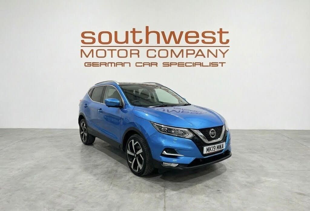 Southwest Motor Company are extremely proud to be offering for sale this beautiful, one-owner, 2019 Nissan Qashqai DCi Tekna. Finished in Vivid Blue Metallic with full black leather interior and unmarked 19-inch diamond-cut alloy wheels, it's an absolutely gorgeous-looking example. Incredibly well kept throughout with a full service history, it's clear that this Qashqai has been very well looked after by its only Keeper. Being a Tekna model, this Qashqai also benefits from excellent specifications including satellite navigation, DAB radio, Bluetooth, Apple CarPlay/Android Auto, heated and electric seats, dual-zone climate control, reversing camera, 360 degree cameras, parking sensors, automatic wipers, automatic Bi-Xenon headlights with high beam assist, panoramic glass roof, blind spot indicators, mutlifunction steering wheel and crusie control which ensure this Qashqai is a truely wonderful SUV to drive and travel in. A brilliant-sized cabin with ISO-Fix child seat anchors and a generous boot ensure that these vehicles are incredibly well-suited for a family. The 1.5L Diesel engine offers ample performance and brilliant economy, which is delivered through a smooth 6-speed manual transmission. With a staggering 72 MPG achievable on a run and this vehicle also being LUELZ COMPLIANT, it ensures it's incredibly cheap to own a run. A beautifully well-kept and well-cared-for one-owner example with full service history, brilliant specifications and outstanding fuel economy. Supplied serviced with a long MOT and 3-month premium warranty (extendable if desired). Part-exchange welcome. All our vehicles are HPI clear. All major debit/credit cards are accepted. . Great finance packages are available to suit all customer profiles. The vehicle specification displayed may not be exact for this vehicle. Please contact us to confirm the precise specifications. Southwest Motor Company Premier Used Car Sales Tavistock Devon