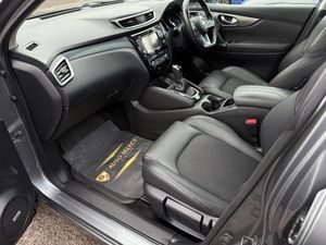 19in Alloy Wheels, 3 Height Adjustable Rear Headrests, 60-40 Split Rear Folding Seats, AM-FM Radio and CD Player, AUX Socket, Adaptive Front Lighting System, Advanced Drive Assist Display - 5in TFT Coloured Screen, Ambient Lighting Centre Console, Anti Dazzle Rear View Mirror, Auto Wipers, Bluetooth, Body Coloured Door Mirrors, Body Coloured Handles, Boot Light, Bose 8 Speaker Premium Audio System, Carbon Graphite Dash Trim, Chrome Glass Surround, Chrome Interior Door Handles, Cruise Control with Speed Limiter, DAB Digital Radio, Daytime Running Lights Dip Function When Turn Signal Applied, Driver Seat Height Adjustment, Driver-Passenger-Side and Curtain Airbags, Drivers Seat with Manual Lumbar Support, Dual Zone Climate Control Air Conditioning, ESP ABS EBD and Brake Assist, Electric Auto-Folding Door Mirrors, Electric Parking Brake, Electric Speed-Sensitive Power Steering, Electrically Adjustable Drivers Seat, Executive Pack, Front 12v Power Sockets x2, Front Centre Console and Armrest, Front Seat Belts with Load Limiter and Pretensioners, Front and Rear Door Pockets with Drink Holders, Front and Rear Electric Windows, Front and Rear Seatbelt Warning, Headlights - Automatic Levelling, Headlights - High Beam Assist, Headlights - LED, Heat Pack, Height Adjustable Front Head Restraints, Height Adjustable Front Seatbelts, Hill Start Assist, ISOFIX Child Seat Anchoring Points - Rear x2, Intelligent Around View Monitor, Intelligent Auto Headlight, Intelligent Emergency Braking, Intelligent Key, Intelligent Park Assist, Interior Ambient Lighting, LED Pack, LED Signature Daytime Running Lights, LED Turn Indicator on Door Mirrors, Lane Departure Warning, Leather D Shaped Steering Wheel, Leather Gear Lever, Leather Knee Pad, Luggage Board System, Matt Silver Roof Rails, Monoform Front Seats with Plastic Backboard, Nissan Anti Theft System Immobiliser, Nissan Chassis Controls, NissanConnect Evo Touchscreen Navigation and Entertainment System, One Touch 4 x Auto Windows with Illuminated Switches, Outside Temperature Sensor, Parcel Shelf - Stow Function Under Luggage Board, Parking Sensor - Front, Passenger Airbag Deactivation System, Passengers Seat with Manual Lumbar Support, Pollen Filter, Privacy Glass, Puncture Repair Kit, Rear Parking Sensors, Rear Roof Spoiler, Rear View Camera, Rear Wiper with Reverse Link, Remote Central Locking, Safety Shield, Seats - Passengers Height Adjustment, Selectable Steering - Normal or Sport, Shark Fin Antenna, Smart Vision Pack, Smartphone App Integration, Start Push Button, Steering Wheel Mounted Audio Controls, Synthetic Leather Wrapped Door Handle with Contrasting Stitching, TPMS - Tyre Pressure Monitoring System, Tech Pack, Thatcham Category 1 Alarm, Tilt and Telescopic Adjustable Steering Wheel, Traffic Sign Recognition, Trip Computer, USB Port, Underbody Vortex Generators
