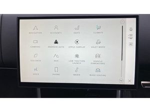 Ebony Carpet, Heated rear window, Heated washer jets, Twin speed transfer box, Rain sensing windscreen wipers, Acoustic laminated windscreen, Electric windows with one touch open/close and anti trap, Laminated front and rear side glass, Winter wiper park position, Electronic traction control, Electronic brake force distribution, Hill descent control, DSC - Dynamic Stability Control, Cornering brake control (CBC), Electronic parking brake, Roll stability control, Hill Launch assist, Anti-lock Braking System (ABS), Brake hold function, Adaptive dynamics, Terrain Response 2 Auto, Automatic access height, Active damper technology system, Wi-Fi Enabled with data plan, Remote, Bluetooth connectivity streaming, Wireless device charging, Wireless Apple CarPlay/Android Auto, Lane keep assist, Eco mode, Blind spot assist, All wheel steering, Low traction launch, Traffic sign recognition with adaptive speed limiter, Adaptive cruise control with steering assist