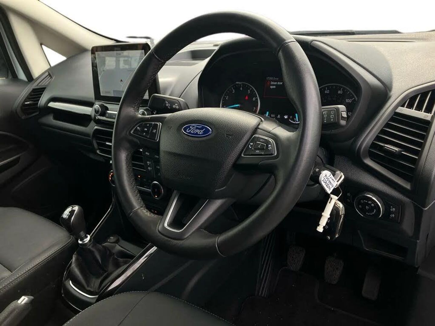 Cruise control,e-Call (emergency call),Easy fuel capless refuelling system,Ford SYNC 3 nav system with DAB radio,8" screen, emergency assistance,Apple car play/Android auto, 2x USB, 6 speakers, Ford pass connect,Intelligent speed limiter,PAS,Rear parking sensors,Rear view camera,Traffic sign recognition,Trip computer,Sports suspension,Steering wheel mounted audio controls,Agate black contrast roof and door mirrors,Auto dimming rear view mirror,Automatic front wipers,Automatic headlights,Black body styling kit - Black headlamp bezel, wheel mouldings, front grille bars and surround in black, lower bodyside styling,Black roof rails,Body colour door handles,Body coloured bumpers,Electrically adjustable and heated door mirrors,Front fog lights,Headlight levelling control,LED day running lights,LED third brake light,Power front and rear windows,Privacy glass,Puddle lights,Quick-clear heated windscreen,Rear side wing doors,Rear wiper,Sport halogen tail lamps,12V socket in front and rear,3 seat bench in 2nd row,60/40 split rear seats,Ambient lighting,Centre console with sliding front armrest,Cooled glovebox,Courtesy lights with map reading light,Driver seat height/lumbar adjust,Driver's side glovebox,Driver/passenger sunvisors and lidded vanity mirrors,EATC - Electronic Auto Temperature control,Folding grab handles,Front head restraints,Front seat back map pockets,Illuminated glovebox,Illuminated luggage compartment,Isofix system on outer rear seats,Luggage compartment carpet,Overhead console with sunglasses holder,Premium front floor mats,Premium sensico trimmed steering wheel,Rake adjustable rear seats,Reach + rake adjustable steering column,Rear headrests,Sensico gear shift gaiter,Sensico handbrake,Sensico partial leather upholstery,Single front passenger seat,Storage drawers under front seats,Tie down hooks,Variable boot floor,3x3 point rear seatbelts,ABS,Autonomous emergency braking,Child locks on rear doors,Curtain airbags,Driver airbag,Drivers knee airbag,Electronic Stability Programme with hill launch assist,Front passenger airbag deactivation,Front side airbags,Passenger airbag,Pre collision assist system with AEB,Seatbelt reminder for driver and front passenger,Traction control,Tyre pressure monitoring system,Immobiliser,MyKey system,Remote central locking,Thatcham 1 volume sensing alarm,17" 5 spoke Y design dark inserts alloy wheels,Low rolling resistance tyres,Tyre inflation kit,Frozen White