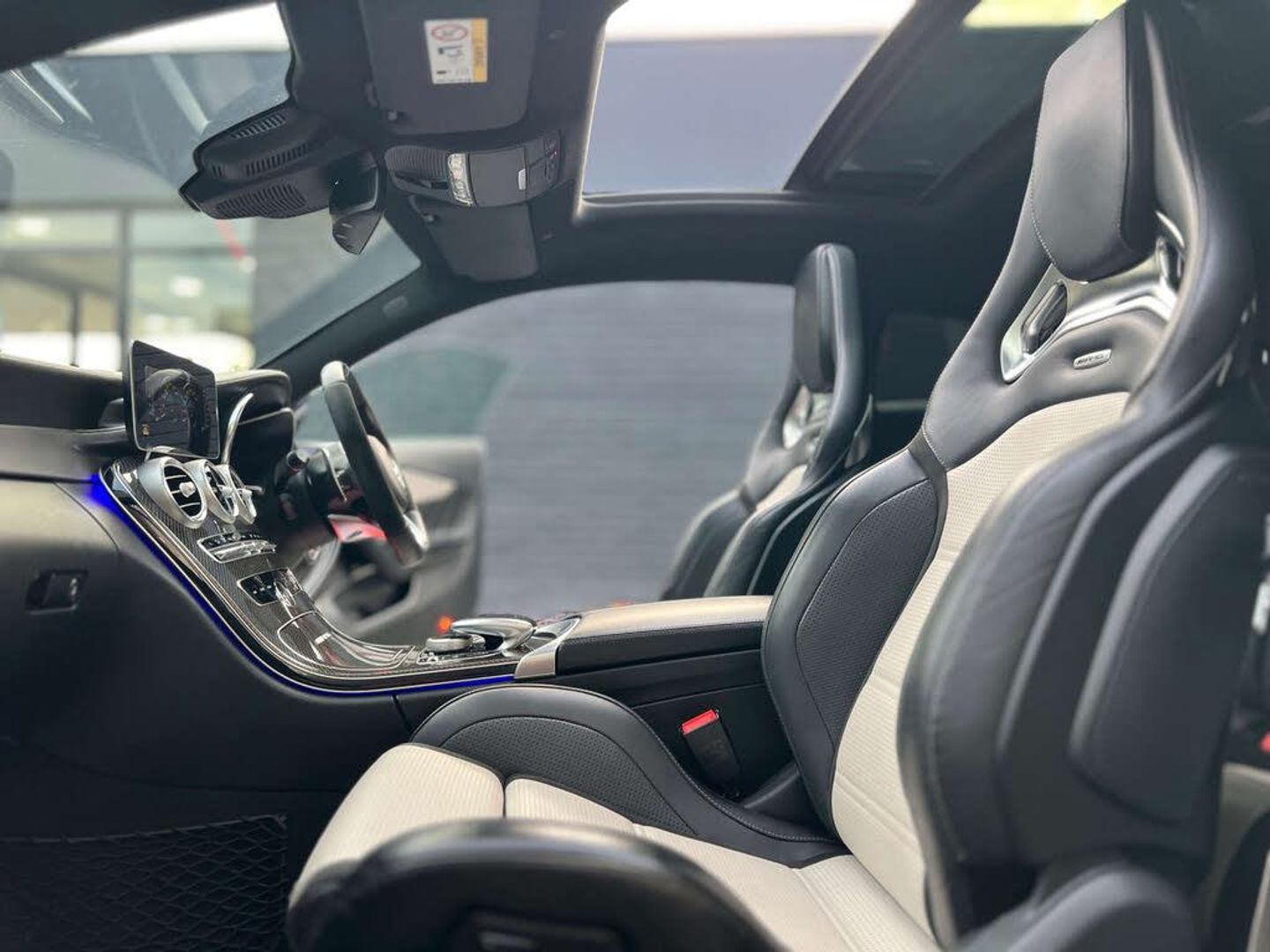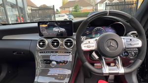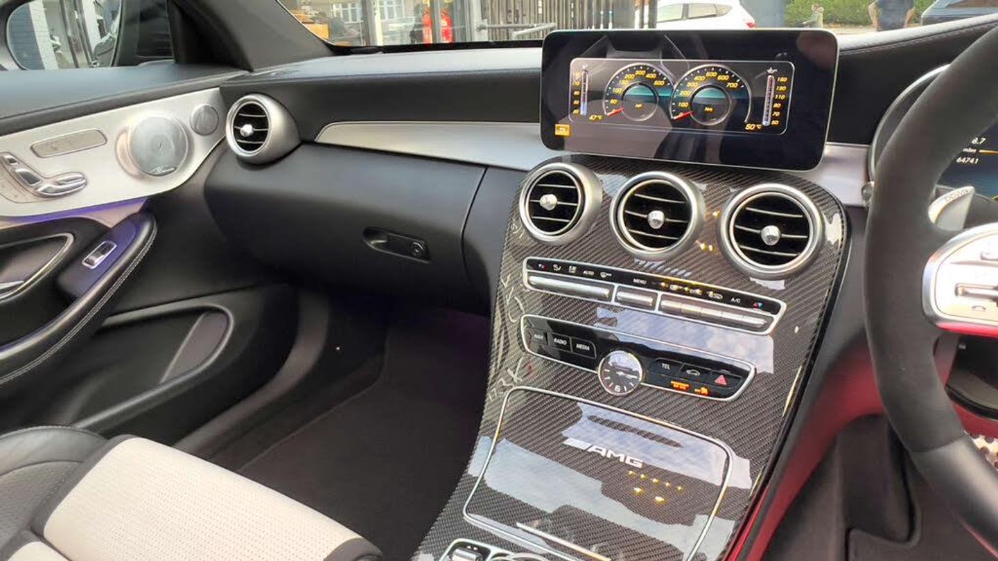 20" VOSSEN ALLOY WHEELS + WHITE/ BLACK LEATHER + HEAD UP DISPLAY + AMG SPORTS EXHAUST + CARBON FIBRE PACK IN & OUT + CARBON FIBRE BODYKIT + LOWERED + BLACKOUT EXTERIOR STYLING + LED LIGHTS + CARBON INTERIOR TRIM + SAT NAV + BLUETOOTH / APPLE PLAY + MERCEDES CLOCK + DAB RADIO + BURMEISTER SOUND SYSTEM + AUTO/ PADDLES ON STEERING WHEEL