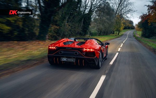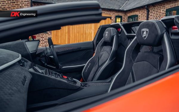Ordered new through Lamborghini Chelmsford in April 2022, this Ultimae Roadster was optioned in Ad Personam Arancio Bruciata with upgraded forged Diantus wheels in titanium. The exterior is further optioned with a livery in Arancio Leonis, black brake calipers and removable hard top roof panels in gloss black.