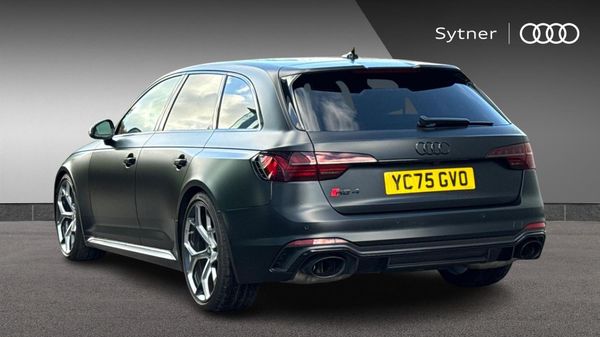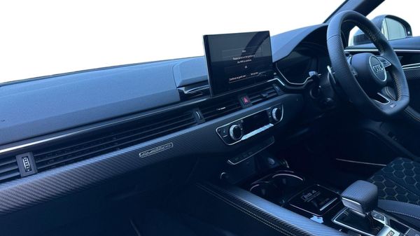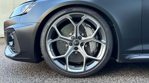 Reserve Online,20" 5 spoke Y design alloy wheels,Audi Exclusive,Panoramic glass sunroof,Audi virtual cockpit plus with additional RS layout and white dials,360 degree camera,Audi parking system plus with front and rear sensors,Power opening/closing tailgate,Audi phone box light with wireless charging,Audi smartphone interface,Top speed restriction increase to 186mph,Bang + Olufsen 3D sound system,Privacy glass (tinted rear window and tinted rear door and side windows),Audi matrix LED headlights with LED rear lights + dynamic front and rear indicators,3 spoke flat bottomed Sport contour leather multifunction plus steering wheel with calendula yellow stitching,Carbon matte optics pack - RS4,Edition 25 years design pack - RS4,Extended LED Interior multi-coloured lighting pack - RS4