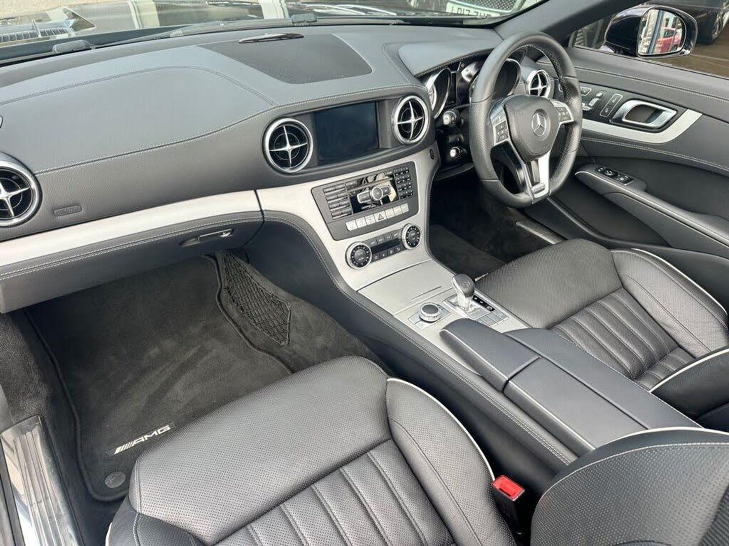 Leather - Black, Obsidian Black, 19in Alloy Wheels - AMG 7-Twin Spoke Design - Painted in Titanium Grey with High Sheen Finish, Closing Aid for Doors, Reversing Camera, Cup Holder - Centre Console, Ambient Lighting - Choice of Three Colour Settings, Wind Deflector - Electrically Operated, AIRSCARF - Neck Level Heating System, 10GB Music Register and MP3 Compatibility, 19in Alloy Wheels - AMG 5-Spoke Design, 3 Years Free European Map Updates, 7-inch Colour Display, 8 Speakers with FrontBass, ABS - Anti-Lock Braking System, AMG Bodystyling - Front and Rear Apron - Side Skirts, AMG Boot Lid Spoiler, ASR - Acceleration Skid Control, ATTENTION Assist, Active Bonnet - Pedestrian Safety which Detects an Impact and Raises Bonnet, Active Light System, Active Park Assist with Parktronic, Adaptive Brake Lamps, Adaptive Brake System with Full Hold Function, Airbags - Dual Stage - Driver, Airbags - Dual Stage - Front Passenger, Airbags - Head for Driver and Front Passenger, Alarm System with Immobiliser and Interior Protection, Automatic Child Seat Recognition Sensor, Automatically Dimming Rear View Mirror and Drivers Door Mirror, BAS - Brake Assist, Bluetooth Interface for Hands-Free Telephone, Brake Calipers - Painted Grey with Mercedes-Benz Lettering, CD-DVD Radio, COMAND Online System with Media Interface, Central Controller Dial to Operate Audio and Telephone Functions, Closing Aid for Boot Lid, Cruise Control with SPEEDTRONIC Variable Speed Limiter, DAB Digital Radio Tuner, Daytime Running Lights - LED, Door Mirrors - Electrically Adjustable-Folding-Heated, Door Mirrors - Memory Function, Door Sill Panels - Mercedes-Benz Lettering, ESP - Electronic Stability Programme, Electric Parking Brake, First Aid Kit, Floor Mats - AMG, Hard Disk Drive HDD Map Navigation System with TMC Traffic Message Channel, Headlamp Assist - Automatic Headlamp Activation, Headlight Wash System, Headlights - Adaptive High Beam Assist, Headlights - Bi Xenon, Headlights - Cornering Light Function, Heated Front Seats, Heated Rear Window with Timer Control, High Level Third Brake Light - LED, In-Car Internet Access, Instrument Cluster with Chequered Flag Design, Intelligent Light System, Linguatronic Voice Control, Live Traffic Information, Locking Wheel Bolts, Lumbar Support - Four Way for Front Seats, Magic Vision Control - Adaptive Wiper System - Heated, Media Interface, Media Interface - Cables Included for AUX-In-USB or iPod Connectivity, Memory Package, Neck-Pro Adjustable Front Head Restraints, Outside Temperature Gauge, Panoramic Glass Vario-Roof with Blind - Operable via Infrared Key, Parking Sensor - Front, Parking Sensor - Rear, Pollen Filter, Power Steering - Speed Sensitive, Pre-Safe Anticipatory Safety System, Rain Sensing Windscreen Wipers, Remote Central Locking, Roll Over Bar with Crash Sensor - Automatically Raising, Roof Lining - Black Fabric, SD Memory Card Slot, Seats - Electrically Adjustable Driver and Passenger, Seats - Front Electrically Adjustable with Memory, Seats - Sports, Service Indicator ASSYST, Sidebags for Driver and Front Passenger, Sports Suspension with Adaptive Damping System, Steering Column - Electrically Adjustable with Memory, Steering Wheel - 3-Spoke Nappa Leather, Steering Wheel - Gear Shift Paddles in Silver, Steering Wheel - Multi-Function, Steering Wheel - Sports - Flat Bottom Design, THERMOTRONIC - Luxury Automatic Climate Control, Tinted Glass - Green, Tirefit Tyre Sealant Kit, Torque Vectoring Brake, Trim - Brushed Light Aluminium, Tyre Pressure Monitoring System, USB and AUX-in Ports in Centre Console, Warning Triangle, Wind Deflector - Fabric, Windows - Electric x2, eCall - Emergency Call System