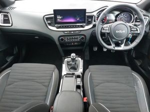 10.25" touchscreen satellite navigation, Apple car play/Android Auto with voice control, Bluetooth with Voice Recognition & Music Streaming, Cruise control + speed limiter, Kia connect UVO, Lane Following Assist (LFA), Lane keep assist, Manual speed limit assist, Rear parking sensor, Intelligent Stop and Go, 6 speaker audio system, DAB Radio with MP3, High beam assist, LED daytime running lights, LED front fog lights, LED Headlights, LED High-mounted Brake Light, LED honeycomb rear light, LED rear combination lights, LED rear fog light, Heated front seats, Heated steering wheel, 17" GT-Line alloy wheels