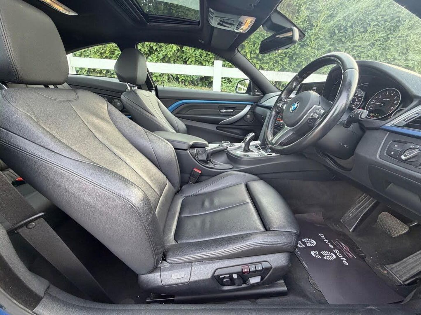 12V Power Socket in Front Centre Console and Passenger Footwell, 18in Alloy Wheels - Light M Star Spoke Style - 441M, 6.5in Colour Display Screen, ABS - Anti Lock Braking System, ASC - Automatic Stability Control, Air Conditioning - Automatic - Dual Zone Control, Air Conditioning and Radio Control Panel in High Gloss, Air Microfilter, Airbags - Curtain, Airbags - Driver, Airbags - Front Side, Airbags - Passenger, Airbags - Passenger Deactivation, Alarm System Thatcham 1 with Remote Control, Ambient Lighting - Switchable BMW Classic Orange - White, Armrest - Front with Storage Compartment, Armrest - Rear Centre, Automatically Dimming Rear View Mirror, Auxiliary Input, BMW Emergency Call, BMW Professional Radio - Single CD and MP3, BMW TeleServices, Battery Safety Cut Off, Bluetooth Hands Free with USB Audio Interface, Bottle Holders - Front Door Storage Compartments, Brake Assist, Brake Drying, Brake Pad Wear Indicator, Brake Pre-Tensioning, Bumpers - Body Colour, CBC - Cornering Brake Control, Central Locking - Remote, Check Control Warning System, Child Seat ISOFIX Attachment - Rear, Comfort Go Keyless Engine Start, Crash Sensor - Activating Central Locking Release, Cruise Control with Brake Function, Cup Holders - Front x2, DAB Digital Radio, DBC - Dynamic Brake Control, DSC - Dynamic Stability Control Plus, DTC - Dynamic Traction Control, Daytime Running Lights, Door Handles - Body Colour, Door Mirrors - Body Coloured, Door Mirrors - Electric and Heated, Door Sill Finishers - BMW Designation, Drive Performance Control with Comfort-Sport and Sport Modes, Dynamic Brake Lights, Electric Windows - Front Open and Close Fingertip Control, Electronic Differential Lock, Extended Lighting, Exterior Trim - High-Gloss Shadowline, First Aid Kit, Floor Mats - Velour, Follow Me Home Headlight Function, Front Fog Lights, Gearshift Lever with M Designation, Glove Box Opener with Chrome Trim, Grab Handles - in Roof Lining x4, Handbrake Lever - Gear Lever Knob and Gaiters in Leather, Headlights - Automatic Activation, Headlights - Washer System, Headlining - Anthracite, Heat Protection Glazing with Green Tint, Heated Windscreen Washer Jets, Height Adjustable Drivers Seat - Manual, Height Adjustable Passenger Seat - Manual, High Level Third Brake Light, Hill Start Assist, Interior Trim - Aluminium Hexagon with Estoril Blue Finisher, Kidney Grille - Chrome Extra-Wide High-Gloss Black Vertical Slats, LED Tailights, Luggage Compartment - Lashing Eyes x2, Luggage Compartment - Securing Rings x2, M Aerodynamic Bodystyling, M Sport Package, M Sport Steering Wheel, M Sport Suspension, Media Package - BMW Business, Multifunction Controls for Steering Wheel, Navigation System - BMW Business Advanced, Non Smokers Package, OBC - On-Board Computer, PDC - Park Distance Control - Front and Rear, PDC - Park Distance Control - Rear, Power Steering - Electric with Servotronic, Rain Sensor with Automatic Headlight Activation, Run Flat Tyres, Seat Adjustment - Front Electric with Driver Memory, Seats - Front Heated, Shark Fin Aerial, Speakers x6, Sport Seats - Front, Steering Column with Manual Reach and Rake Adjustment, TPWS - Tyre Pressure Warning System, Tool Kit Located in Luggage Compartment, Trim Finisher - Estoril Blue - Matt, USB Audio Interface, Windscreen with Grey Shade Band, Xenon Headlights, iDrive Controller with Shortcut Buttons, Media Package - BMW Professional, Glass Sunroof, Navigation System - BMW Professional Multimedia, Speaker System - Harman Kardon, Enhanced Bluetooth Telephone Preparation with USB Audio Interface, Adaptive Headlights, Door Mirrors - Folding - Automatically Dimming, Seats - Front 4-Way Electric Lumbar Support, Concierge Service, Speed Limit Display, Seats - 60-40 Split Folding Rear, Extended Storage, High-Beam Assistant, Armrest - Front with Sliding Adjustment, Full Black Panel Display, Sport Automatic Transmission, Interior Trim - Aluminium Hexagon with Black High Gloss Finisher, Real Time Traffic Information, Dakota Lea
