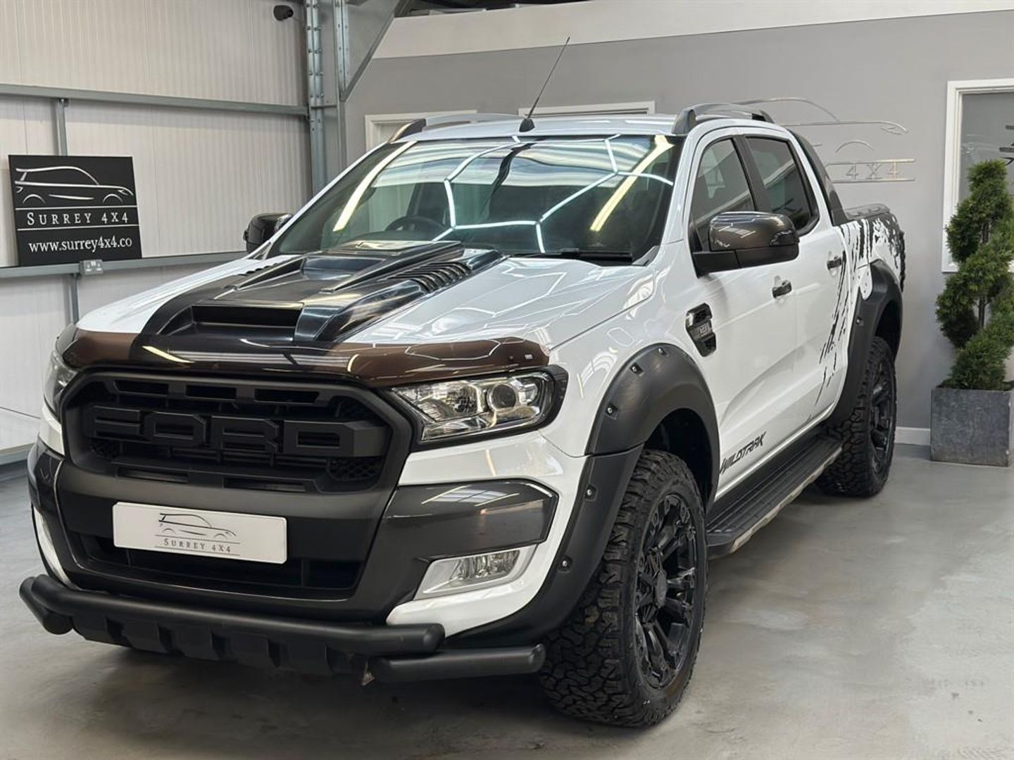 NO VAT NO VAT STUNNING TOP OF THE RANGE FORD RANGER WILDTRAK AUTOMATIC WITH BLACK LEATHER SEATS, SATELLITE NAVIGATION, REVERSE CAMERA, LED, BLUETOOTH, AUX, MULTI FUNCTION STEERING WHEEL, ELECTRIC WINDOWS, ELECTRIC HEATED SEATS, TOUCH SCREEN, ELECTRIC MIRRORS, AIR CONDITIONING, EURO 6, SYNC 3, ISOFIX, NEW BLACK FORD RAPTOR GRILL, NEW 20 INCH BLACK ALLOYS WITH NEW ALL TERRAIN TYRES, APPLE CAR PLAY, NEW FRONT NUDGE BAR, NEW BONNET SCOOP WHICH IS FITTED AT CUSTOMER CHOICE, BLACK RAPTOR ARCHES, ULEZ, TOW BAR WITH ELECTRICS. 2 KEYS, FULL SERVICE HISTORY WITH SERVICE JUST CARRIED OUT, MOT UNTIL OCTOBER 2026 WITH NO ADVISORIES. FINANCE AVAILABLE FROM 9.9% APR WITH HP OR PCP OPTIONS AVAILABLE AND ANY PART EXCHANGE WELCOME. CALL OUR SALES LINE ON 01483-959939 TO BOOK AN APPOINTMENT OR WHATSAPP US ON 07515596289 PLEASE VISIT OUR WEBSITE FOR MORE PICTURES WWW.SURREY4X4.COM