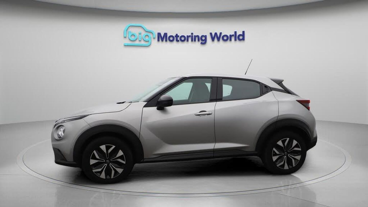17'' Alloy Wheels,Rear View Cam-Our Nissan Juke is finished in Silver. Specification includes a range of fantastic features including 17'' Alloy Wheels, Rear View Camera, Bluetooth, Ambient Lighting, Cruise Control, Climate Control, Voice Control, DAB Radio , Touch Screen Control, LED daytime running lights Specification information is supplied by CAPHPI and may vary to the actual car. This data does not form any part of a buying contact. Please check specification prior to purchase in-store. The MOT is valid until November 2026, visit bigmotoringworld.co.uk for more photos, a 360 tour, service history and a free HPI report.Were BIG on peace of mind and this Silver Nissan Juke has completed our comprehensive 200 point inspection and passed all checks. Its ready for you to drive away with immediate collection in-store. We include a 90-day warranty as standard plus an option to extend for up to 3 years.Reserve this car exclusively for you, safely and securely at bigmotoringworld.co.uk, with a fully refundable £99 deposit. Test drive before you buy, with no commitment, no hassle and a completely haggle free experience. Still searching and want to see thousands more cars? We are BIG on choice with over 8000 cars to choose from.Visit our award winning web site bigmotoringworld.co.uk.Were Big Motoring World and were BIG on what matters to you.-Multi Award Winning Website & Car Supermarket of the year WINNER 2018. Call now.