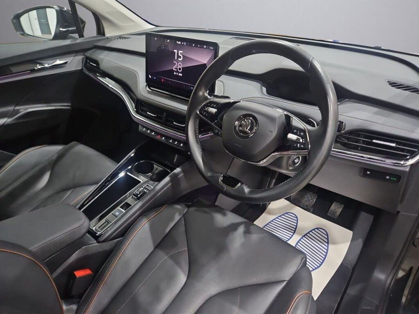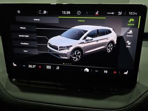 12V Socket in Boot, 13in Touchscreen Display, 19in Alloy Wheels - Proteus, 2-Spoke Leather Multifunction Steering Wheel, ABS - Anti-Lock Braking System, Air Conditioning - Climate Control Dual Zone, Airbag - Front Side with Curtain Airbags and Central Interaction Airbag, Anti-Theft Alarm System - Interior Monitoring - Backup Horn and Towing Protection, Anti-Theft Locking Wheel Bolts, Basic LED Headlights with LED Daytime Running Lights and Headlight Range Control, Bluetooth, Child Safety Lock - Manual, Chrome Roof Rails, Chrome Window Surrounds, Cruise Control with Speed Limiter, DAB Radio, Door Mirrors - Heated - Electronically Adjustable - Folding and Auto Dimming with Boarding Spots and Welcome Logo, Driver and Front Passenger Airbags with Front Passenger Airbag Deactivation, Front Assistant including Automatic Braking Function, Front and Rear Electric Windows, Gesture Control, Height Adjustable Driver and Front Passenger Seat - Manual, ISOFIX Child Seat Preparation - Front Passenger, ISOFIX Child Seat Preparation to Outer Rear Seats including Top Tether Hooks, Keyless Start-Stop, LED Ambient Lighting, Lane Assist, Light Assistant, Light and Rain Sensor with Auto-Dimming Rear View Mirror, Loft Design Interior, Luggage Compartment - Boot Lighting, Manual Lumbar Support for Front Seats, Mode 3 Cable - 32A - 6 Metres, Parking Sensors - Front and Rear, Power Steering, Radiator Grille in Matt Black with Chrome Surround, Rear Lights - LED, Rear Spoiler, Rear View Camera, Rear Window Wiper with Washer System and Intermittent Control, Remote Central Locking with SAFE Function, Satellite Navigation System, Seatbelt Reminder - Visual and Acoustic, Side and Rear Windows in Heat Insulating Glass, Single Tone Horn, Skoda Connect - Infotainment Online - 3 years, Skoda Connect - iV Remote Services, Sliding Boot Cover, Speakers x8, Standard Electronic Engine Sound, Three Point Seatbelt in Front with Pretensioner - Lap Belt Pretensioner and Height Adjustment, Three Rear Head Restraints, Tyre Pressure Monitor, USB-C Ports, Umbrella, Virtual Cockpit, Voice Control, Washer Fluid Level Indicator, Wifi Hotspot for Up To 8 Devices, Windscreen in Heat Insulating Glass, Wireless Smartlink, e-Call