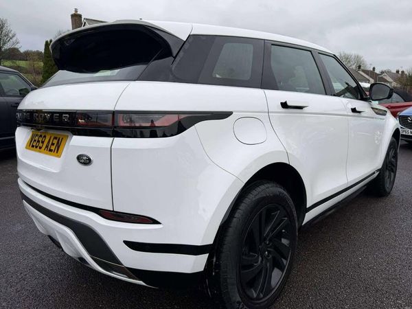 This 2019 Land Rover Range Rover Evoque P250 R Dynamic is a superb example of this popular model. It features a 2.0 litre petrol engine paired with a Four Wheel Drive system, ensuring capable performance in various conditions. As a Euro 6 compliant vehicle, it meets modern emissions standards. This particular Evoque comes with the desirable Connect Pro Pack, enhancing its connectivity and infotainment options. You'll also find the distinctive P250 badge, LED headlights for clear visibility, and 8 way heated manual front seats for comfort. The R Dynamic trim level adds to its sporty appeal, and the Two Zone Climate Control allows for personalised cabin temperatures.The performance of this Range Rover Evoque is a key highlight, with an impressive 0-60mph acceleration time of just 7.0 seconds. This brisk acceleration demonstrates its dynamic capabilities, setting it apart from many other vehicles in its class. The combination of its refined interior, advanced technology, and engaging driving experience makes this 2019 Evoque P250 R Dynamic a compelling choice for those seeking a stylish and capable compact SUV.Comes fitted with front and rear parking sensors, alloy wheels, remote central locking, alarm, immobiliser, electric windows, electric door mirrors, automatic headlights, rain sensitive wipers, leather multi function steering wheel, steering wheel audio controls, gearshift paddles, drivers trip computer, digital dash, cruise control, DAB radio/USB, bluetooth media player,