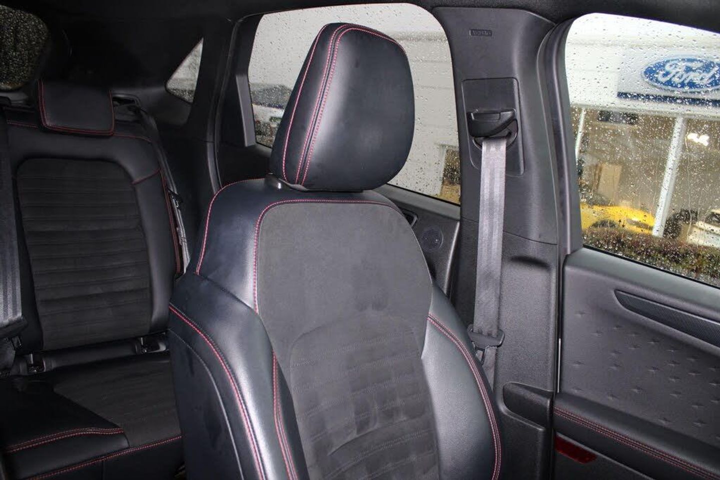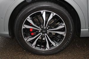 Active park assist, Adaptive cruise control with Stop and Go, BLIS (Blind spot information system), Driver impairment monitor, Eco coaching, Ford easy fuel, Front and rear parking sensors, Front and rear view camera, Hands free power tailgate, Head up Display, Intelligent speed assist, Lane keeping aid with lane departure warning, Mobile phone wireless charging pad, Power assist steering, Selectable drive modes, SYNC 3 with navigation, DAB audio, Auto dimming rear view mirror, Auto headlamps with high and low beam, Auto wipers, Black roof rails, Door edge guards, Electrically operated front and rear windows, Front LED fog lights with cornering function, Full LED quad projector headlamps with glare free, Large rear spoiler, LED daytime running lights, LED rear lights, Power folding heated door mirrors with puddle lights, Power front/rear windows with global close, Power opening panoramic roof, Privacy glass, Quickclear heated windscreen, ST Line badges in exterior and interior, ST Line body styling kit with unique front and rear fascia and bumper, rear painted diffuser, front painted skid plates, dark mesh upper grille, ST Line front scuff plates, Twin exhausts, 10 way power adjustable drivers seat, 2nd row sliding seats, 8 way manual passenger seat including lumbar support and height adjust, Alloy pedals, Ambient lighting, Centre console with electronic parking brake, Dark headlining and pillars, Dual electronic automatic temperature control, Flat bottomed leather steering wheel in sensico with red stitching, Front and rear head restraints, Heated passenger and driver seats, Partial leather manual track seat, Rear charging point, Sensico partial premium leather upholstery, Sports seats, ST Line front and rear floor mats, Steering wheel mounted paddle shift, Engine immobiliser, Keyless entry, Keyless start with 'Ford Power' starter button, Locking wheel nuts, Remote powered central double locking doors, Thatcham category 1 alarm, ST-Line X First Edition Pack, Winter Pack, Mini Spare Wheel - 17in Steel, Salerno Leather - Rapton Cloth - Ebony with Red Stitching, Solar Silver Metallic Paint