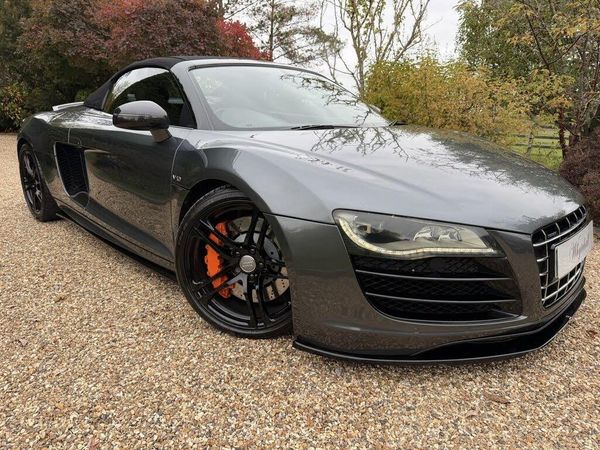Whytehall have great pleasure in offering this superv high specification AUDI R8 5.2 FSI V10 Spyder 2dr Petrol R Tronic quattro Euro 5 (525 ps) Factory extras include Daytona grey pearl metallic, silver grey alcantara and leather interior package, carbon interior exterior package. Maxton spoilers and side skirts, apple car play, B&O Sound package,6 CD, reverse camera, 19' gloss black alloy wheels, Miltek super cup exhaust system. Dynamic mag ride, full service history with invoices. clutch replacement October 2024 at 47371. Good looking R8. Same day drive away finance. Part exchange welcome, 2 sets of keys. Please click onto our website to build your own finance package and to watch video. Appointment only.