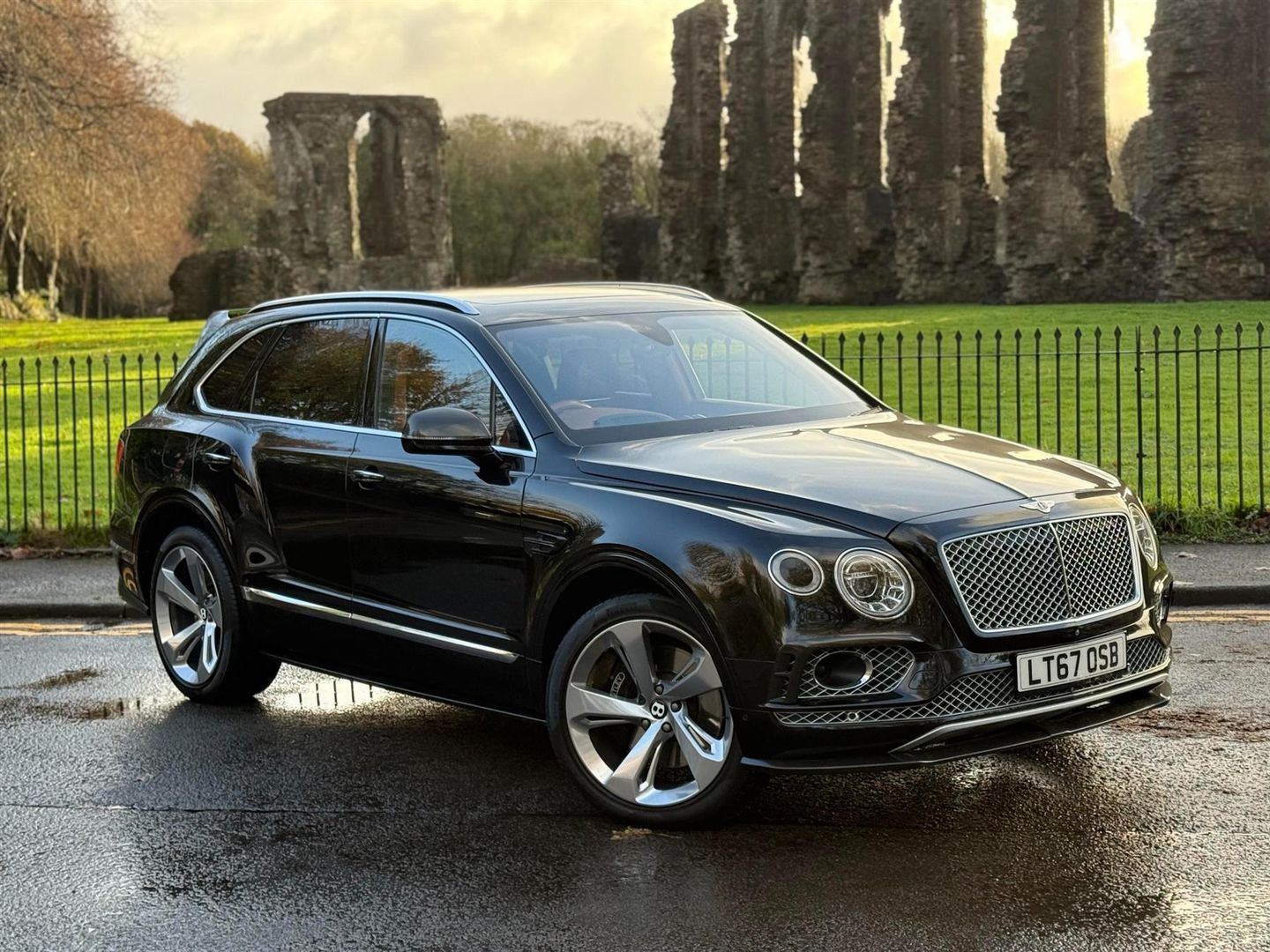 This is not your average Bentley Bentayga by any means... Being bought from new in late 2017, the original owner spared no expense on acquiring the perfect specification. From the bespoke tan on black colour combination to it's meticulously chosen optional extras, every element has been carefully considered to create a truly standout example of the Bentayga. Finished in an elegant shade of Onyx Metallic and sitting on the optional ''Five Spoke Directional'' alloy wheels, with a beautifully contrasting Newmarket Tan leather upholstery, this Bentayga just oozes sophistication and class. The owner also opted for Bentley's valuable ''Bentayga Styling Specification'' package, which consists of a full carbon fibre body kit, giving this luxury SUV a touch of aggression. Powered by Bentley's renowned 6.0 Litre W12, the vehicle offers up 600bhp effortlessly through all four wheels. This is all delivered through the ultra-smooth 8 speed automatic gearbox. It truly is the ultimate statement of refinement and British craftmanship. Meticulously maintained and presented in astounding condition throughout, this example represents an exceptional opportunity to acquire a carefully cherished, highly specified Bentley Bentayga that truly stands out. Options / Specification Onyx Black Metallic Paintwork 22'' Five Spoke Directional Wheel - Polished Pirelli P Zero 285/40/ZR22 Bentley Dynamic Ride Newmarket Tan / Saddle Leather Contrast Stitching Embroidered Bentley Emblems Bentayga Styling Package Bright Chrome Fittings to Windows and Doors Bright Chrome Matrix Style Grille Electrically Operated Door Mirrors with Heating, Power Folding and Memory Function - Auto Dim Panoramic Roof Rear Privacy Glass (with Acoustic Side Glazing) Dark Fiddleback Eucalyptus Genuine Wooden Trims Heated, Duo-Tone, 3 spoke Hide Trimmed Steering Wheel Bentayga Clock Drilled Alloy Sports Foot Pedals Factory Applied Underbody Protection Bentley GPS Tracking System Hands Free Tailgate Mood Lighting Adaptive Cruise Control Blind Spot Assist and Exit Warning Keyless Entry Digital TV Tuner 16-Way Memory Seats Front / Rear Heated Seats Heads Up Display Park Assist Top View Camera Traffic Sign Recognition (The full Bentley spec sheet is available with the vehicle documentation pack) SERVICE HISTORY 27/06/2018 Bentley - 9,408 miles 18/06/2019 Bentley - 19,889 miles 03/07/2020 Bentley - 27,665 miles 22/07/2021 Bentley - 35,095 miles 24/11/2022 Bentley Essex - 42,345 miles 29/01/2024 Bentley High Wycombe - 47,361 miles, .