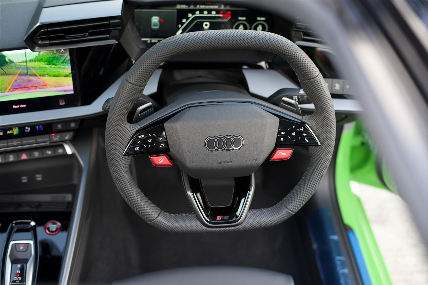 This 2024 Audi RS3 TFSI Carbon Vorsprung is a remarkable example, boasting an incredibly low mileage of just 95 miles and having had only one owner from new. As a Euro 6 compliant vehicle, it features a powerful 2.5 litre petrol engine paired with Audi's renowned four wheel drive system, ensuring exceptional performance and handling. The Carbon Vorsprung trim level signifies a high specification, enhanced further by the inclusion of the Technology Pack, which brings adaptive cruise control, a head up display, a rear camera for parking assistance, and a premium branded sound system. Comfort is assured with heated front seats and a 3 zone deluxe automatic air conditioning system, while the Technology Pack Pro adds LED headlights and an opening panoramic sunroof. Convenience is also a key aspect, with the Audi Phone Box offering wireless phone charging.