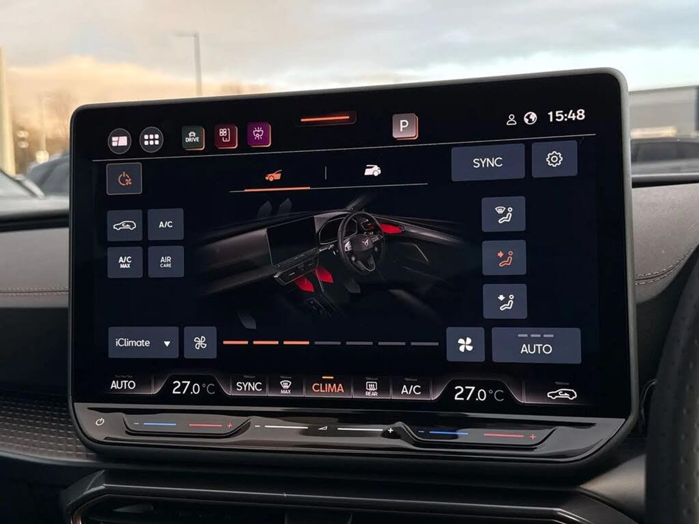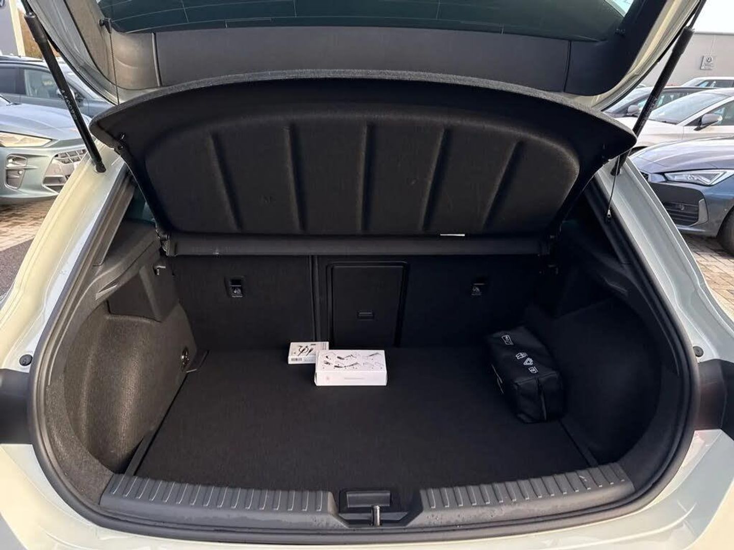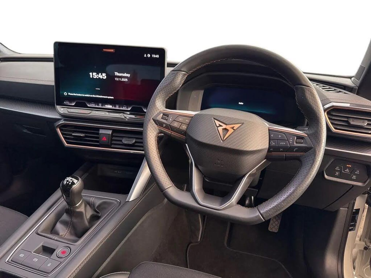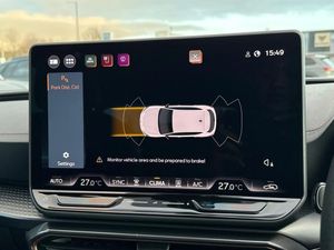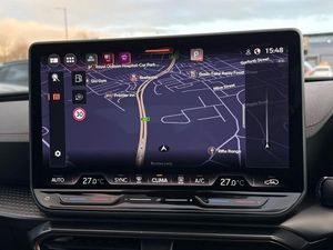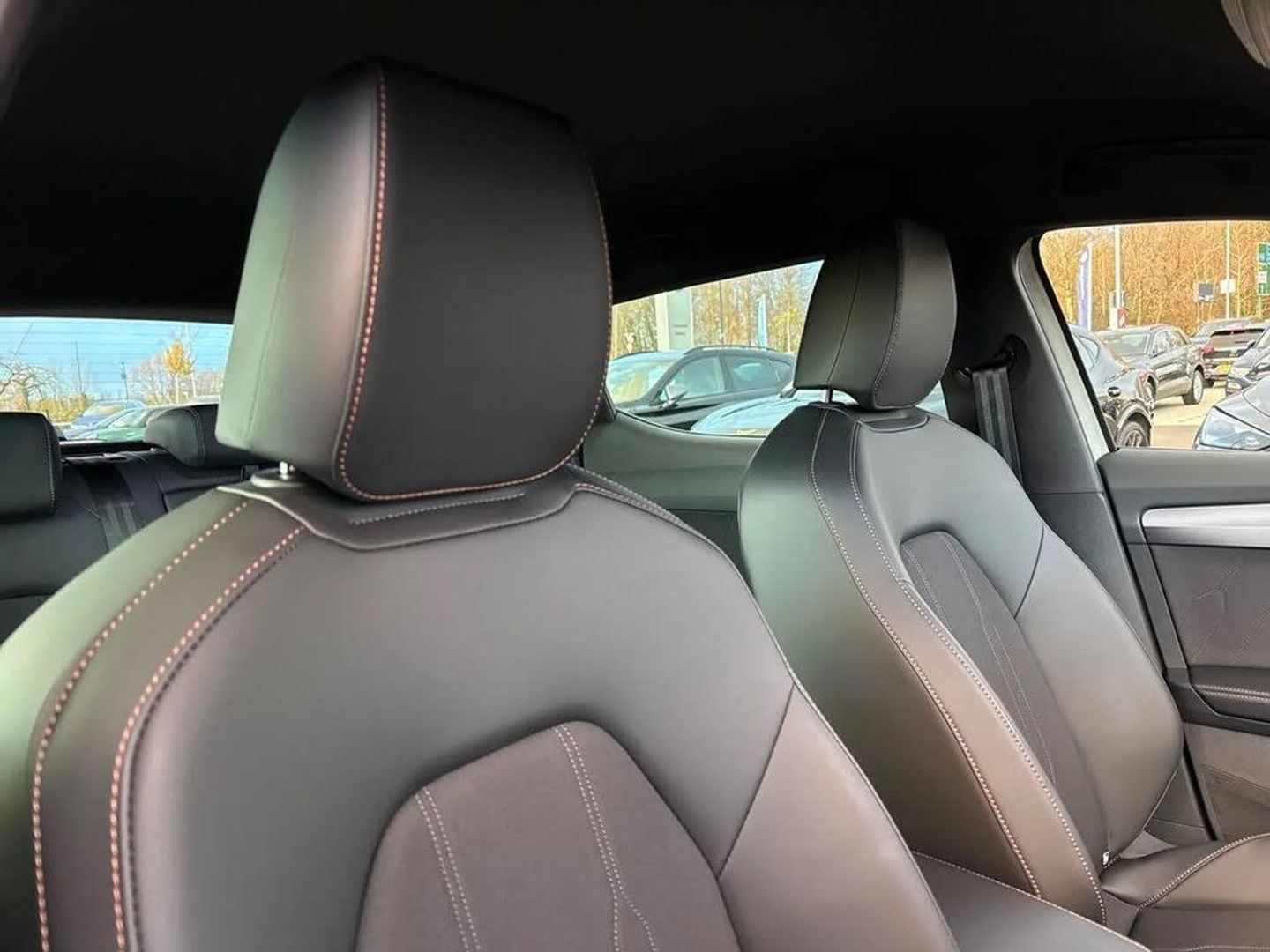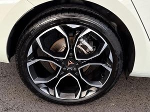 Dark tinted rear windows,Electric front/rear windows,Rain sensing wipers,Rear wash/wipe,Body colour door handles,Body coloured bumpers,Cupra sports bumpers,Rear side wing doors,High beam assist,LED front fog lamps with cornering function,LED headlights with dynamic turn signals,tail lights,rear fog lights with rear coast to coast lighting,LED rear fog lamp,Separate daytime running light with automatic headlight control and coming home feature,Third brake light,Welcome light with logo projector in door mirrors,ABS,Brake control system - ESC and brake booster,Cupra black brake calipers,Electronic parking brake,Hill hold control,Rear disc brakes,Adaptive cruise control with follow-to-stop and speed limiter,CUPRA drive profile selection with (Comfort/Sport/Individual),throttle response and gearshift mode,Dynamic road sign display,Front and rear parking sensors,Front assist with forward collision warning braking reaction to vehicles,pedestrians and cyclists,Lane assist,PAS,Auto dimming rear view mirror,Electrically adjustable,heated and folding door mirrors,3 point seatbelts on all rear seats,Child proof door locks,Driver and front passenger airbags with front passenger airbag de-activation,front side and curtain airbags,Seat belt reminder for front and rear seats,Tiredness recognition system,Tyre pressure monitoring system,E-call,Full link smartphone integration with Mirror Link,wireless Apple CarPlay and wired Google Android Auto,7 speakers,Auxiliary input socket,Lockable tailgate,Start/stop system with regenerative braking,Wireless phone charger,Digital cockpit,Four x USB Type C ports (2 in front and 2 in rear),RPM,trip computer,outside temp gauge,instrument light brightness,low fuel warning light,lights on reminder,gearshift indicator,Service interval indicator,Chrome and copper interior detailing,3 seat bench in 2nd row,5 headrests,60/40 split rear bench seat with armrest,Driver and passenger seat with manual height and lumbar adjustment,ISOFIX points in outer rear seats with top tether anchorage points,Single front passenger seat,Three zone climate control,12v power supply in centre console,Black headlining,Cloth/PVC upholstery,CUPRA Leather flat bottomed,heated,perforated steering wheel,Folding boot cover,Front centre armrest,Height/reach adjust steering wheel,Illuminated interior front door sills,Storage pockets on rear of front seats,Ambient lighting with glovebox,footwell and single monocolour,Front and rear reading lights X 4,Sunvisors with illuminated mirror,Media system plus with 12.9" display + navigation pack - Leon Cupra,Anti theft alarm system with interior monitoring in cab,backup horn and towing protection,Central locking system Keyless Go,Locking wheel bolts,18" Windstorm machined sport black matt and silver alloy wheel with 92Y XL tyres,Tool kit