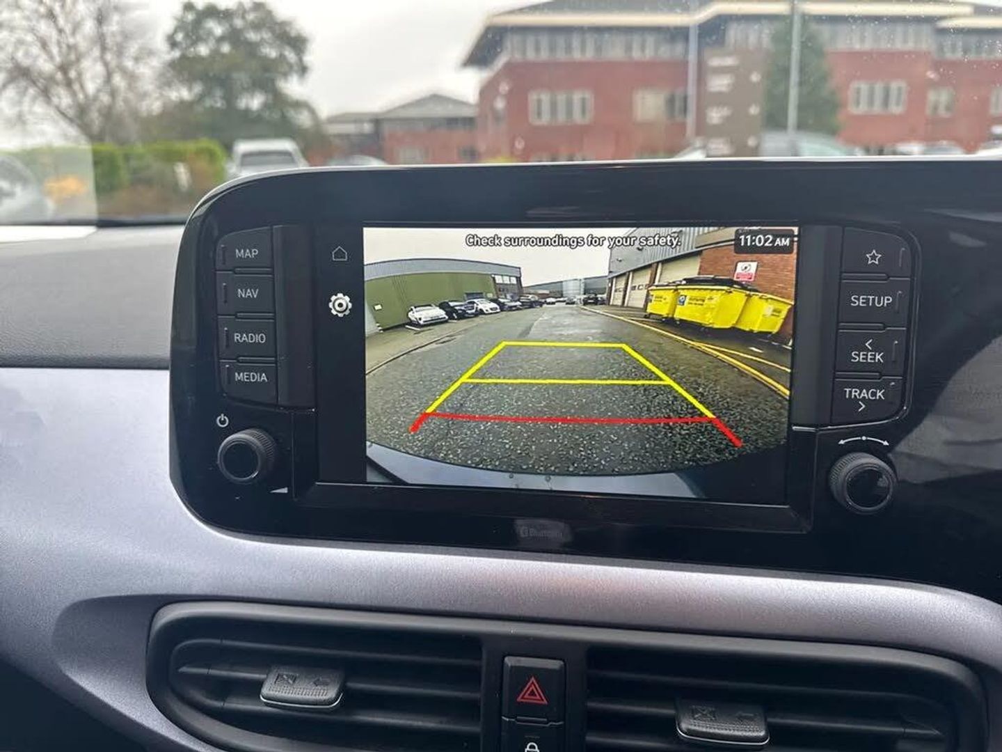Apple car play/Android Auto,Bluelink mobile remote connectivity,Bluetooth connectivity with voice recognition,Cruise control,Driver attention alert system,eCall emergency call system,Forward Collision-Avoidance Assist (FCA) - Pedestrian/Cyclist,Front USB-C charging and USB-A data,Full-width 4.2" LCD instrument cluster,Intelligent speed limit assist,Lane departure warning system with lane keep assist - LKAS,Lane follow assist,PAS,Rear parking sensors,Rear view camera with guidelines,Roadside assistance,Start/Stop function,Tailgate,Trip computer,Wireless charging pad,2 front/2 rear speakers,Rear USB-C device charger,Steering wheel audio, phone and cruise controls,1 speed non intermittent rear windscreen wiper,Black finish on B pillars,Body colour door handles,Body coloured bumpers,Body coloured door mirrors,Electric folding door mirrors,Electric front windows,Electric rear windows,Electrically adjustable and heated door mirrors,Flat metal emblem,Front fog lights,Front grille in glossy black,Front intermittent wipers,Halogen bi-function headlights,Headlights inner with Black Blade design,Heated rear window,High beam assist,Indicator light on door mirrors,LED DRLs diamond mesh design,Privacy glass - Rear windows and tailgate,Rear roof spoiler with integrated LED brake light,Rear side wing doors,12v power outlet - front,3 seat bench in 2nd row,60/40 split folding flat to floor rear seats,Air conditioning,Auto light control,Bottle holders in front/rear doors + front centre console,Cabin and luggage compartment interior lighting,Cloth upholstery,Driver + passenger vanity mirrors,Driver's seat height adjustment,Driver/passenger sunvisors with ticket holders,Floor mats,Front door pockets,Front Head Restraints - Vertical and Horizontal Adjustment,Front LED blue mood lighting,Glove compartment,Heated front seats,Heated steering wheel,Height adjustable steering column,Isofix child seat preparation,Leather multifunction steering wheel,Rear door pockets,Single front passenger seat,Vertical adjustment rear head restraints,3x3 point rear seatbelts,Airbags - front, front side and curtain airbags,Anti-lock brake system (ABS),Autonomous emergency braking (AEB) with forward collision warning system,Brake assist function,Childproof rear door locks,Electronic stability control,Front and rear seatbelt reminder,Front seatbelt pretensioners,Hill start assist control (HAC),Passenger airbag deactivate switch,Traction control,Tyre pressure monitoring system,Immobiliser,Perimeter alarm,Rear occupant alert,Remote central locking,Second remote key,Smart key with motion sensor,Speed sensitive auto door locking,16" alloy wheels,Tyre repair kit