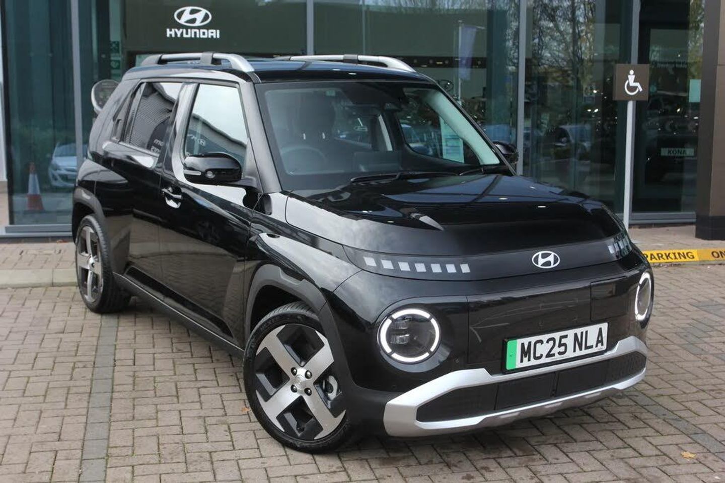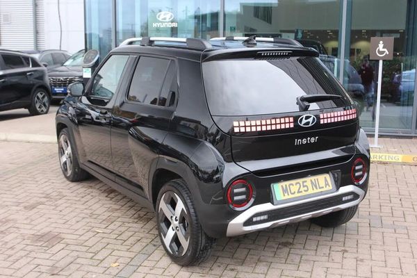 10.25" touchscreen centre console display with satellite navigation,Bluetooth connectivity with voice recognition,Drive mode selector,Driver status monitor with in cabin camera (ICC),Driver supervision instrument cluster with 10.25" LCD display,eCall emergency call system,Forward collision avoidance assist (FCA 1.5) - Car,pededstrian,cycle and junction turning,Front parking sensor,HDA - Highway Drive Assist Level 1.5,Intelligent speed limit assist,Lane departure warning,Lane follow assist,Lane keep assist,Leading vehicle departure alert (LVDA),Over the air software updates (OTA),Parking system with rear camera and guidance system,PAS,Rear parking sensor,Roadside assistance,Smart cruise control with stop and go functionality,Smartphone integration with Apple CarPlay/Android Auto,Wireless phone charging pad,11 kW AC onboard charger,Battery heating system,Charging cable - 7 pin type 2 mode 3 (Wallbox),Charging cable - Emergency 3 pin connector mode 2 (ICCB),Shift by wire (SBW) - Column mounted shifter,DAB Digital radio,Front and rear speakers,Front USB Type C charger,Front USB Type C port,Rear USB Type C charger,Speakers - Tweeters,Steering wheel audio,phone and cruise controls,Auto dimming rear view mirror,Automatic headlights with dusk sensor,Automatic windscreen wipers with rain sensor,Black painted wheel arch inserts,Body colour exterior door handles,Body coloured door mirrors,Door mirror indicator lights,Electric front windows with anti-trap mechanism and one touch control,Electric rear windows,Electrically adjustable and heated door mirrors,Front and rear LED turning signals,Grille with pixel pattern,High beam assist,LED daytime running lights,LED full projection headlights,LED rear lights,Power folding door mirrors,Privacy glass - Rear windows and tailgate,Rear roof spoiler with integrated brake light,Rear side wing doors,Rear wiper,Roof rails,Windscreen auto defog function,12V power outlet in front console,2 seat bench in 2nd row,4 Map pockets in the doors,50/50 split folding rear seats,64 colours interior ambient lighting,Adjustable head restraints,Cloth upholstery,Driver front seat back panel,Driver's seat manual height adjustment,Driver/passenger sunvisors and illuminated vanity mirrors,Floor mats,Front illuminated open tray,Fully foldable front seats,Heat pump,Heated front seats,Heated steering wheel,Height/reach adjustable steering column,Leather wrapped steering wheel,LED centre interior light,LED front interior light,Luggage board,Luggage compartment LED lighting,Luggage shelf,Metal paint effect interior door handles,Rear centre armrest with double cupholders,Single front passenger seat,Single zone climate control,Sliding and reclining rear seats,Steering wheel design with LED pixels,Vertical adjustment rear head restraints,Trailer wiring package - Inster,2 x 3-point rear seatbelts,3-point front seatbelts,Airbags - front, front side and curtain airbags,Anti-lock brake system (ABS),Electric parking brake with auto hold function,Electronic stability control,Hill start assist control (HAC),Manual child lock in rear doors,Tyre pressure monitoring system,Immobiliser,Rear occupant alert,Remote central locking,Smart key with keyless entry and start/stop button,Five year annual vehicle health checks,17" Alloy wheels,Temporary mobility kit (TMK)