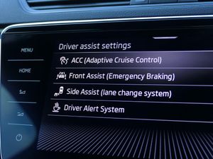 Bluetooth system, CareConnect and Emergency Call, Columbus HDD satellite 3D map navigation with 9.2" colour touch screen, web radio, integrated Wi-Fi, Driver fatigue sensor, Front assist with pedestrian protection, Progressive dynamic steering, Stop/start engine system and energy recovery, Virtual cockpit, Voice control system, Wireless smartlink apple carplay, SmartLink+ android auto, XDS+, 2 USB ports, Bolero radio with 8" touchscreen display, DAB Digital radio, 3rd brake light, Aero front windscreen wipers with intermittent function, Auto dimming rear view mirror, Black rear badge, Body colour door handles, Cornering front fog lights, Electrically adjustable heated and folding door mirrors with memory function, Front and rear electric windows, Full matrix LED headlights with AFS LED DRL integrated with headlight washer LED rear lights(High function), dynamic indicators and lighting animation, Gloss black exterior door mirrors with sports styling including front grill, side strip and window surrounds, Gloss black grille surround with gloss black rib elements, Gloss black rear spoiler (roof), Gloss black strip between rear lights, Light assistant (coming/leaving home/tunnel light), Privacy glass, Rain sensor, Rear exhaust diffuser styling elements, Rear side wing doors, Sportline badging, 12v power point in centre console, 3 seat bench in 2nd row, Black roof headlining, Black textile floor mats, Carbon optic interior elements, Electric auxiliary air heater, Front and rear footwell illumination, Front armrest with storage box, Height adjustable front and rear head restraints, Ice scraper, Illuminated and cooled glovebox, Interior lights with control switches, Isofix child seat fittings on outer rear seats, LED front and rear reading lights, Microsuede/leather upholstery with silver diamond stitching sports seats, One umbrella compartments in driver door with one umbrella in drivers door, Overhead glasses storage compartment, Rear centre armrest with cupholders, Removable parcel shelf, Single front passenger seat, Split folding rear seats, Storage compartment with cover in luggage compartment side panels, Ticket holder on A Pillar, LED package plus - Superb, 3 rear seatbelts, 7 airbags - Front, front side, curtain, driver's knee airbag with front passenger deactivation switch, Driver and passenger seatbelts with warning light, Electronic parking brake, ESC including ABS, EBV, MSR, ASR, EDS, HBA, DSR, RBS, CBC, multi-collision brake (MKB) and Auto hold, Hill start assist, Power operated child lock in rear doors, Tyre pressure monitor, Alarm with interior monitoring tilt sensor and back up horn, Electronic engine immobiliser, Keyless entry and start/stop, Remote central locking with SAFE system, Third remote key