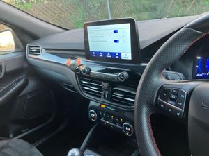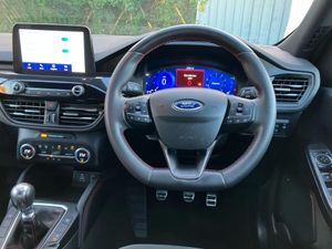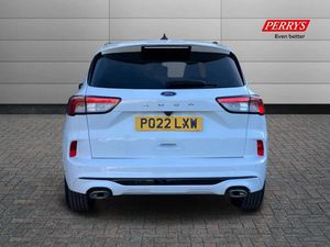 Driver impairment monitor,Ford easy fuel,Ford SYNC 3 with 8" colour touchscreen, App Link, andriod auto/apple carPlay and navigation with Ford pass connect,Front and rear parking sensors,Intelligent speed assist,Lane keeping aid with lane departure warning,Mobile phone wireless charging pad,Power assist steering,Selectable drive modes,Sports suspension,Auto dimming rear view mirror,Auto headlamps with high and low beam,Auto wipers,Black roof rails,Front LED fog lights with cornering function,Full LED headlamps,Large rear spoiler,LED daytime running lights,LED rear lights,Power folding heated door mirrors with puddle lights,Power front/rear windows with global close,Privacy glass,Quickclear heated windscreen,ST Line body styling kit with unique front and rear fascia and bumper, rear painted diffuser, front painted skid plates, dark mesh upper grille,ST Line front scuff plates,Twin exhausts,2nd row sliding seats,8 way manual passenger seat including lumbar support and height adjust,Alloy pedals,Ambient lighting,Centre console with electronic parking brake,Dark headlining and pillars,Dual electronic automatic temperature control,Flat bottomed leather steering wheel in sensico with red stitching,Front and rear head restraints,Rear charging point,Sensico partial premium leather upholstery,Sports seats,ST Line front and rear floor mats,Unique ST Line leather gear knob,B&O with large instrument cluster pack - Kuga,3x3 point rear seatbelts,Airbags - front driver/passenger, front and rear curtain,Drivers knee airbag,Electronic stability control (ESC) and ABS,Ford MyKey Gen 2 safety system,Post collision braking,Powered child proof rear door locks,Pre collision assist with autonomous emergency braking,Red brake calipers,Tyre pressure monitoring system,Engine immobiliser,Keyless entry,Keyless start with 'Ford Power' starter button,Locking wheel nuts,Remote powered central double locking doors,Thatcham category 1 alarm,Frozen White