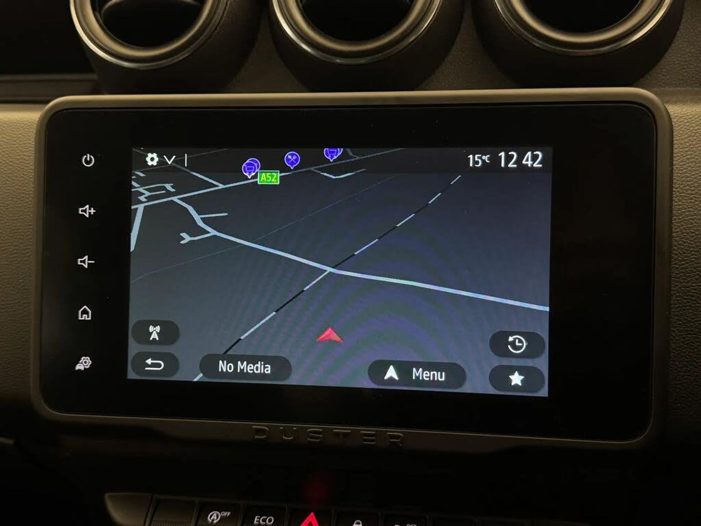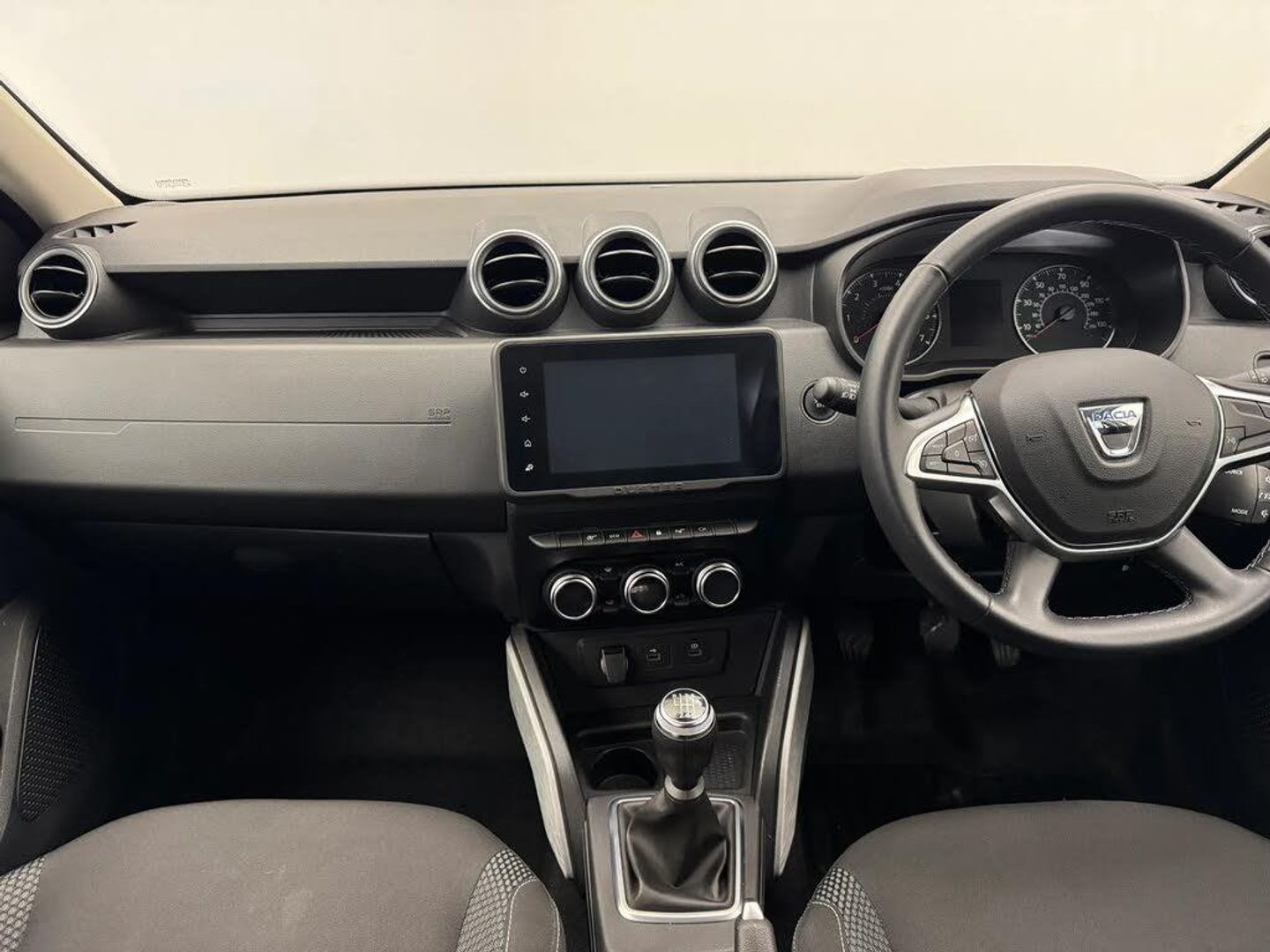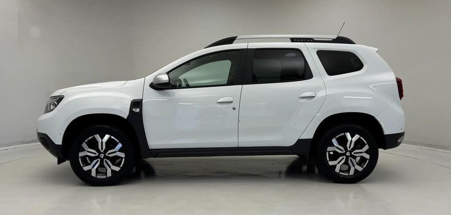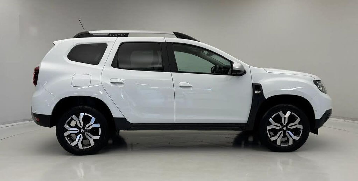 4x4 monitor with altimeter,Blind spot warning,Compass functional at 0km/h,Cruise control and speed limiter,Dacia instrument cluster,eCall emergency system,Eco mode,Electric power assisted steering,Multi view camera,On board computer, odometer, trip computer, average fuel consumption, average speed, service indicator, outside temperature gauge,Rear parking sensors and reverse camera,Rev counter,Stop/start system,8" Media Navigation with wireless smartphone replication,Dacia plug and radio/MP3/USB/bluetooth/DAB/steering wheel control,3 speed windscreen wipers,Acoustic windshield,Black side sills,Black/satin chrome tailgate trim with Duster inscription in black background and lettering,Body coloured door handles,Chrome front grille with hot stamping,Chrome logo surround on steering wheel,Dark glass on lateral rear windows,Dusk sensor,Electric adjustable/heated door mirrors,Electric front windows,Electric rear windows,Front and rear body coloured bumpers,Front door sill protection strip,Front fog lights,Grey quartz longitudinal roof bars with Duster inscription,Grey quartz painted door mirrors,Heated rear window,High level third rear brake light,LED automatically switched on - In main headlights,LED daytime running lights,Rain sensor,Rear side wing doors,Rear spoiler,Rear wash/wipe,Underbody protection skid plates,Y shaped LED headlights with rear LED lights,3 rear height adjustable headrests,3 seat bench in 2nd row,60/40 split folding rear seat,Automatic air conditioning,Backlighted steering wheel buttons,Boot light,Driver seat lumbar adjustment,Fabric decorative insert on door panels,Fabric upholstery,Front head restraints,Front passenger reading light,Gear shift indicator,Glovebox light,Heated seats,Height adjustable driver seat,Height adjustable front and rear headrests,Height and depth adjustable steering wheel,High centre console with driver armrest,Isofix points for child seats in both outer rear seats,Map pocket on front seat backs,Passenger sunvisor with vanity mirror,Rear passenger reading light,Satin chrome gear lever cap insert,Satin chrome interior door handles,Satin chrome lower steering wheel insert,Single front passenger seat,Soft feel leather steering wheel,3x3 point rear seatbelts,ABS and Emergency brake assist,ASR traction control with Electronic stability control,Child locks on rear doors,Door open visual and audible warning,Driver airbag,Driver and passenger seatbelt not fastened - visual and audible warning,EBD - Electronic brakeforce distribution,Front passenger airbag,Front passenger airbag deactivation,Front seatbelt pretensioners,Front side airbags,Height adjustable front seatbelts,Hill start assist,Tyre pressure monitor,Keyless entry,Remote central locking,Thatcham approved engine immobiliser,Dark carbon central console surround,Matt black central console fascia,Piano black decorative insert on door panels,Satin chrome air vent surround,17" Alloy wheels,Tyre inflation kit,Cloth - Black with Grey Stitching,Glacier White