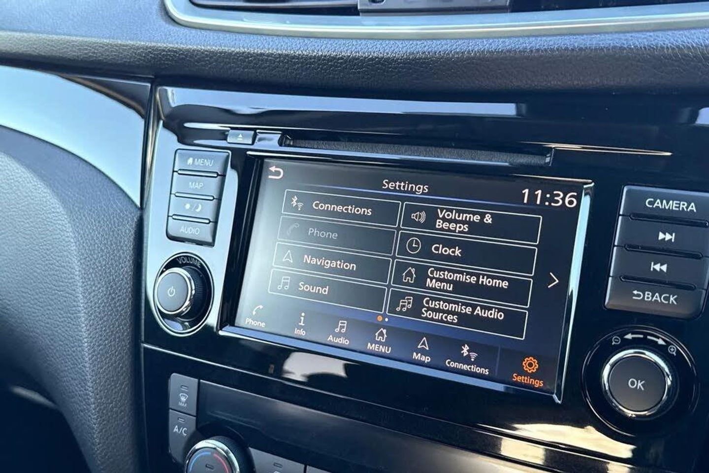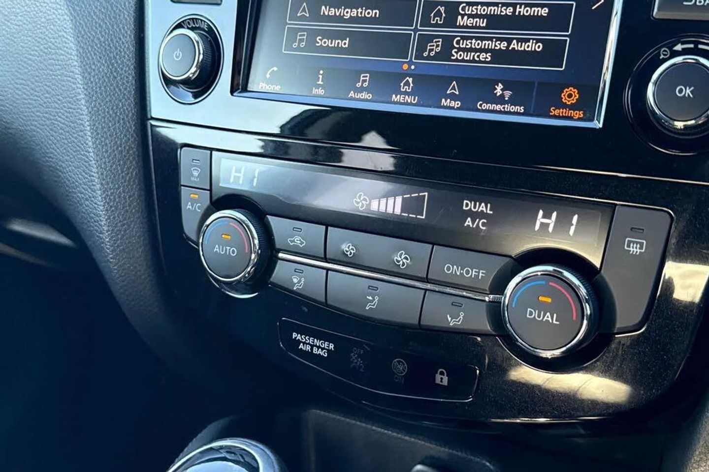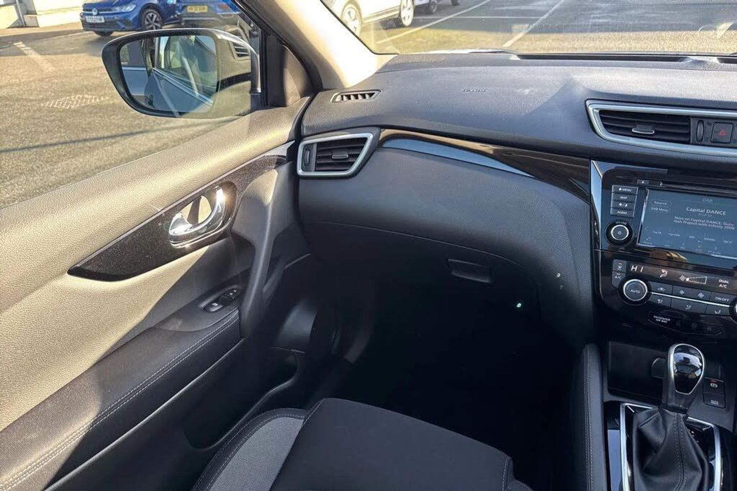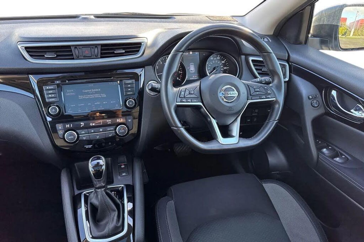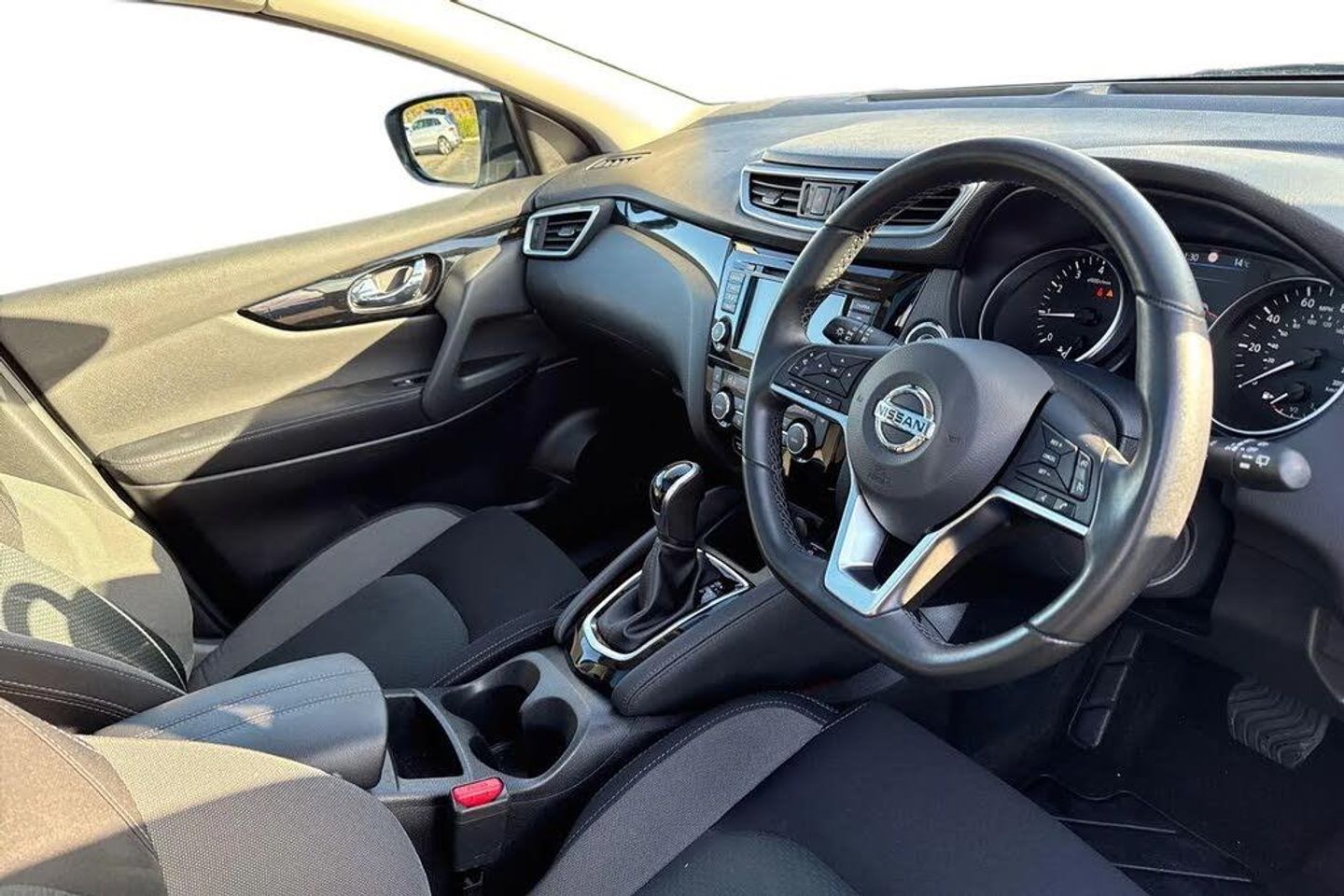 18in Alloy Wheels,3 Height Adjustable Rear Headrests,6 Speakers,60-40 Split Rear Folding Seats,AM-FM-CD Audio System with DAB,AUX Socket for MP3 Player,Advanced Drive Assist Display - 5in TFT Coloured Screen,Ambient Lighting Centre Console,Auto Wipers,Bluetooth with Audio Streaming,Body Coloured Door Mirrors,Body Coloured Handles,Boot Light,Centre Console Storage and Armrest,Chrome Glass Surround,Chrome Interior Door Handles,Cruise Control with Speed Limiter,Daytime Running Lights Dip Function When Turn Signal Applied,Driver Seat Height Adjustment,Driver-Passenger-Side and Curtain Airbags,Drivers Seat with Manual Lumbar Support,Dual Zone Climate Control Air Conditioning,ESP ABS EBD and Brake Assist,Electric Heated Auto-Folding Door Mirrors,Electric Parking Brake,Electric Speed-Sensitive Power Steering,Front 12v Power Sockets x2,Front Fog Lights,Front and Rear Door Pockets with Drink Holders,Front and Rear Electric Windows,Front and Rear Seat Belts with Load Limiter and Pretensioners,Front and Rear Seatbelt Warning,Glossy Black Dash Trim,Halogen Headlamps,Height Adjustable Front Head Restraints,Height Adjustable Front Seatbelts,Hill Start Assist,ISOFIX Child Seat Anchoring Points - Rear x2,Intelligent Around View Monitor,Intelligent Auto Headlight,Intelligent Park Assist,Interior Ambient Lighting,LED Daytime Running Lights,Leather D Shaped Steering Wheel,Leather Gear Lever,Leather Knee Pad,Luggage Board System,Matt Silver Roof Rails,Nissan Anti Theft System Immobiliser,Nissan Chassis Controls,Nissan Connect 7in Touchscreen Navigation and Entertainment System,Nissan Intelligent Key,One Touch 4 x Auto Windows with Illuminated Switches,Outside Temperature Sensor,Parcel Shelf - Stow Function Under Luggage Board,Passenger Airbag Deactivation System,Passengers Seat with Manual Lumbar Support,Pollen Filter,Puncture Repair Kit,Rear Door Child Locks,Rear Roof Spoiler,Rear USB Port,Rear View Camera,Rear Wiper with Reverse Link,Remote Audio Control,Remote Central Locking with Superlocking,Safety Shield Plus,Seats - Passengers Height Adjustment,Selectable Steering - Normal or Sport,Smart Vision Pack,Smartphone App Integration,Start Push Button,Steering Wheel Mounted Audio Controls,Synthetic Leather Wrapped Door Handle with Contrasting Stitching,TPMS - Tyre Pressure Monitoring System,Tech Pack,Thatcham Category 1 Alarm,Tilt and Telescopic Adjustable Steering Wheel,Trip Computer,USB Port,Underbody Vortex Generators,Cloth - Anthracite Bi-Colour,Gun Metallic