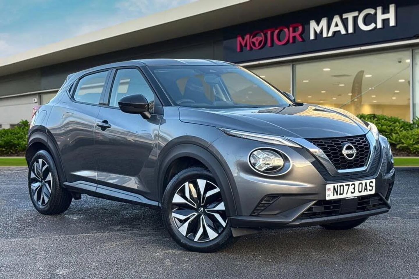 Apple CarPlay/Android Auto, Cruise Control, DAB, Advanced Safety, AC/Climate, Touchscreen, Isofix, Bluetooth, Aux In, Ambient Lighting;Stylish, efficient, and packed with modern features, this Nissan Juke 1.0 DIG-T Acenta Euro 6 (s/s) 5dr delivers the perfect blend of comfort, practicality, and distinctive design. Finished in a sleek Grey exterior, it?s powered by a responsive 1.0-l DIG-T petrol engine paired with a smooth 6-speed manual gearbox, offering the ideal balance between performance and fuel economy. The Juke?s bold design is complemented by striking LED daytime running lights and unique 17-inch Flex Wheels ? Sakura design, giving it a confident presence on the road. Step inside to find a refined and ergonomic cabin equipped with air conditioning to keep you comfortable in all conditions, alongside high-quality materials and a modern dashboard layout. Enjoy seamless connectivity on every journey with the integrated Bluetooth audio and hands-free system, plus a user-friendly touchscreen infotainment system that includes satellite navigation to guide you wherever you go. The rear view camera makes parking and reversing effortless, while cruise control ensures relaxed motorway driving. Built to meet the Euro 6 emissions standard, this Juke combines eco-friendly performance with Nissan?s renowned reliability. Perfect for urban driving or weekend getaways, it?s a compact crossover that offers style, substance, and advanced technology in one smart package. This vehicle is part of the Motor Match Promise that includes a minimum 30 days or 1,000 mile warranty whichever is sooner, RAC extended warranty o...