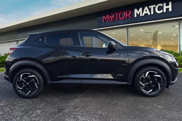 Alloys, Apple CarPlay/Android Auto, AC/Climate, Cruise Control, DAB, Parking Sensor, Advanced Safety, Touchscreen, Sat Nav, Automatic Wipers, Isofix, Bluetooth, Aux In, Ambient Lighting;Experience a perfect blend of bold design, modern technology, and efficient performance with this Nissan Juke 1.6 N-Connecta Auto Euro 6 Petrol Hybrid. Finished in sleek Black, this stylish compact crossover stands out with its distinctive lines, elevated stance, and signature LED daytime running headlights, giving it an unmistakable presence on the road. Under the bonnet, the advanced 1.6-l Petrol Hybrid engine paired with a smooth Automatic transmission delivers a responsive yet refined drive, combining petrol power with electric efficiency for reduced emissions and improved fuel economy. The Euro 6 compliance ensures cleaner performance without compromising on power or reliability. Step inside to discover a smart and comfortable interior designed for modern life. The cabin features air conditioning, a Bluetooth-enabled radio for seamless connectivity, and cruise control for effortless motorway journeys. The Satellite Navigation system ensures you?ll always find your way, while the rear camera makes parking and reversing simple and stress-free. Riding on stylish 17-inch two-tone alloy wheels, the Juke N-Connecta exudes confidence and sportiness from every angle. With its elevated driving position, agile handling, and impressive practicality, this car offers the perfect balance between city style and everyday functionality. Ideal for drivers seeking efficiency, comfort, and innovation, this Nissan Juke N-Connecta is ready to impress with its distinctive design and modern...