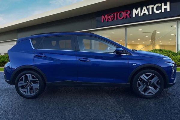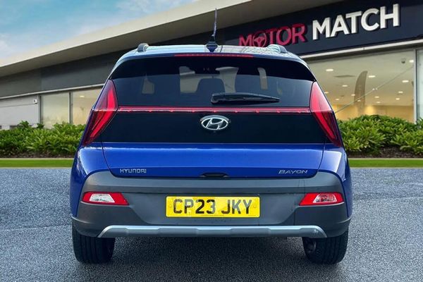 Alloys, Automatic Headlights, Advanced Safety, Bluetooth, Sat Nav, Touchscreen, AC/Climate, Cruise Control, Heated Seats, Heated Steering Wheel, Isofix, Lane Assist, Parking Sensor, Apple CarPlay/Android Auto, Aux In;Stylish, efficient, and packed with modern technology, the Hyundai BAYON 1.0 T-GDi MHEV Premium is a compact SUV designed to deliver both practicality and performance. Finished in a striking blue exterior, this model combines sleek urban design with distinctive Hyundai details, including LED daytime running headlights and 17-inch alloy wheels, giving it a confident and contemporary road presence. Under the bonnet, the 1.0-l T-GDi mild-hybrid petrol engine paired with a DCT automatic transmission provides smooth, responsive power and impressive fuel efficiency, fully compliant with Euro 6 emissions standards. The mild hybrid system assists acceleration and reduces fuel consumption, making it ideal for both city driving and longer journeys. Step inside and you?re greeted by a refined, well-equipped interior featuring air conditioning and heated front seats for year-round comfort. The touchscreen infotainment system includes Bluetooth connectivity, DAB radio, and satellite navigation, ensuring you stay connected and on course wherever you go. Cruise control adds ease on the motorway, while the rear view camera enhances confidence when parking or reversing in tight spots. The BAYON?s spacious five-door design offers excellent practicality, with ample boot capacity and flexible seating for passengers or luggage. Combining Hyundai?s reliability, smart hybrid technology, and a premium specification, this BAYON Premium model is an outstanding choice for drivers seeking style, effi...