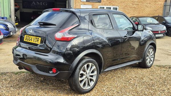 HERE AT AMG MOTOR VEHICLES WE HAVE THIS NICE LOOKING NISSAN JUKE 1.2 DIG T- TEKNA,COMES WITH NISSAN MAIN DEALER SERVICE HISTORY,HAS HAD NEW CHAIN REPLACED 34000 MILES AT NISSAN MAIN DEALERS, FULL BLACK LEATHER HEATED SEATS,KEY-LESS ENTRY AND START,3 DIFFERENT DRIVE MODES,CLIMATE CONTROL,LANE DEPTURE,REVERCE CAMERA ,AND MUCH MORE,PLEASE SEE SPEC LISTED,ALL AMG MOTOR VEHICLES COME WITH 6 MONTHS WARRANTY THAT IS COVERED NATIONWIDE,WEAR AND TEAR COVER TO 125K PLUS,BREAK DOWN,RECOVERY,HOME START,AND EVEN YOUR CAR BATTERY IS COVERED FOR 6 MONTHS..-NISSAN HISTORY+HTD LEATHER+NAV