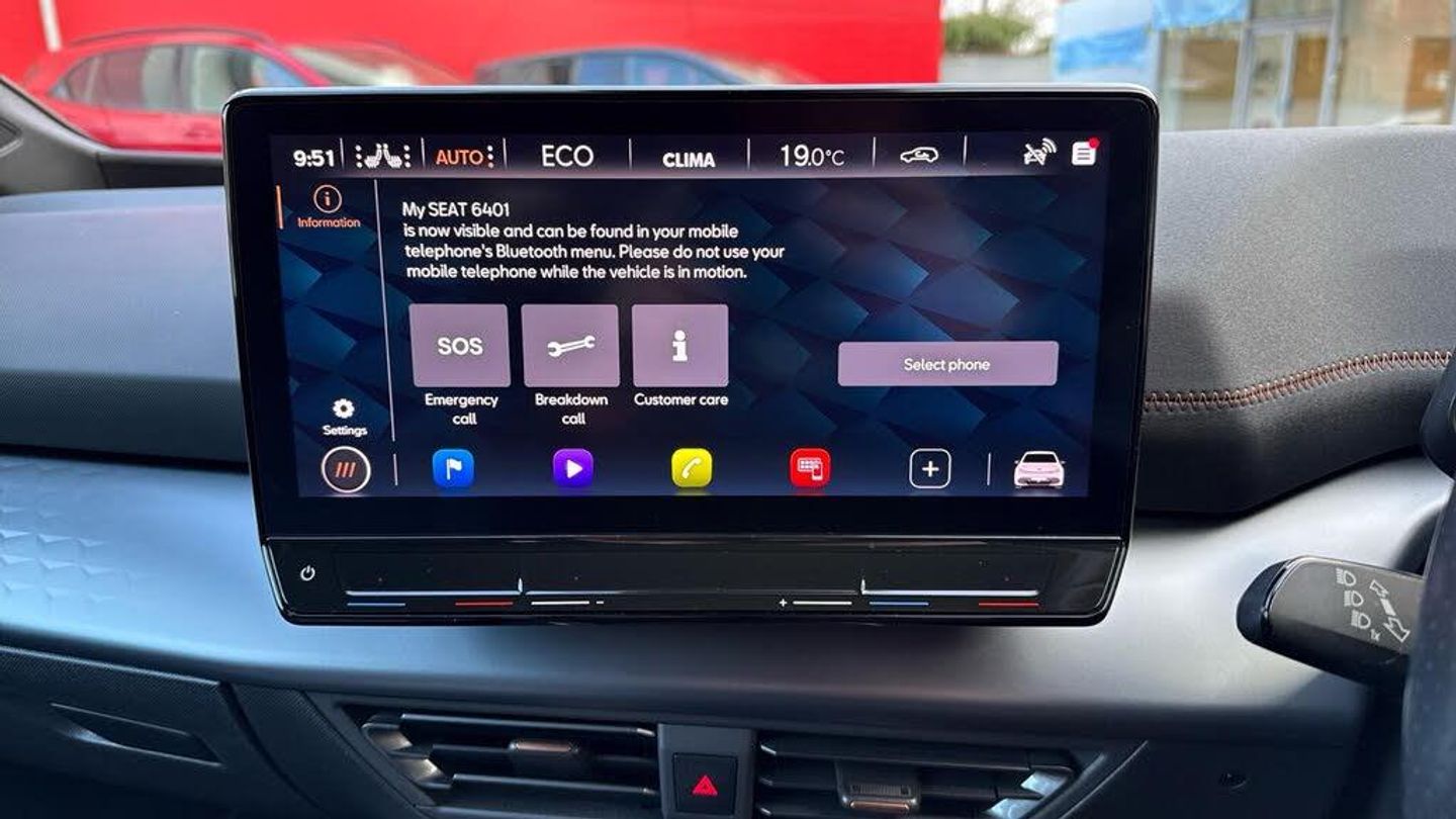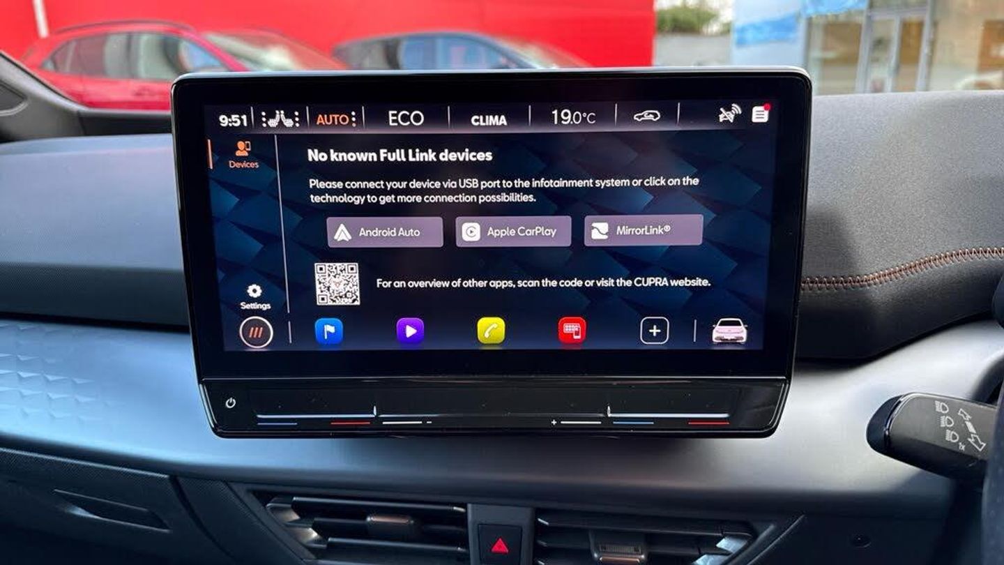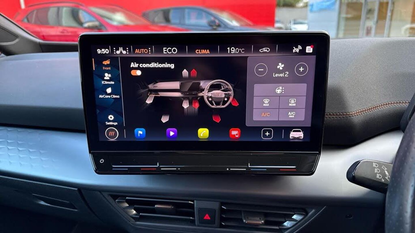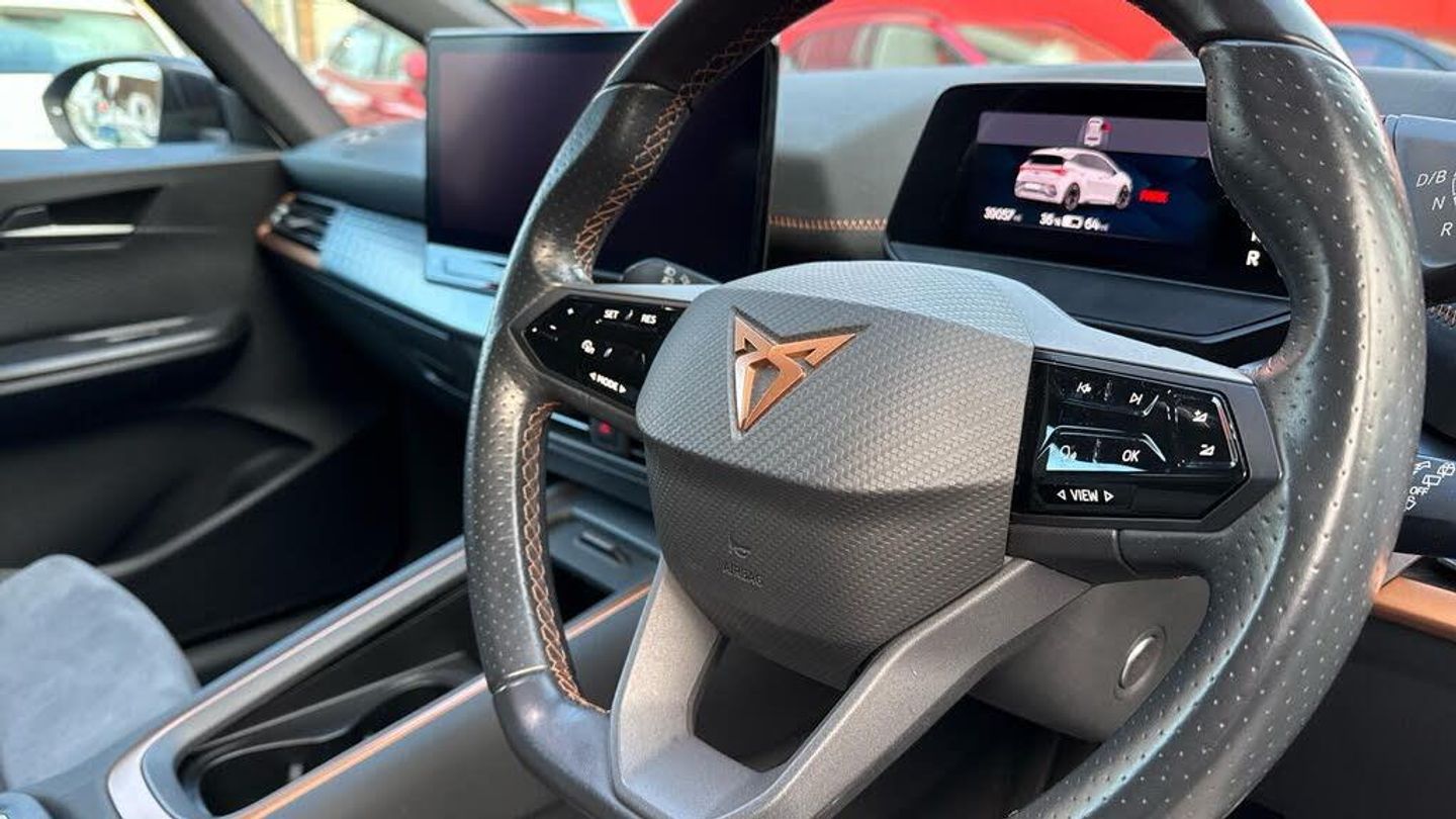 11 kW AC Charging Capacity, 120kW DC Charging Capacity, 20in Alloy Wheels - Hurricane - Machined Aerowheels, 3-Point Seatbelts, 5 Infotainment Speakers, 5.3in Digital Cockpit with 12in Central Display Infotainment System, Aluminium Pedals, Anti-Theft Alarm System - Interior Monitoring - Backup Horn and Towing Protection, Augmented Reality Head-Up Display, Auto Dimming Rear View Mirror, Bluetooth, CUPRA Connect, CUPRA Emblem on Steering Wheel, Charging Cable - Mode 3 - 16amp, Climatronic Dual-Zone Air Conditioning, DAB and AM/FM Radio, Dark Tinted Rear Windows, Door Mirrors Electrically Adjustable - Folding and Heated, Driver Alert System, Driver and Front Passenger Airbags with Front Passenger Airbag Deactivation, Driving Profile Selection, Dynamic Steering, Electric Auxiliary Air Heater, Emergency Steering Support with Turn Assist, Emergency Tyre Repair Kit, Extended Safety System, Forward Collision Warning with Automatic Braking, Front Side Curtain Airbag, Full LED Headlights with Welcome Home Function and Adverse Weather Function, Grey Exterior Mirrors, Heat-insulated Glass and Acoustic Windshield, Heated - Leather-Wrapped - Multifunction Steering Wheel, Heated Front Seats, Heated Washer Nozzles, ISOFIX Points in Outer Rear Seats with Top Tether Anchorage Points, Illuminated Sunvisor with Mirror, Interaction Airbag in Front, Keyless-Go Central Locking System, LED Rear Lights, Lane Assist, Locking Wheel Bolts with Anti-theft Protection, Multi-Coloured Interior Ambient Lighting, Park Assist - including Front and Rear Sensors, Pilot - M, Shock Absorption in Front, Sports Rear Shock Absorption, Tool Kit, Transport Protection Film, Tyre Pressure Monitoring System, USB Type C x4 - x2 Front and x2 Rear, Unsplit Rear Seat Bench - Split Folding Backrest, Visual and Acoustic Seatbelt Reminder, Voice Assistant, Windshield Wiper with Light-Rain Sensor, Wireless Full Link Smartphone Integration, e-Call Service