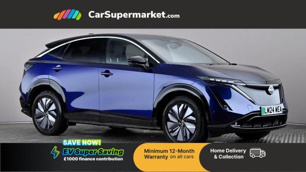 Sat Nav, Blind Spot Monitoring, Bluetooth, Parking Sensors, Cruise Control, Lane Departure Warning, Traffic Sign Recognition, Apple CarPlay, Android Auto, Privacy Glass, Heated Front Seats, Heated Steering Wheel;This 2024 Nissan ARIYA Evolve comes with only 10,795 miles on the clock, this electric ARIYA is a low mileage example for its age. Its impressive 91 kWh battery offers a maximum range of 322 miles when new, ensuring ample travel between charges. For convenience, a full charge at home using a 7kW charger takes approximately 15 hours, while rapid public charging can replenish the battery from empty to 80% in just 40 minutes. The MOT remains valid until July 2027, and the last service was completed on 12th June 2025 at 7,047 miles.