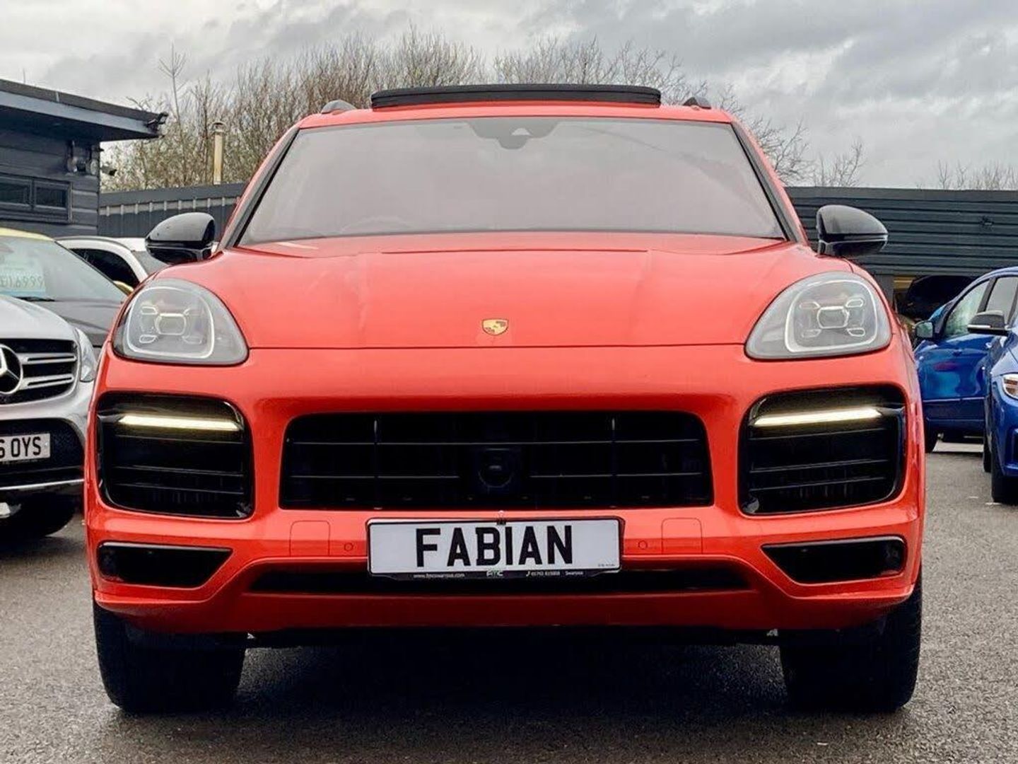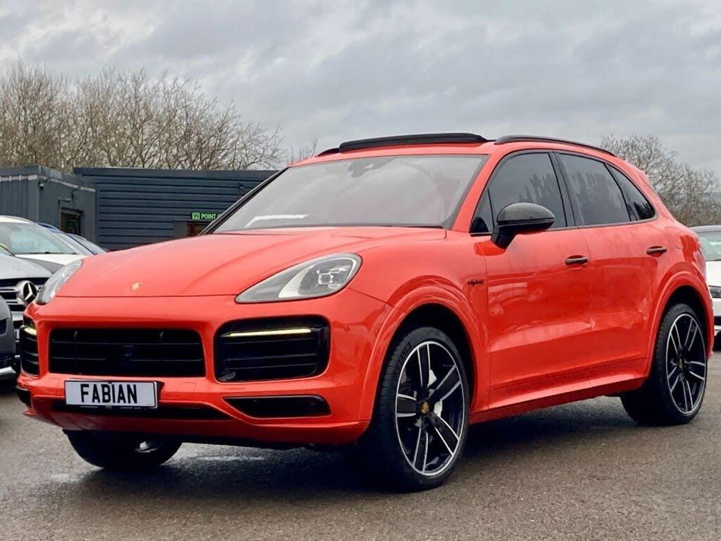 Fixed Panoramic roof system, Sport design front apron, Porsche charging cable (Mode 3), Privacy glass, Power steering plus, 18 way electric front adaptive sports seats with memory pack, Heated steering wheel, Heated front seats, Ambient lighting, Preparation for rear seat entertainment, Adaptive cruise control, Porsche surface coated brake (PSCB), Adaptive air suspension with levelling system and height adjustment with Porsche Active Suspension Management (PASM), High gloss black door handles, LED main headlights in black including Porsche Dynamic Light System (PDLS), LED headlights including Porsche dynamic light system (PDLS), Porsche logo painted in black and model designation painted in high gloss black, Black sports tailpipes, Reversing camera including front and rear park assist, Porsche special metallic - Lava orange, 22" Cayenne Sport Classic Alloy wheels in Jet Black Metallic, Acoustic and optical parking system - front and rear, Automatic tailgate opening, Brake pad wear indicator warning light, Central analogue rev counter with black dial face, power meter and needles in acid green, Driver personalisation for climate, audio and communication, assistance systems and other customisable car systems, External temperature gauge, Instrument cluster with two high-resolution displays, Oil temperature gauge, On board computer, Porsche Communication Management (PCM) including online navigation module, mobile phone preparation, audio interfaces and voice control system, Service interval indicator, Vehicle electrical system recuperation, Warn and Brake Assist, Alarm system with ultrasonic interior surveillance, Electronic transponder immobiliser, safe lock system, Keyless Go, Keyless Start, Porsche vehicle tracking system (VTS), Remote central locking, 3 Pin charging cable, Aluminium cylinder heads and engine block, Charging cable for household socket, Charging cable for industrial socket, Direct fuel injection (DFI), Front and rear aluminium multi link axles, Gasoline particulate filter, Porsche Charging Dock for the Porsche Universal-Charger (AC), Steel spring suspension, Supply cable for domestic electrical socket, Supply cable for industrial electrical outlet in blue (230V, 32A, 3-pin), Turbocharger with twin scroll turbine, VarioCam Plus, Water cooled with thermal management, 4 piston aluminium monobloc fixed caliper brakes at rear and internally vented brake discs, 6-piston aluminium monobloc fixed caliper brakes at front, internally vented brake discs, Acid green brake calipers, Active bonnet, Auto hold function, Brake discs with diameter 360 mm at front, 358 mm at rear, Curtain airbags, Drivers knee airbag, EDC, Electronic parking brake, ESP, Front passenger airbag deactivation function for front seat mounting of child seat, Front side airbags integrated into seat, Full size driver and front passenger airbags, Manual height adjustment belt deflector for driver and front passenger, Multi-Collision braking, Passenger airbag deactivation system, Porsche hill control (PHC), PTM (Porsche Traction Management), Rollover detection for activation of curtain airbags and seat belt pretensioners, Seatbelt warning device for driver and front passenger seats, Side impact protection in doors, Tyre pressure monitoring system, Vehicle stability system, Porsche stability management (PSM) including ABS, ASR, ABD, MSR and trailer stability management, 2x SD card slot, Auxiliary input socket, Connect plus incl Apple CarPlay, 4G/LTE communication module with SIM card reader, wireless internet access and Porsche connect services, DAB Digital radio, Two USB charge ports in rear compartment, Two USB charging and connectivity ports in the front centre console storage compartment, 3 x 12V power sockets, Active carbon fine dust filter, Adjustable headrests (except centre rear), Adjustable rear seats, Charge air cooling, Cloth hook b-pillar, Double sun visors for driver and front passenger, Driver/passenger sunvisors and illuminated vanity mirrors, Elevated centre console with handles, Five seats rear seat system with two comfort outer seats and a central seat, Front and rear bottle holders, Front centre armrest, Height/reach adjustable steering column, Illumination of luggage compartment, Isofix fastening system for child seats on outer rear seats, LED interior light with switchoff delay function, footwell + glove compartment light, ashtray + ignition lock illumination, front + rear reading light, Mobile charger including transport case and basic wall mounting bracket and Cable connection between control unit and vehicle (4.5m), Parking pre-climatisation, Plastic pedal pads, Rear centre armrest with storage compartment, Rear seat split folding design 40:20:40,Fold out centre armrest with integrated cup holder,manual fore/after adjust and backrest angle adjust, Retractable, flexible luggage compartment cover in removable case, Storage compartments - Cooled glove compartment, front centre console, door and map pockets on front seat backrests + side luggage compartment, Two integrated cup holders in front with variable diameter, Active air intake flaps, Brushed stainless steel twin exhaust pipes, Bumper system with high strength cross members and two deformation elements + Two receptacles with screw threads towing lug + onboard tool kit, Driving light assistant including automatic coming home lights, E-Hybrid logo on front wings with acid green border, Electric windows + anti trap protection + one touch open/close drivers side, Electrically adjustable, folding and heated exterior mirrors, aspherical on drivers side including courtesy lights, Extensive underbody protection, Front end with integrated air intakes and airblades for the side air intakes, Front light modules including position lights and direction indicators in LED light guide technology, Front windscreen wipers with two speeds, intermittent wipe and rain sensor, Fully galvanised steel / aluminium hybrid lightweight bodyshell and Aluminium bonnet, ta