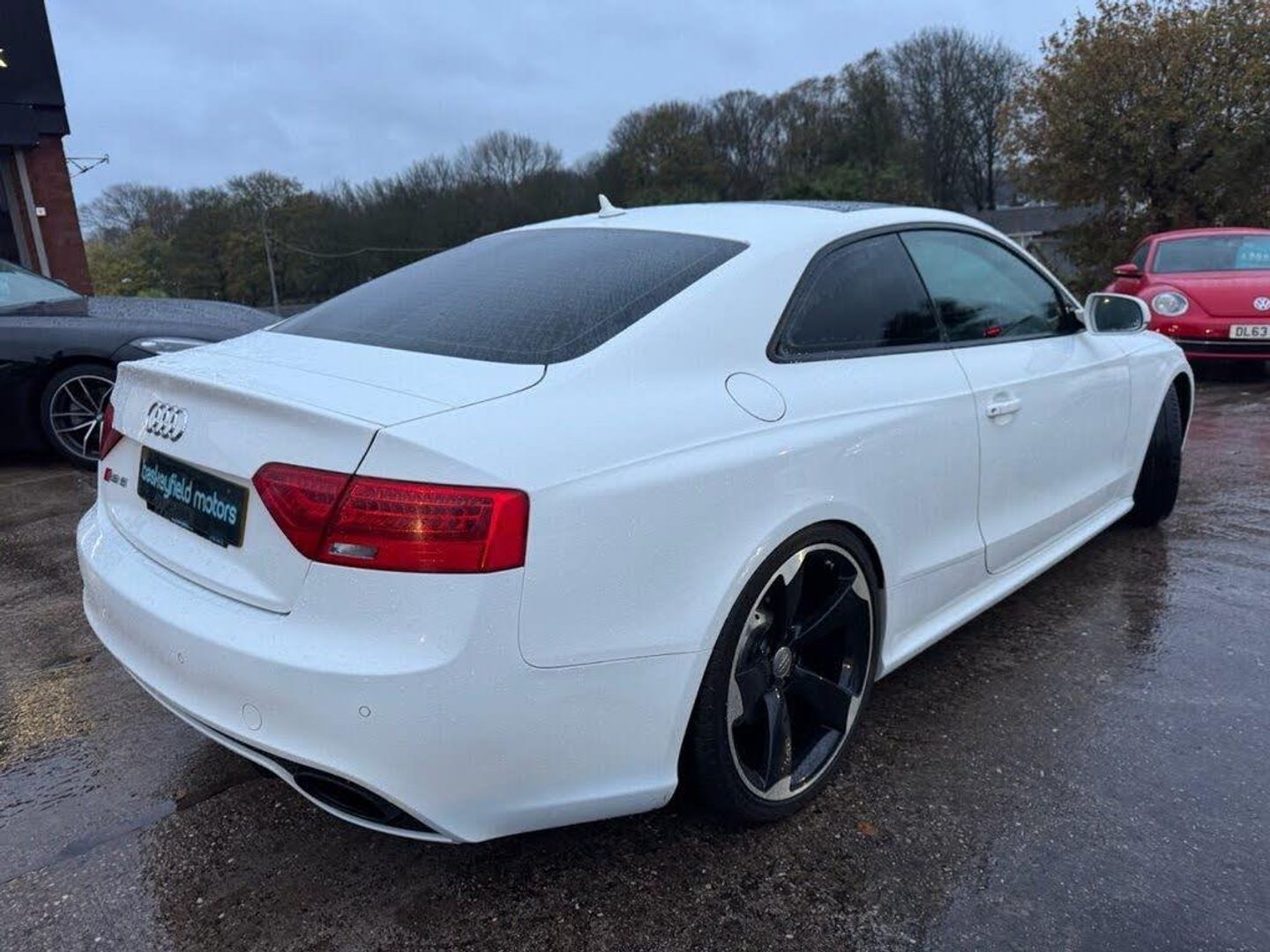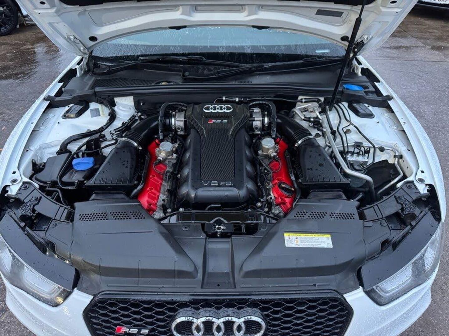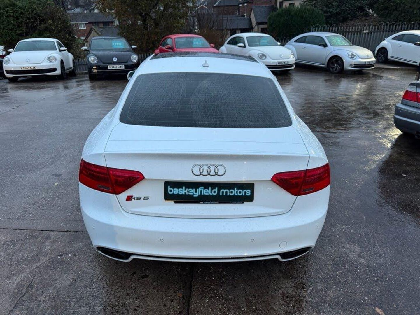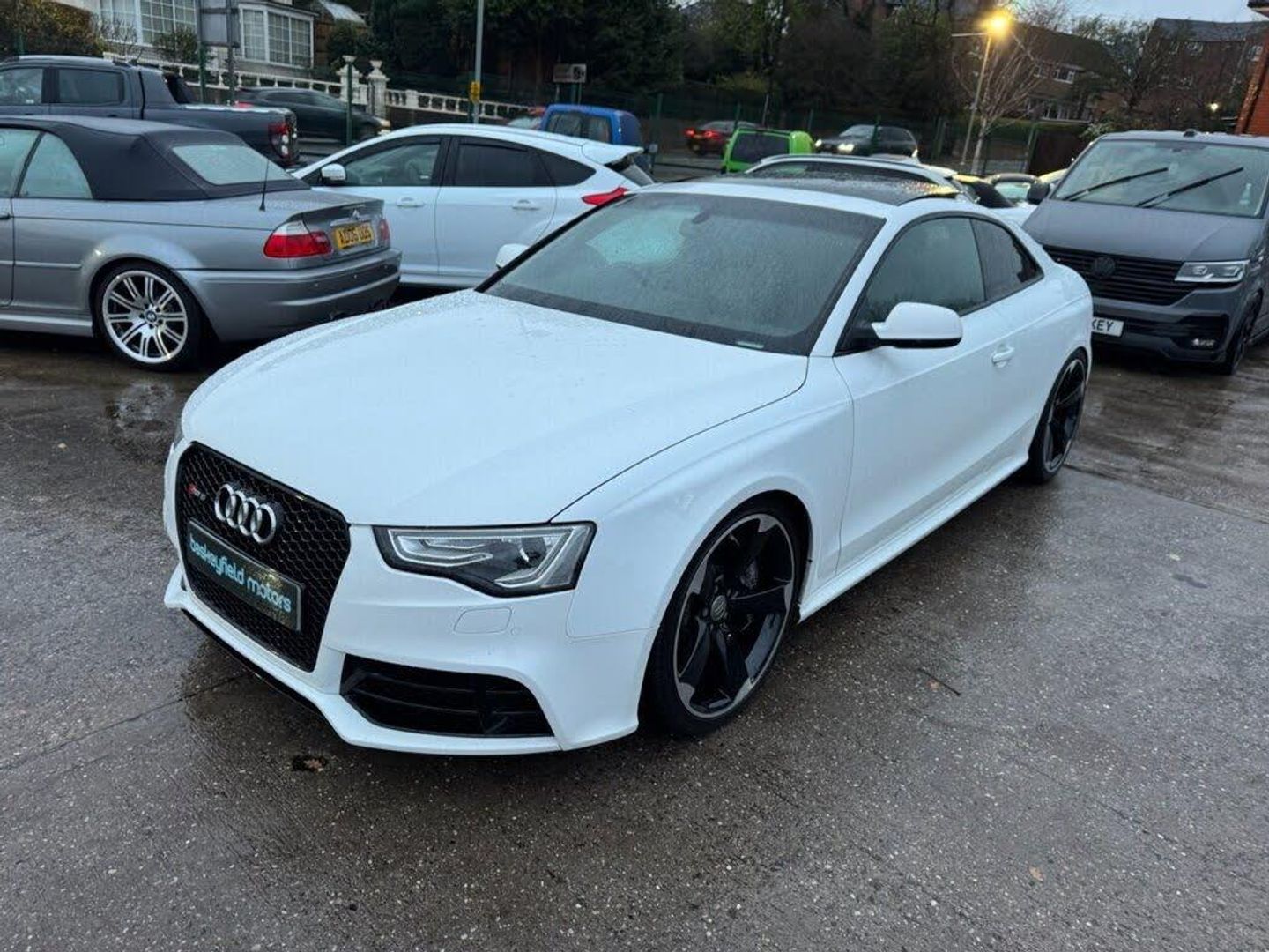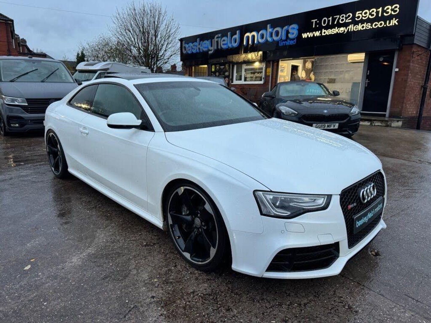 AUDI RS5 V8 COUPE FINISHED IN IBIS WHITE, Complete with quilted leather RS embossed bucket seats with contrast stitching (£1735), 20" 5 arm rotor design alloy wheels in gloss black and silver, Navigation system with DVD, Bluetooth phone connectivity, Climate control, BC racing coil overs (£1000), HMS sports exhaust (£3300), Electric tilt panoramic glass sunroof (£870), Privacy glass (£330), Front and rear parking sensors, Multi function flat bottom steering wheel, Heated seats for driver and passenger (£500), Electronic lumbar and bolster support, Ceramic brakes - front (£5250), Bang and Olufsen sound system, Sports package (£2250), Dynamic Steering (£725), Audi exclusive controls pack (£615), Sound package (£600), Audi exclusive floor mats (£440), Black styling package (£365), Leather armrests (£255), Door mirrors electrically folding (£180), HPI CLEAR, 3 FORMER KEEPERS, This AUDI boasts over £17k worth of optional extras. History 19k, 32k, 46k, 52k, 68k, 73k, 75k, Just been serviced with us at 77k. MOT til October 2026. We offer competitive finance rates, like us on Facebook and Instagram @baskeymotors.