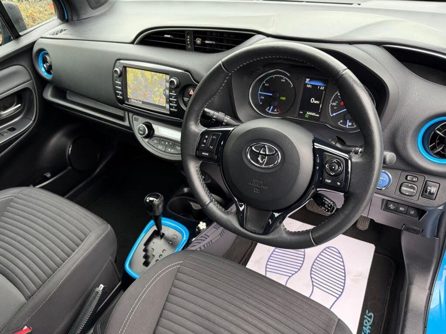 Toyota Yaris 1.5 VVT-h Cyan Bi-Tone E-CVT Euro 6FULL-SERVICE-HISTORY-ULEZ-FREE-LOW-INSURANCESATELLITE-NAVIGATION-REVERSE-CAMERA-AIR-CONCRUISE-CONTROL-ALLOY-WHEELS-LANE-ASSISTAuto-XENON-HEAD-LAMPS-AUTOMATIC-WIPERSPRE-SENSE-USB-PORTS-12v-PORT-Bluetooth Connection, Rear-facing Camera, Isofix Mounting Points, Rain sensor wipers, Touch screen display, Heated Windscreen, Front Fog Lamps, ABS, Air Conditioning, Alloy Wheels, Split Folding Rear Seats, Alarm, Metallic paintThis 2018 Toyota Yaris VVT-h presents an exceptional opportunity with its remarkably low mileage of just 34,000 miles, a clear vehicle history check, and a Euro 6 emission class. Powered by an efficient 1.5L Petrol Hybrid engine, this model offers a compelling blend of performance and economy. Inside, you'll find comfort and convenience with Automatic Air Conditioning featuring Climate Control, and seamless connectivity through Bluetooth. Parking is made easier with a Reversing Camera, and visibility is enhanced by LED Headlamps.The highlights of this Yaris truly set it apart. Its impressive fuel economy of 72 mpg means fewer trips to the petrol station, making it an economical choice for daily driving. Furthermore, its low insurance group rating indicates that running costs will be kept to a minimum. The low CO2 emissions also highlight its environmental consideration. These factors combined demonstrate how this particular Toyota Yaris offers superior value and efficiency compared to many other vehicles in its class.-FSH-SAT-NAV-REV-CAM-CRUISE-CON-Free delivery available ** **FINANCE AVAILABLE** **3 MONTHS FREE WARRANTY** **12 MONTHS MOT**