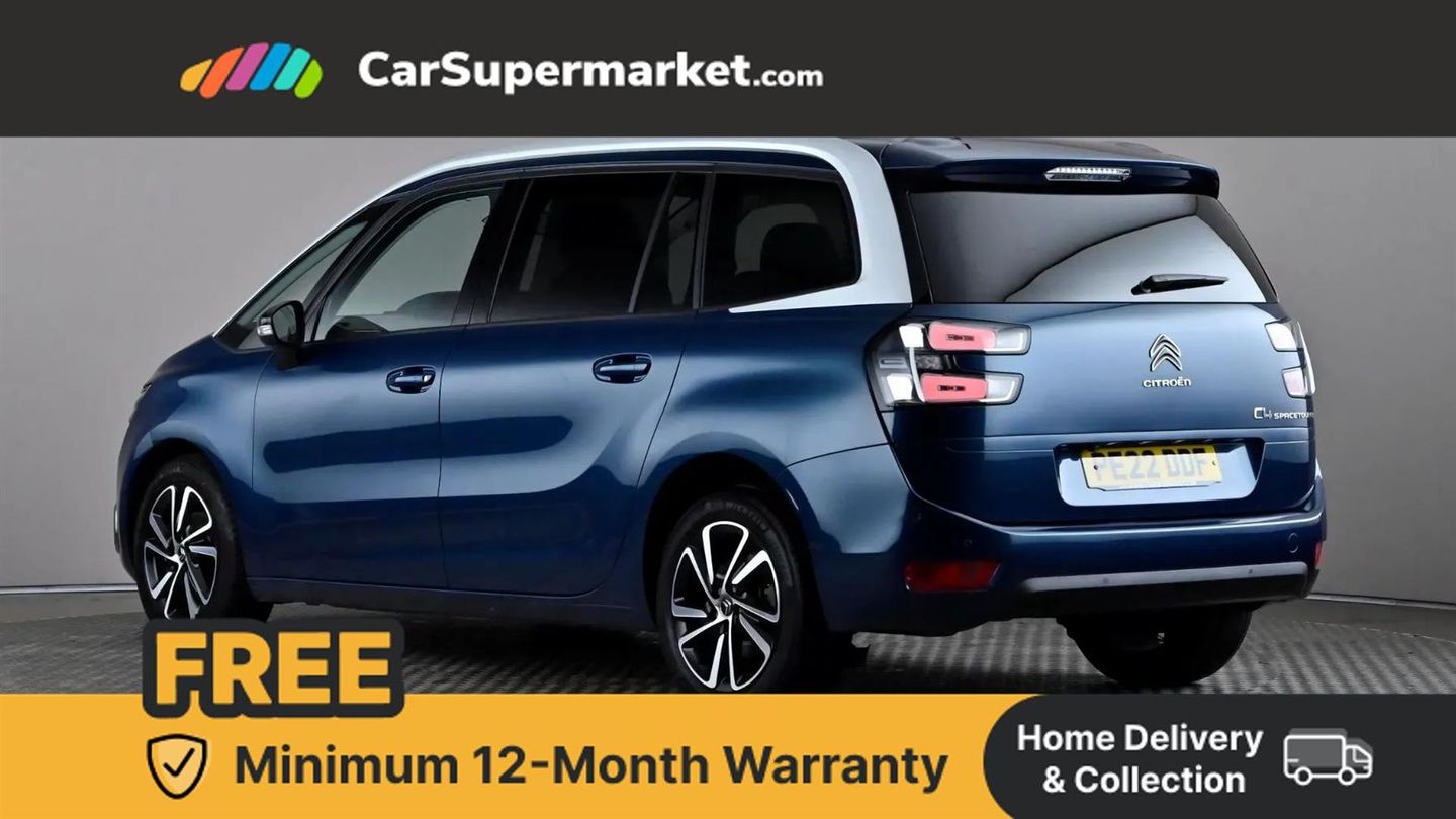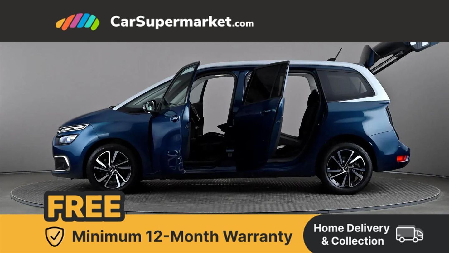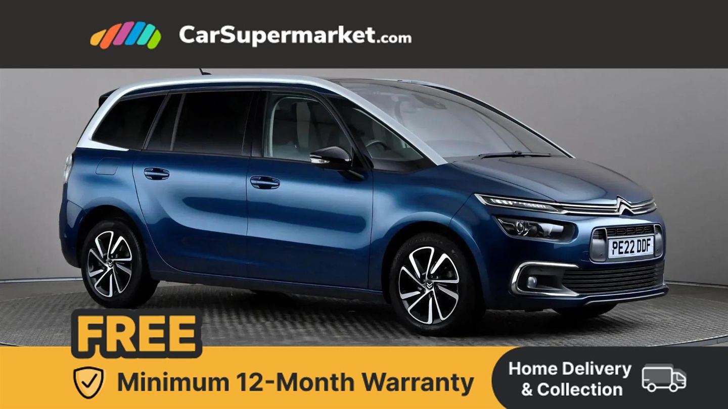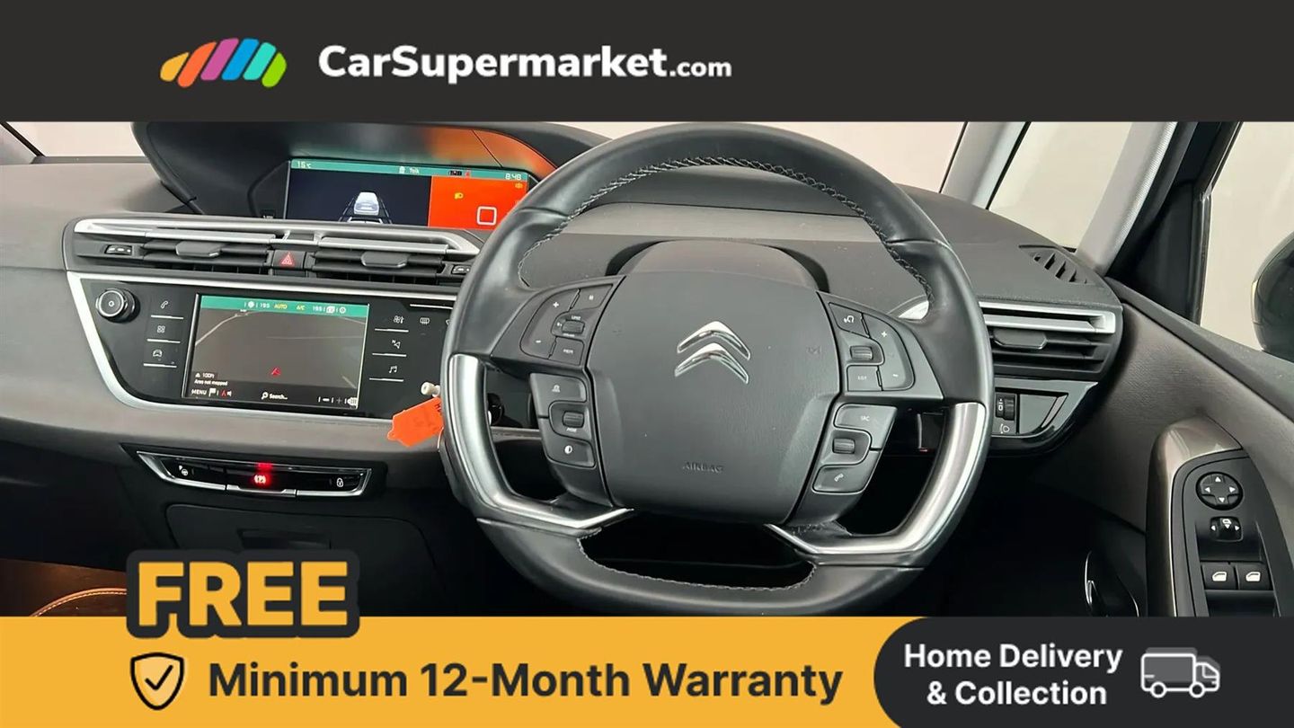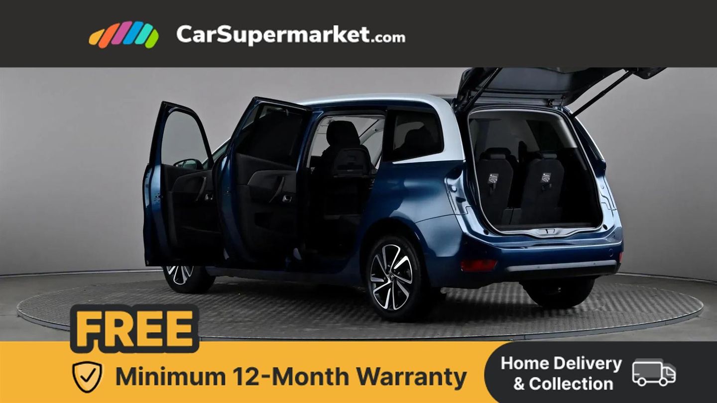 12" Panoramic HD central display,7" Touch drive interface,Active cruise control with speed limiter and braking function,Active lane departure warning system,Audible lights on warning,Citroen connect box emergency assist system,Citroen Connect Nav,Coffee Break Alert,Driver attention alert system,Electric power assisted steering,Find my car feature,Forward collision warning,Front parking sensor,Mirror screen with Apple CarPlay and Android auto,Park assist and blind spot monitoring (with LED alert on door mirrors),Rear parking sensors,Reversing camera,Service indicator,Speed limit recognition and recommendation,Trip computer,Bluetooth handsfree and media streaming with USB socket,DAB Digital radio,RDS radio with 6 speakers and Aux socket,Steering wheel mounted controls,3D effect LED rear lights,Aluminium front sill scuff protectors,Aluminium side profile with integrated roof bars,Auto dimming electrochrome rear view mirror,Automatic activation of hazard warning lights,Automatic lights and windscreen wipers,Black electrically heated, folding and reverse dipping door mirrors with LED courtesy light,Body colour bumpers,Body colour painted door handles,Chrome lower front bumper insert,Dark tinted side windows and rear windscreen,Double xenon headlights,Foot operated motorised tailgate,Front and rear electric windows with anti pinch and one touch operation,Front fog lights,High level LED brake light,Intelligent beam headlights,LED daytime running lights,LED front indicators,Panoramic athermal windscreen with sliding interior sun blinds,Panoramic glass sunroof with dark tinted glass/electric sunblind,Rear fog lights,Rear side wing doors,Rear wiper,Windows total closure mode,12 volt accessory power socket in central storage compartment,8 lashing eyes in boot,Air vents for row 2 rear seat passengers,Automatic digital dual zone air conditioning,Black panel on/off instrument lighting,Boot light,Child observation mirror,Cup holders,Driver and front passenger seats adjustable armrests,Driver/passenger sunvisors and vanity mirrors,Fabric load cover (parcel shelf),Fixed centre storage box with sliding lid,Fold-down aircraft style tray tables (integrated into back of front seats),Front and rear courtesy reading lights,Front door pockets with bottle holders,Front headrests,Height adjustable front passenger seat,Height and reach adjustable leather steering wheel with control zones,Height/tilt adjustable driver's seat,Illuminated and ventilated glove box,Illuminated central storage compartment (housing USB and 12 volt connection),Integrated retractable rear side window sun blinds,Ondulice cloth/leather upholstery with hype grey ambience,Rear underfloor storage [row 2],Seats with individual sliding fore/after adjustment in row 2,Single front passenger seat,Storage under driver's seat,Three individual full size seats with adjustable recline angle and retractable headrests in row 2,Three ISOFIX mounting points with top tether on all row 2 rear seats,Two individual seats with retractable headrests in row 3,ABS with Electronic brakeforce distribution and Emergency braking assistance,Active safety brake,Automatic electronic parking brake,Driver, front passenger, front lateral and curtain airbags,Electronic Stability Control (ESC) with intelligent traction control (auto re-activation 30mph+),Five 3 point inertia reel seat belts,Front inertia reel seatbelt with pre-tensioners and force limiters,Hill start assist function,Manual child lock in rear doors,Mono-tone horn,Passenger airbag deactivate switch,Tyre under inflation indicator,Unfastened seatbelt visual warning system on all seats + audible warning for driver/front passenger (front passenger presence detection),Immobiliser,Keyless entry and start,Perimetric and volumetric anti theft alarm,Remote central locking + deadlocks,Aluminium dashboard trim and air vent surrounds,17" Shamal diamond cut alloy wheels