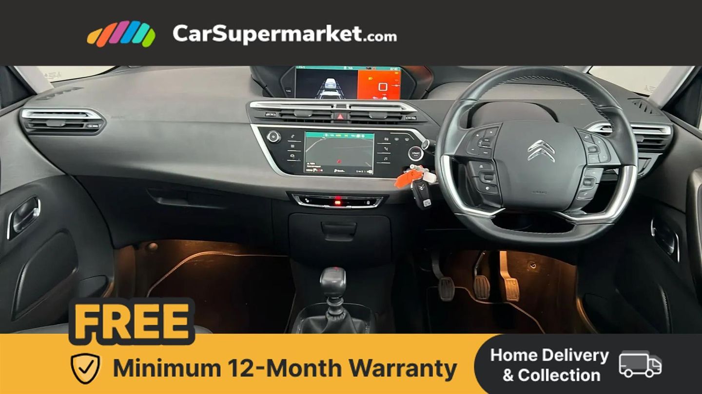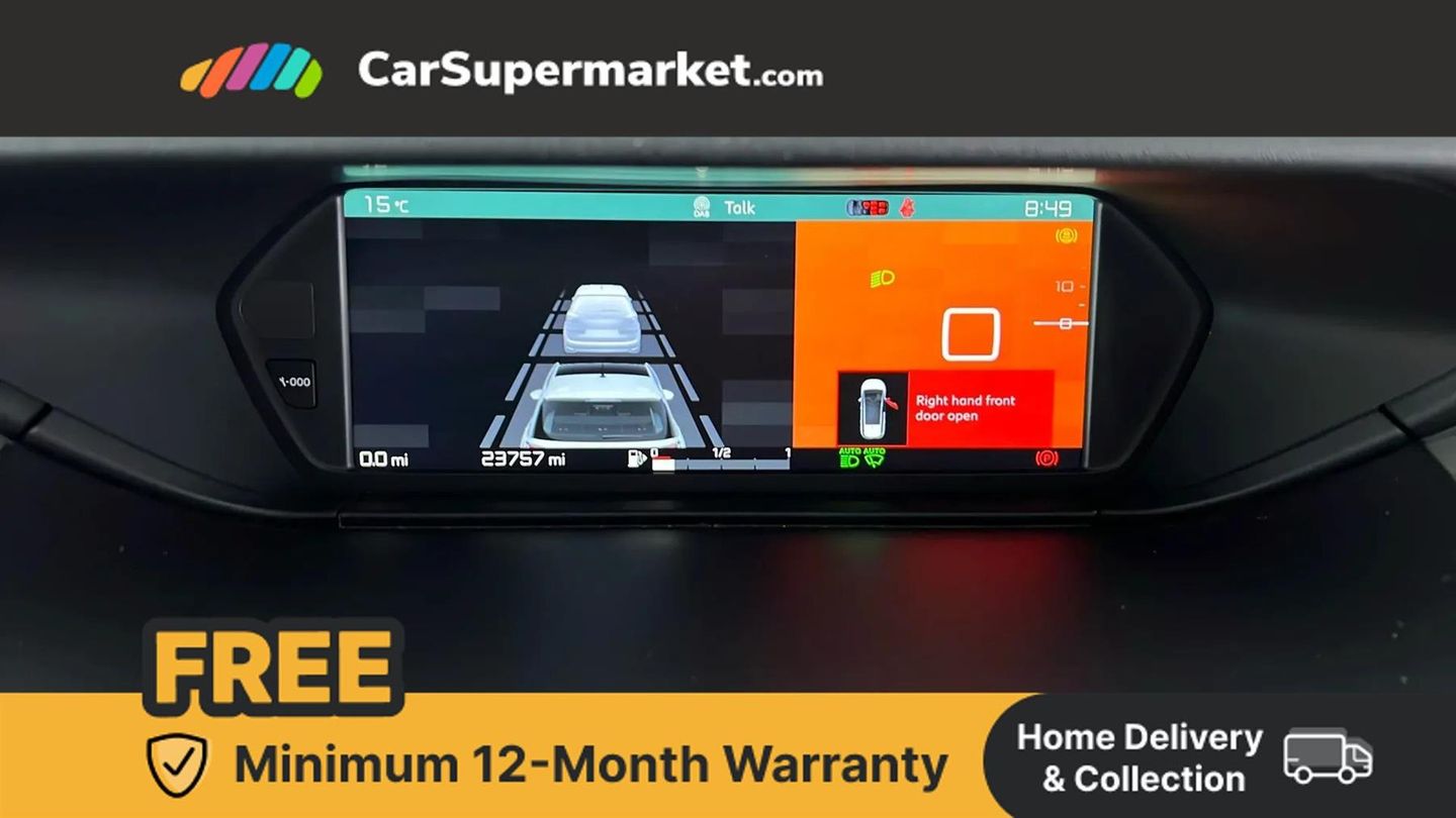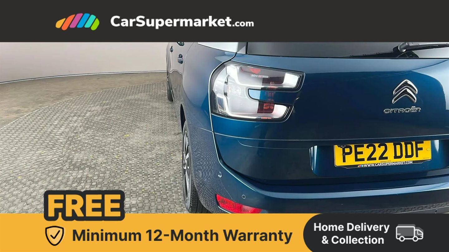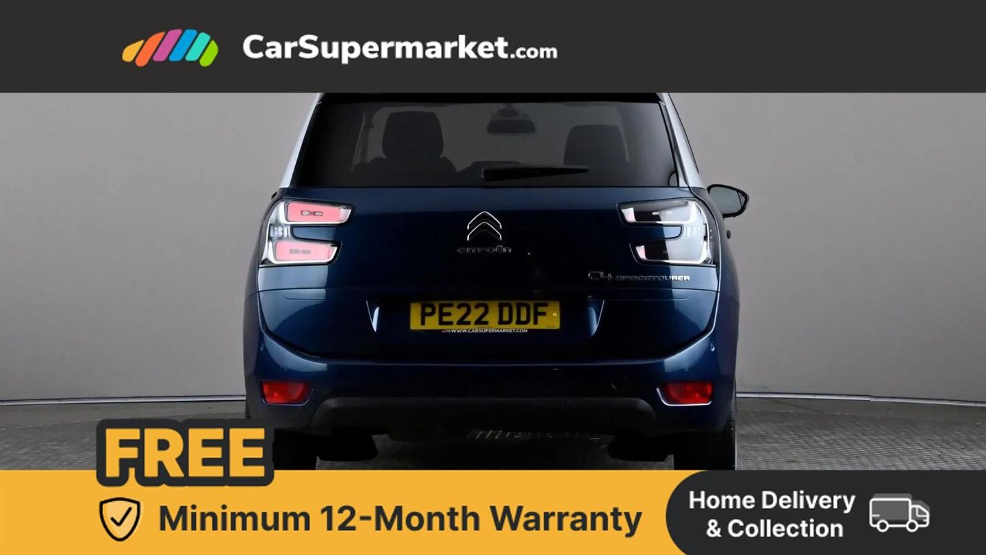 12" Panoramic HD central display,7" Touch drive interface,Active cruise control with speed limiter and braking function,Active lane departure warning system,Audible lights on warning,Citroen connect box emergency assist system,Citroen Connect Nav,Coffee Break Alert,Driver attention alert system,Electric power assisted steering,Find my car feature,Forward collision warning,Front parking sensor,Mirror screen with Apple CarPlay and Android auto,Park assist and blind spot monitoring (with LED alert on door mirrors),Rear parking sensors,Reversing camera,Service indicator,Speed limit recognition and recommendation,Trip computer,Bluetooth handsfree and media streaming with USB socket,DAB Digital radio,RDS radio with 6 speakers and Aux socket,Steering wheel mounted controls,3D effect LED rear lights,Aluminium front sill scuff protectors,Aluminium side profile with integrated roof bars,Auto dimming electrochrome rear view mirror,Automatic activation of hazard warning lights,Automatic lights and windscreen wipers,Black electrically heated, folding and reverse dipping door mirrors with LED courtesy light,Body colour bumpers,Body colour painted door handles,Chrome lower front bumper insert,Dark tinted side windows and rear windscreen,Double xenon headlights,Foot operated motorised tailgate,Front and rear electric windows with anti pinch and one touch operation,Front fog lights,High level LED brake light,Intelligent beam headlights,LED daytime running lights,LED front indicators,Panoramic athermal windscreen with sliding interior sun blinds,Panoramic glass sunroof with dark tinted glass/electric sunblind,Rear fog lights,Rear side wing doors,Rear wiper,Windows total closure mode,12 volt accessory power socket in central storage compartment,8 lashing eyes in boot,Air vents for row 2 rear seat passengers,Automatic digital dual zone air conditioning,Black panel on/off instrument lighting,Boot light,Child observation mirror,Cup holders,Driver and front passenger seats adjustable armrests,Driver/passenger sunvisors and vanity mirrors,Fabric load cover (parcel shelf),Fixed centre storage box with sliding lid,Fold-down aircraft style tray tables (integrated into back of front seats),Front and rear courtesy reading lights,Front door pockets with bottle holders,Front headrests,Height adjustable front passenger seat,Height and reach adjustable leather steering wheel with control zones,Height/tilt adjustable driver's seat,Illuminated and ventilated glove box,Illuminated central storage compartment (housing USB and 12 volt connection),Integrated retractable rear side window sun blinds,Ondulice cloth/leather upholstery with hype grey ambience,Rear underfloor storage [row 2],Seats with individual sliding fore/after adjustment in row 2,Single front passenger seat,Storage under driver's seat,Three individual full size seats with adjustable recline angle and retractable headrests in row 2,Three ISOFIX mounting points with top tether on all row 2 rear seats,Two individual seats with retractable headrests in row 3,ABS with Electronic brakeforce distribution and Emergency braking assistance,Active safety brake,Automatic electronic parking brake,Driver, front passenger, front lateral and curtain airbags,Electronic Stability Control (ESC) with intelligent traction control (auto re-activation 30mph+),Five 3 point inertia reel seat belts,Front inertia reel seatbelt with pre-tensioners and force limiters,Hill start assist function,Manual child lock in rear doors,Mono-tone horn,Passenger airbag deactivate switch,Tyre under inflation indicator,Unfastened seatbelt visual warning system on all seats + audible warning for driver/front passenger (front passenger presence detection),Immobiliser,Keyless entry and start,Perimetric and volumetric anti theft alarm,Remote central locking + deadlocks,Aluminium dashboard trim and air vent surrounds,17" Shamal diamond cut alloy wheels