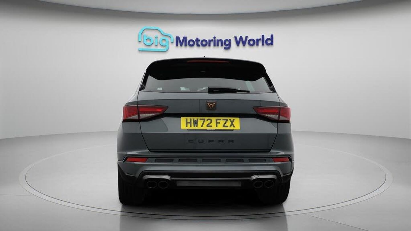 Digital Cockpit,Heated Seats-Our CUPRA Ateca is finished in Green. Specification includes a range of fantastic features including Digital Cockpit, Heated Seats, Rear View Camera, Heated Steering Wheel, Parking Sensors, Ambient Lighting, 2 Zone Climate, Climate Control, Lumbar Support, Rear Spoiler Specification information is supplied by CAPHPI and may vary to the actual car. This data does not form any part of a buying contact. Please check specification prior to purchase in-store. The MOT is valid until October 2026, visit bigmotoringworld.co.uk for more photos, a 360 tour, service history and a free HPI report.Were BIG on peace of mind and this Green CUPRA Ateca has completed our comprehensive 200 point inspection and passed all checks. Its ready for you to drive away with immediate collection in-store. We include a 90-day warranty as standard plus an option to extend for up to 3 years.Reserve this car exclusively for you, safely and securely at bigmotoringworld.co.uk, with a fully refundable £99 deposit. Test drive before you buy, with no commitment, no hassle and a completely haggle free experience. Still searching and want to see thousands more cars? We are BIG on choice with over 8000 cars to choose from.Visit our award winning web site bigmotoringworld.co.uk.Were Big Motoring World and were BIG on what matters to you.