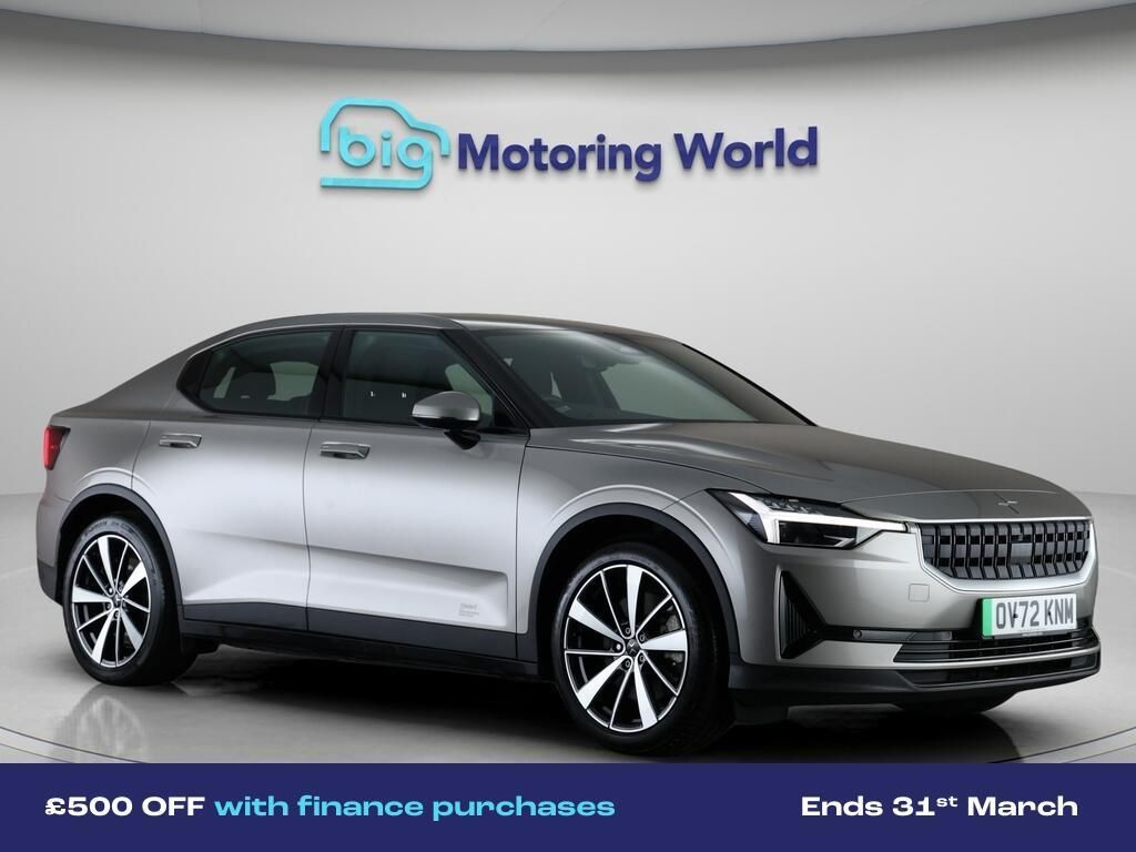 £500 towards your finance depo-Our Polestar Polestar 2 is finished in Grey. Specification includes a range of fantastic features including £500 towards your finance deposit, Dynamic Chassis Control, All Wheel Drive, Apple CarPlay, Electric Seats, Android Auto, Satellite Navigation, Heated Seats, Rear View Camera, Memory Seats Specification information is supplied by CAPHPI and may vary to the actual car. This data does not form any part of a buying contact. Please check specification prior to purchase in-store. The MOT is valid until October 2026, visit bigmotoringworld.co.uk for more photos, a 360 tour, service history and a free HPI report.Were BIG on peace of mind and this Grey Polestar Polestar 2 has completed our comprehensive 200 point inspection and passed all checks. Its ready for you to drive away with immediate collection in-store. We include a 90-day warranty as standard plus an option to extend for up to 3 years.Reserve this car exclusively for you, safely and securely at bigmotoringworld.co.uk, with a fully refundable £99 deposit. Test drive before you buy, with no commitment, no hassle and a completely haggle free experience. Still searching and want to see thousands more cars? We are BIG on choice with over 8000 cars to choose from.Visit our award winning web site bigmotoringworld.co.uk.Were Big Motoring World and were BIG on what matters to you.
