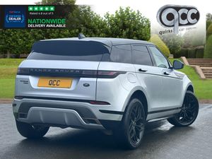 NATIONWIDE DELIVERY AVAILABLE! THIS LAND ROVER RANGE ROVER EVOQUE 2.0 D180 R-DYNAMIC SE FINISHED IN INDUS SILVER WITH BLACK LEATHER BENEFITS FROM THE FOLLOWING SPECIFICATION, PANORAMIC GLASS ROOF WITH ELECTRIC BLIND, 20" ALLOYS, TOUCH SCREEN WITH SAT NAV, REAR VIEW REVERSE CAMERA, DIGITAL DASH, M/F/S/WHEEL WITH CRUISE CONTROL, PADDLE SHIFT AND VOICE CONTROL, 14 WAY ELECTRIC HEATED MEMORY SEATS WITH LUMBAR SUPPORT, ELECTRIC FOLDING EXTERIOR MIRRORS, FRONT AND REAR PARK DISTANCEC CONTROL, HEATED FRONT WIND SCREEN, DUAL ZONE AIR CON CLIMATE CONTROL, AUTOMATICALLY DIMMING REAR VIEW MIRROR, AUTOMATIC HEAD LIGHTS, BLUETOOTH PHONE PREP, APPLE CARPLAY, ANDROID AUTO, POWER TAIL GATE/BOOT LID, PRIVACY GLASS, ISOFIX POINTS, CENTRE ARM REST, PAN ROOF, QUIRKS CAR COMPANY ARE VERY PROUD WINNERS OF RUNNER UP FOR AUTOTRADER RETAILER OF THE YEAR 2021, WINNERS OF AUTOTRADER HIGHLY RATED FOR OUR CUSTOMER SERVICE 2021/20, AND WINNERS OF CAR GURUS TOP RATED DEALER 2021/20/19. WE USE THIRD PARTY SOURCES TO OBTAIN STANDARD AND OPTIONAL FITTED FEATURES AND SPECIFICATIONS. WE CANNOT BE HELD LIABLE FOR ITS ACCURACY SO PLEASE VERIFY THESE DETAILS WHEN VIEWING THE VEHICLE PRIOR TO PURCHASE. YOU MUST PHYSICALLY CHECK THE SPECIFICATION OF THE VEHICLE ON SITE PRIOR TO PURCHASE.