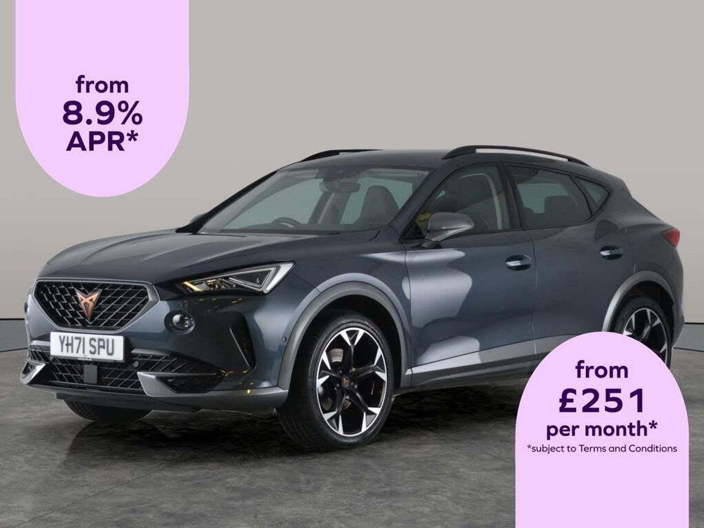 Experience style and substance with this grey Cupra Formentor SUV. Highlights include plush leather and heated seats, driver memory for personalised comfort, and smart keyless entry. Enjoy effortless journeys with adaptive cruise control and lane departure warning, while parking is a breeze thanks to park assist, a reversing camera, and bright LED headlights. Stay connected with Apple CarPlay, built-in WiFi, Bluetooth audio streaming, and a clear touchscreen sat nav for every adventure. 2 services recorded, last serviced on 06/11/2025 at 30,397 miles. Visit our website for service history, online valuation, full vehicle specification plus multiple images. This vehicle is VAT qualifying. Any feature/option specified here is from 3rd party data. We cannot guarantee the accuracy of any specification supplied by a 3rd party. We recommend that you physically check the specification of the vehicle on site prior to purchase. This information does not form part of the buying contract. Terms & Conditions apply. We have over 2,000 cars available from our 10 national branches, check our website to see all our stock. Our Trustpilot rating is 4.4/5 with over 9,000 reviews.