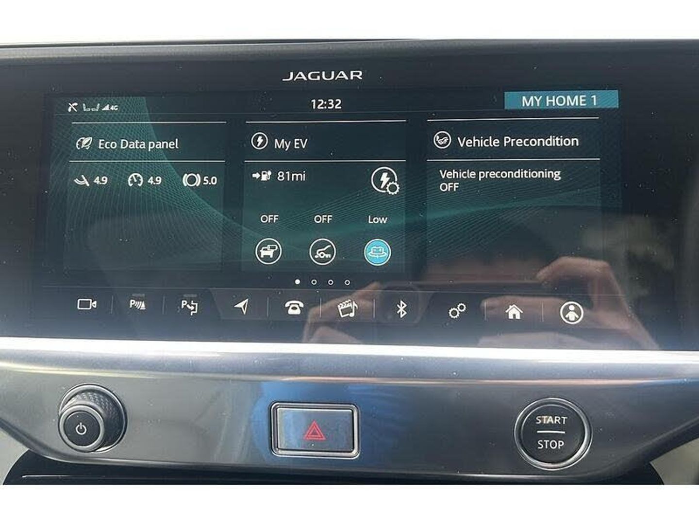 10" touch screen pro, 360 Parking aid, Apple car play/Android Auto, Bluetooth connectivity, Brake pad wear indicator, Clear exit monitor, Driver condition monitor, InControl remote, InControl Touch navigation pro, Interactive Driver display instrument cluster, JaguarDrive control, Lane keep assist, Low power mode, Outside temperature gauge, Park assist - Parallel, perpendicular and parking exit, Pro services and wifi hotspot, Push button starter, Range for route, Rear traffic monitor, Smart settings, Speed proportional electronic power assisted steering (EPAS), Start up sequence with movement in dials and lighting, Touch pro duo system, Traffic sign recognition with adaptive speed limiter, Trip computer, Voice control system, 7kW single phase onboard charger, Active sound design, All Wheel Drive (AWD), Home charging cable, Open differential with torque vectoring by braking, Public charging cable, Timed charging, 6x USB power sockets, AM/FM DVD MP3 radio, Digital Audio Broadcast radio-DAB, Dynamic volume control, InControl apps, 3 flash lane change indicators, Acoustic laminated windscreen, Active vanes, Auto dimming interior rear view mirror, Automatic headlight levelling, Body colour bumpers, Electric windows with one touch open/close and anti trap, EV400 badge, Flush exterior door handles, Follow me home headlights, Headlight power wash, Heated front windscreen, Heated rear window with timer, Heated washer jets, Infra-red reflective glass windscreen, Jaguar script and leaper, LED tail lights, Power fold, auto dimming, heated door mirrors with memory and approach lights, Rain sensing windscreen wipers, Rear bike carrier preparation kit, Rear fog lights, S rear bumper with gloss black valance, Screw-in rear recovery eye, SE badge, Solar attenuating rear windscreen, Solar attenuating windscreen, Tailgate spoiler, Variable front intermittent wipers, 12V power socket in loadspace, 2nd row air vents, 3 rear headrests, 60/40 split folding rear seat, Air quality sensor, Centre armrest console, Ebony Carpet, Electric cabin pre-conditioning, Front and rear cup holders, Front storage compartment, Hooks in loadspace, Interior front door handles with separate locking switches, LED lighting in overhead console, LED rear reading lights, Luggage tie downs in loadspace, Multifunction steering wheel, Overhead stowage for sunglasses, Rear centre armrest, Storage under rear seats, Sunvisors with illuminated vanity mirrors, 3x3 point rear seatbelts, 6 airbags - Driver/front passenger airbags, front and rear curtain airbags and front side airbags, ABS, All surface progress control (ASPC), Anti-whiplash front headrests, DSC - Dynamic Stability Control, Electric parking brake (EPB), Emergency brake assist, Enhanced brake regeneration, Front and rear seatbelt reminder, Front passenger seat occupancy sensor, Hill launch assist, Low traction launch, Power operated child locks, Tyre pressure monitoring system (TPMS), Global lock and unlock switch on driver door, Intrusion sensor and alarm, Keyless entry, Lock only switch on front passenger door, Locking wheel nuts