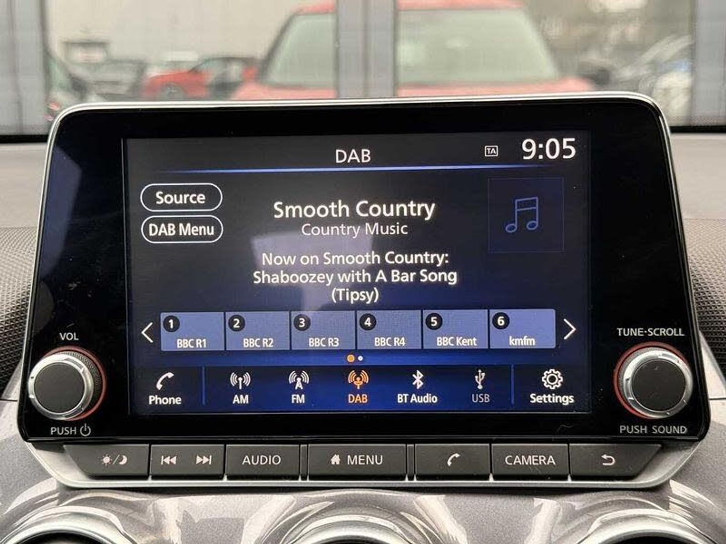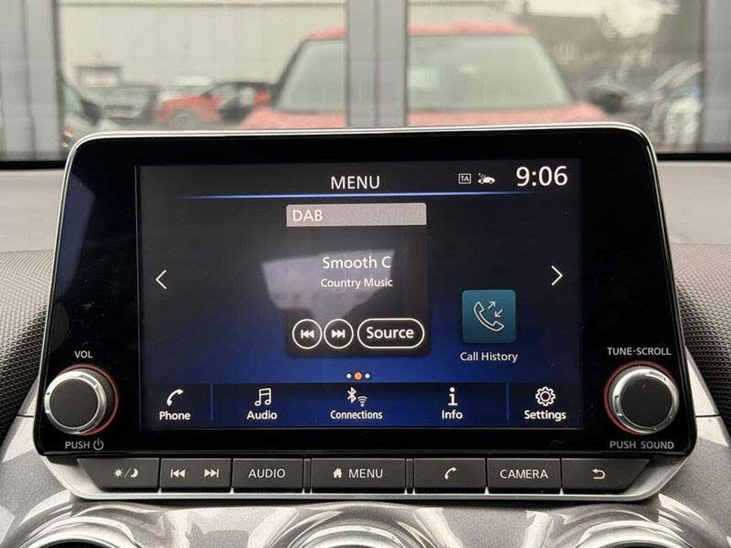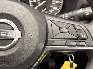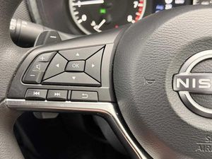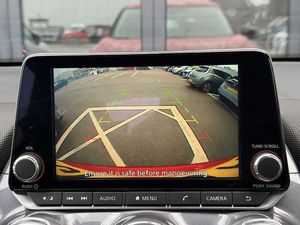 Exterior Features, Solid paint, Interior Features, Manual air conditioning, Paint - Solid, Solid - Flame red, Trim - Cloth, Cloth - Black, Wheels, Tyre puncture repair kit, Exterior Features, Front and rear electric window with one touch driver window, Rear wiper, Body colour bumpers, Body colour door handles, Rear side wing doors, Automatic hazard signal with emergency stop signal, Follow me home headlights, High beam assist, LED daytime running lights, LED headlamps, LED rear fog lamp, LED rear lamps, Three blink turn signal, Safety, ABS with EBD and brake assist, Electronic Stability Programme (ESP), Hill start assist, Intelligent emergency braking with pedestrian and cyclist recognition, Rear drum brakes, Traction control, VDC Dynamic Vehicle Control, Cruise control + speed limiter, Intelligent lane intervention, Lane departure warning system, Power Steering, Rear view camera, Traffic sign recognition, Electrically adjustable door mirrors with integrated indicators, Manual dimming interior rear view mirror, Pearl black door mirrors, Active ride control, Active Trace Control, Driver and passenger airbags, Driver and passenger side airbags, Front and rear curtain airbags, Height adjustable seatbelts, Rear door child safety locks, Seatbelt reminder for driver/front passenger and rear seats, Single tone horn, Three 3 point rear seatbelts, Tyre pressure monitoring system, Audio / Communications, Voice recognition, 4 speakers, Bluetooth system, USB, Aux-in and 12V socket, DAB Digital radio, Driver Convenience, Idle start/stop system, Miscellaneous, 4.2 inch full colour TFT screen combimeter, Apple CarPlay and Google Android auto, Emergency and breakdown call, Nissan connect 8 inch touch screen entertainment system, Nissan connect services and Wifi connection, Outside temperature sensor, Trip computer, Gasoline particulate filter, Interior Features, Cloth upholstery, Front door pockets with bottle holders, Internal chrome door handles, Multifunction steering wheel, Rear door bottle holders, Steering wheel mounted gearshift paddles, Telescopic steering wheel adjustment, Two cupholders in front centre console, Front and rear cabin lights, Luggage space lighting, Welcome light and console tray ambient lighting, Driver/passenger sunvisors and vanity mirrors, Trim, 3 height adjustable rear headrests, 3 seat bench in 2nd row, 60/40 split folding rear seat, Driver and passenger sliding and reclining seats, Front head restraints, Height adjustable driver's seat, Monoform sporty seats, Single front passenger seat, Two rear isofix child seat anchorage points with top tether, Security, Alarm, Immobiliser, Remote central locking, Wheels, 17 inch Sakura Flex wheels