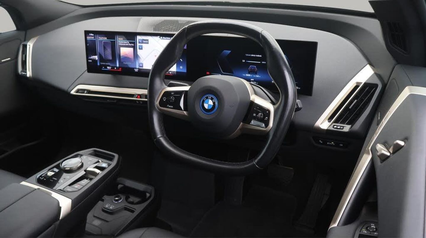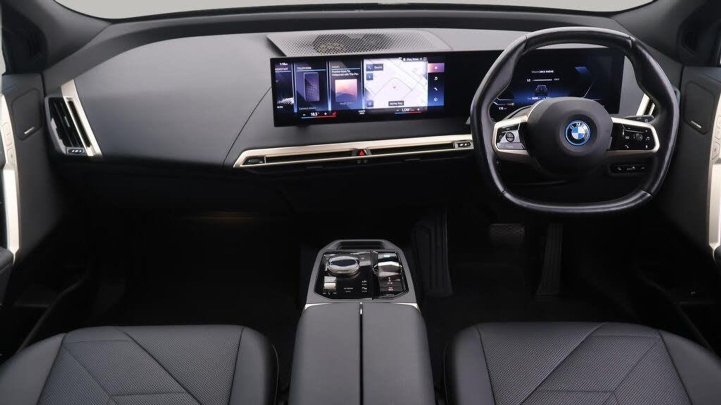All Wheel Drive,Head up Displa-Our BMW iX comes with optional extras worth £795. Specification includes a range of fantastic features including All Wheel Drive, Head up Display, Leather Seats, Apple CarPlay, Electric Seats, Harman Kardon Speakers, Connected Package Professional, M Sport Bodykit, Android Auto, Satellite Navigation Specification information is supplied by CAPHPI and may vary to the actual car. This data does not form any part of a buying contact. Please check specification prior to purchase in-store. The MOT is valid until September 2026, visit bigmotoringworld.co.uk for more photos, a 360 tour, service history and a free HPI report.Were BIG on peace of mind and this Black BMW iX has completed our comprehensive 200 point inspection and passed all checks. Its ready for you to drive away with immediate collection in-store. We include a 90-day warranty as standard plus an option to extend for up to 3 years.Reserve this car exclusively for you, safely and securely at bigmotoringworld.co.uk, with a fully refundable £99 deposit. Test drive before you buy, with no commitment, no hassle and a completely haggle free experience. Still searching and want to see thousands more cars? We are BIG on choice with over 8000 cars to choose from.Visit our award winning web site bigmotoringworld.co.uk.Were Big Motoring World and were BIG on what matters to you.