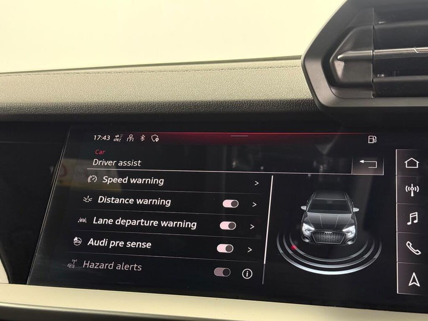 1 x USB-C and 1 x USB-A Connection with Charge and Data Functions, 12v Socket and Storage Compartment in Front Centre Console, 18in Alloy Wheels - 5-Arm Dynamic Design, 6 Passive Loudspeakers, Airbags - Driver and Front Passenger with Passenger Airbag Deactivation, Aluminium Interior Elements, Aluminium Window Trims, Anti Theft Locking Wheel Bolts, Anti-Theft Alarm, Audi Connect Emergency Call and Service, Audi Connect Infotainment Services - 36 Month Trial, Audi Drive Select, Audi Pre-Sense Front with Pedestrian Recognition, Audi Smartphone Interface, Audi Virtual Cockpit, Auto-Dimming and Frameless Rear View Mirror, Automatic Start-Stop System with Recuperation, Bluetooth Interface, Body Coloured Door Mirrors, Collision Avoidance Assistant, Cruise Control, DAB Digital Radio, Door Mirrors - Electrically Adjustable - Heated and Folding - Automatically Dimming, Door Sills with Aluminium Inserts, Dual-Zone Electronic Climate Control, ESC - Electronic Stabilisation Control inc ABS - ASR and EDL, Electric Windows - Front, Electromechanical Power Steering, Electronically Operated Child Locks, First Aid Kit and Warning Triangle and 2 Safety Vests, Floor Mats, Front Side Airbags with Head Airbags and Interaction Airbag, Front Sports Seats, Front and Rear Centre Armrest in Leather, Headlining - Black Cloth, Hill Hold Assist, I-Size and Top Tether Child Seat Mounting for the Outer Rear Seats, Inlays - Dark Spectrum Aluminium, LED Headlights with LED Rear Lights and Dynamic Rear Indicators, LED Interior Light Package, Lane Departure Warning, Light and Rain Sensor, Luggage Compartment Floor Covering, MMI Navigation Plus with High Resolution 10.1in Touchscreen Colour Display, Pedals and Front Footrest - Stainless Steel, Privacy Glass, Rear Parking Sensors, Rear Window - Rear Door Windows and Rear Side Windows in Clear Glass, Remote Central Locking, S Line Bumpers, S Line Styling, S Roof Spoiler, Seat Belt Monitoring, Split Folding Rear Seat Bench, Sport Suspension, Steering Wheel - 3-Spoke Leather-Multi-Function, Tool Kit, Tyre Pressure Loss Indicator, Tyre Repair Kit, Voice Control System with Natural Language Interaction, Windscreen with Acoustic Glazing