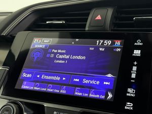 17in Alloy Wheels, 2x USB Jack and HDMI Jack, ABS - Anti Lock Braking System, Accessory Socket - Front, Accessory Socket - Rear, Adaptive Cruise Control, Airbag - Front Side, Airbag - Passenger SRS with Cut Off Switch, Alloy Pedals, Ambient Lighting, Auto Dimming Rear View Mirror, Black Grille, Bluetooth Hands Free Telephone - HFT, Brake Assist, Centre Console with Sliding Armrest and Storage Compartment, Chrome Window Garnish Surround, Climate Control Auto Air Conditioning, Collision Mitigation Braking System - CMBS, Courtesy Light - Front and Rear, Daytime Running Lights - LED, Deflate Warning System - DWS, Digital Audio Broadcast - DAB, Door Handles - Body Coloured, Door Mirrors - Body Coloured with Integrated Indicator, Door Mirrors - Electric-Retractable, Driver Information Interface with Colour Display, Driver Seat Manual Height Adjustment, Driver Seat Power Lumbar Adjustment, Driver i-SRS Airbag, EBD - Electronic Brakeforce Distribution, ECON Mode, Electric Power Steering with Variable Ratio, Electric Windows - DR-AS One Touch Up-Down, Electric Windows - Front and Rear, Electric Windows - Remote Key Fob, Electronic Parking Brake with Brake Hold, Emergency Stop Signal, Forward Collision Warning - FCW, Front Fog Lights - Halogen, Front Map Light, Front Seat Belts with 2 Stage Emergency Locking Retractor - ELR, Fuel Filler - Capless, Glove Box Light, Halogen Headlights, Headlights - Auto On-Off Timer - Coming-Leaving Home Function, Headlights - Dusk Sensor, High Beam Support System - HSS, High Mount Brake Light, Hill Start Assist - HSA, Honda CONNECT with GARMIN Navigation, ISOFIX Points - Outer Rear Seats, Immobiliser System, Intelligent Speed Limiter, Lane Departure Warning - LDW, Lane Keep Assist System, Leather Shift Knob, Multiplex Meter Blue Illumination, Parking Sensors - Front and Rear, Passenger Seat Back Pocket, Privacy Glass, Rain Sensing Windscreen Wipers, Rear One Touch Up-Down Power Windows, Rear Parking Camera, Rear Seat Armrest with Cupholder, Rear Seat Belts with Emergency Locking Retractor - ELR, Rear Wiper - Intermittent, Remote Central Locking with 2 Jack Knife Keys, Remote Retractable Door Mirrors, Road Departure Mitigation, Security Alarm System, Selectable Door Unlock, Shark Fin Antenna, Shift Indicator Light, Side Curtain Airbags, Speakers x8, Steering Wheel - Leather, Steering Wheel - Remote Audio Controls, Steering Wheel - Tilt and Telescopic Adjustment, Sunvisor Vanity Mirrors with Illumination, Super Locking, Tonneau Cover, Traffic Sign Recognition System, Trunk Cargo Hook x4, Trunk Light, Tyre Repair Kit, Ultrasonic Sensor, VSA - Vehicle Stability Assist, Whiplash Lessening Front Headrests