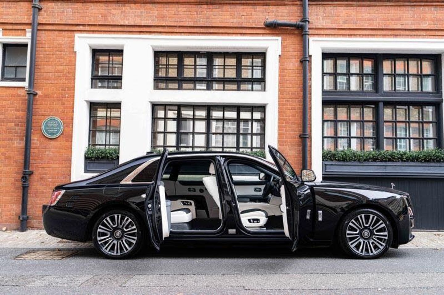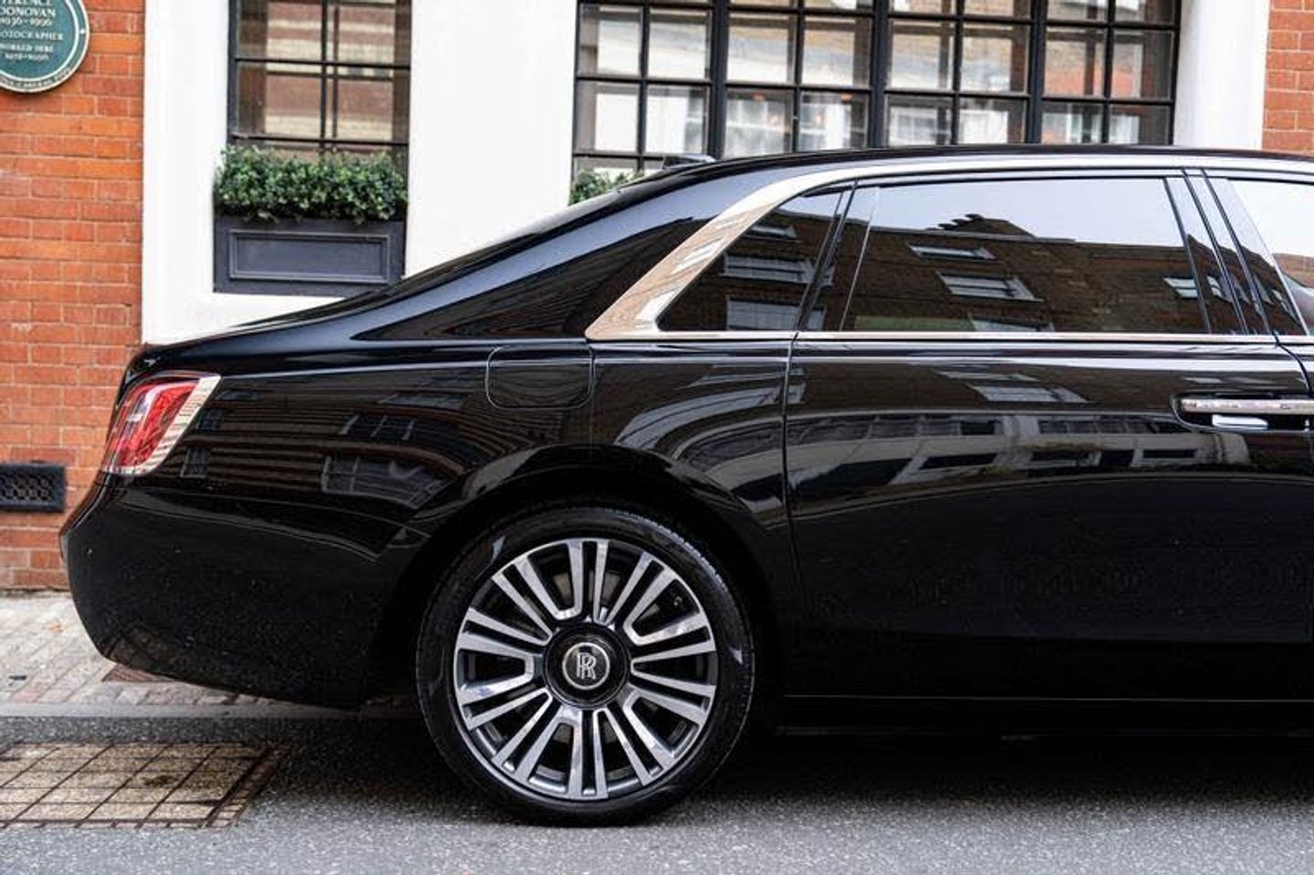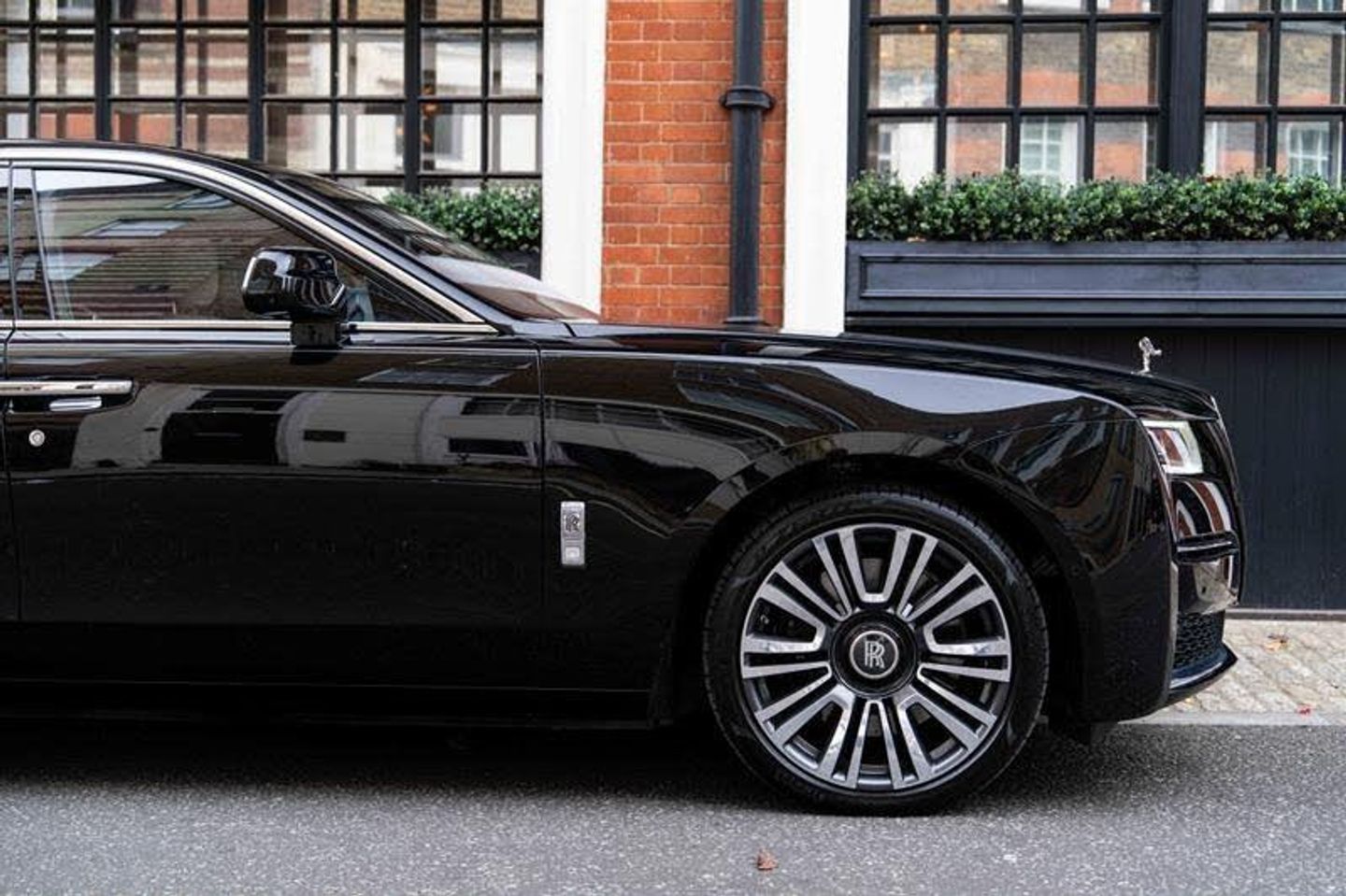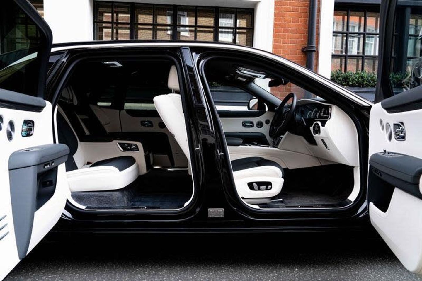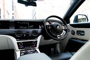 Tyre Pressure Monitor, Universal Garage Door Opener, Comfort Entry System, Effortless Doors, Rear Privacy Glass, Front Ventilated Seats, Front And Rear Ventilated Seats, Individual Seat Configuration, Ambient Air Package, Rear Massage Seats, Front Massage Seats, Park Distance Control (PDC), High-Beam Assistance, Driving Assistant, Active Cruise Control With Stop & Go, Surround View, Park Assistant, Stolen Vehicle Tracking, Navigation System, Head-Up Display, DAB Tuner, Teleservices, Legal Emergency Call, Connected Drive Services, Real Time Traffic Information, Apple Carplay, Rear Theatre Configuration, Telephony With Wireless Charging, Wifi Hotspot Preparation, Automatic Lock When Driving, Active Protection For Pedestrians, Signature Key - Grace White, Visible VIN Plaque, RR Monogram To All Headrests - Grace White, Contrast Seat Piping - Scivaro Grey, Coloured Stitching - Grace White, Instrument Panel Top Stitch, Pinstripe Applied To Wheel Centre - Scivaro Grey, Single Coachline, Coachline Colour - Scivaro Grey, Main Exterior Colour - Black Diamond, Primary Interior Colour - Grace White, Secondary Interior Colour - Scivaro Grey, Bespoke Interior Scheme, Open Pore Obsidian Ayous, Picnic Tables, Lambswool Footmats, Extended Leather Headlining, Illuminated Treadplate - Ghost, Polished Stainless Steel Treadplates, Extended Wheelbase, Body Coloured Wheel Centres, 21inch Twin Spoke Part Polished Wheels, Rolls-Royce Bespoke Audio, Starlight Headliner, Fixed Rear Seat Middle Console, Illuminated Grille, Driver Assistance Systems, Immersive Seating With Centre Console, Spirit Of Ecstasy, Ghost Package