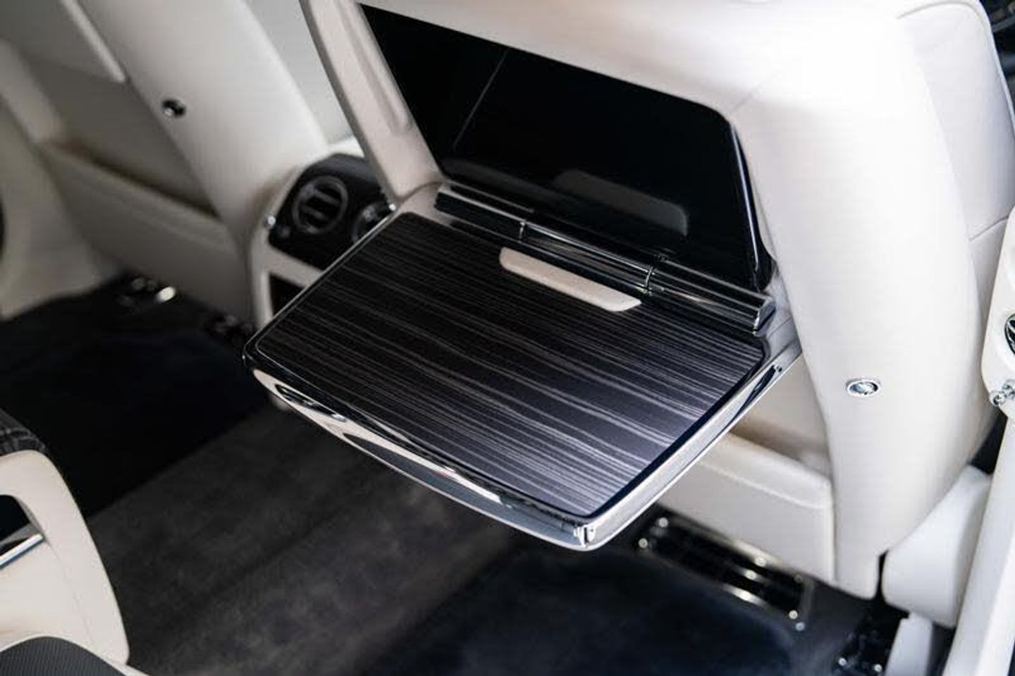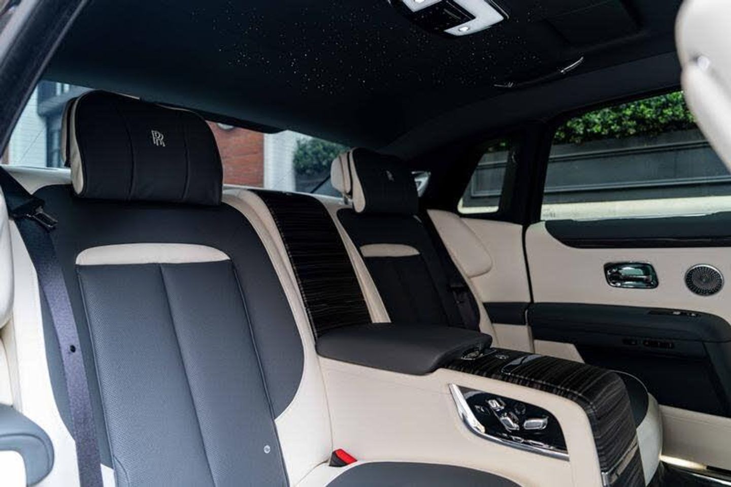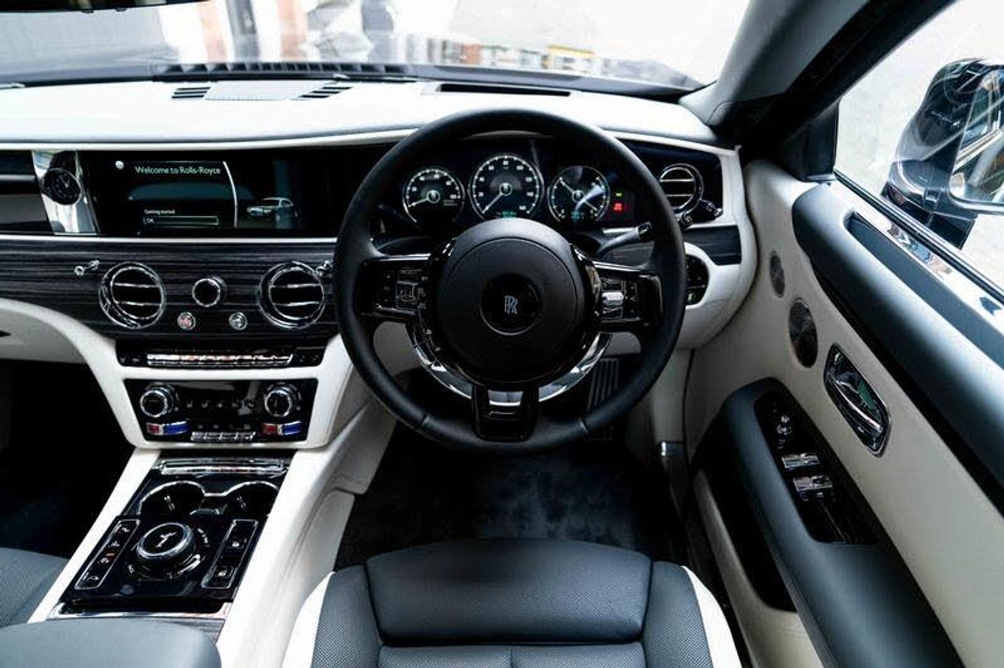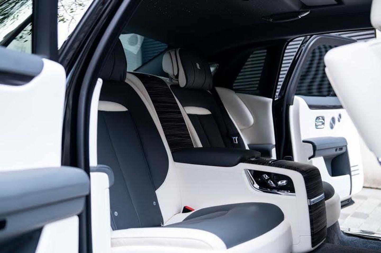 Tyre Pressure Monitor, Universal Garage Door Opener, Comfort Entry System, Effortless Doors, Rear Privacy Glass, Front Ventilated Seats, Front And Rear Ventilated Seats, Individual Seat Configuration, Ambient Air Package, Rear Massage Seats, Front Massage Seats, Park Distance Control (PDC), High-Beam Assistance, Driving Assistant, Active Cruise Control With Stop & Go, Surround View, Park Assistant, Stolen Vehicle Tracking, Navigation System, Head-Up Display, DAB Tuner, Teleservices, Legal Emergency Call, Connected Drive Services, Real Time Traffic Information, Apple Carplay, Rear Theatre Configuration, Telephony With Wireless Charging, Wifi Hotspot Preparation, Automatic Lock When Driving, Active Protection For Pedestrians, Signature Key - Grace White, Visible VIN Plaque, RR Monogram To All Headrests - Grace White, Contrast Seat Piping - Scivaro Grey, Coloured Stitching - Grace White, Instrument Panel Top Stitch, Pinstripe Applied To Wheel Centre - Scivaro Grey, Single Coachline, Coachline Colour - Scivaro Grey, Main Exterior Colour - Black Diamond, Primary Interior Colour - Grace White, Secondary Interior Colour - Scivaro Grey, Bespoke Interior Scheme, Open Pore Obsidian Ayous, Picnic Tables, Lambswool Footmats, Extended Leather Headlining, Illuminated Treadplate - Ghost, Polished Stainless Steel Treadplates, Extended Wheelbase, Body Coloured Wheel Centres, 21inch Twin Spoke Part Polished Wheels, Rolls-Royce Bespoke Audio, Starlight Headliner, Fixed Rear Seat Middle Console, Illuminated Grille, Driver Assistance Systems, Immersive Seating With Centre Console, Spirit Of Ecstasy, Ghost Package