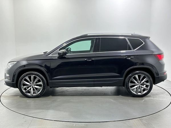 12V Socket in Front, 19in Alloy Wheels - Exclusive Machined Bi-Colour, Active Front Head Restraints, Adaptive Cruise Control, Advanced Driving Assistance Pack, Advanced Multi-Colour Interior Ambient Lighting with LED Interior Illumination and LED Illuminated Glovebox, Alarm - Perimeter and Interior Monitoring, Ambient Spot Lighting and Front Footwell Illumination, Anti-Lock Braking System - ABS, Armrest with Air Outlet in Rear, Automatic Headlight Adjustment, Black Interior Roof, Chrome Dashboard Detailing, Chrome Double Exhaust Pipe, Comfort Suspension, Convenience Pack, Dark Tinted Rear Windows, Digital Clock, Digital Cockpit, Door Mirrors and Door Handles in Body Colour, Door Mirrors with Welcome Light Silhouette, Driver and Front Passenger Airbags, Driver and Passenger Seat with Lumbar Adjustment, Driver and Passenger Sunvisor with Card Holder for Driver, Driver and Passenger Sunvisor with Covered and Illuminated Mirrors, Drivers Knee Airbag, Dual Zone Climate Control, Electric Parking Brake Including Autohold Function, Electric Tailgate with Virtual Pedal, Electrically Adjustable Folding and Heated Door Mirrors, Electronic Differential Lock System - XDS, Electronic Stability Control - ESC, Four Cargo Rings in the Boot, Front Armrest - Adjustable with Storage Compartment, Front Assist - City Emergency Braking and Pedestrian Protection, Front Courtesy Light with Front and Rear Reading Lights, Front Cup Holders, Front Grille Frame - Chrome, Front LED Fog Lights with Cornering Function, Front Passenger Airbag De-Activation, Front Seat Back Storage Pockets, Front Side Airbags, Front and Rear Electric Windows, Front and Rear Seatbelt Reminder, Fuel Door Linked to Central Locking, Full LED Headlights, Full Link, Gear Recommendation Indicator, Heated Windscreen, Height Adjustable Front Headrests, Height Adjustable Passenger Seat, Height-Adjustable Drivers Seat, High Gloss Black Grille, Hill Hold Control, ISOFIX Points in Outer Rear Seats with Top Tether Anchorage Points, Illuminated Aluminium Front Door Sill with Trim Logo, Illuminated Boot, Instrument Lighting with Brightness Control, Keyless Entry and Go - KESSY and Wireless Phone Charger, LED Daytime Running Lights, LED Taillights, Leather Gear Knob, Leather Steering Wheel, Lights Left On Warning Buzzer, Locking Wheel Bolts, Low Fuel Warning Light, Navigation System, Outside Temperature Gauge, Park Assist, Power Locking and Remote Control with Two Foldable Keys and Opening Boot Selector - 3 Buttons, Progressive Steering, RPM Counter, Rear Armrest and Easy Back Seat Release Mechanism From Boot, Rear Fog Light, Rear Reading Lights, Rear View Camera, Rear Wash - Wipe, Roof Rails - Chrome, SEAT Drive Profile with Driving Experience Button, Split Folding Rear Seats - 60-40, Steering Wheel-Mounted Audio and Phone Controls, Steering Wheel-Mounted Gearshift Paddles, Storage Box Under Drivers Seat, Sunglasses Storage Compartment in Roof Console, Tinted Windows, Tiredness Recognition System, Top View Camera, Traction Control System - ASR, Trip Computer, Two Curtain Airbags, Tyre Pressure Monitoring System, USB Media Cable, Wheel Arch Surrounds - Black, Window Surrounds - Chrome, Winter Pack